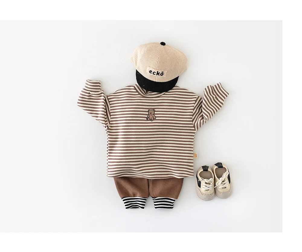 Spring Autumn Children Long Sleeve Casual T Shirts Stripe Baby Boys Girls Loose Pullover Newborn Undershirts Toddler Tops