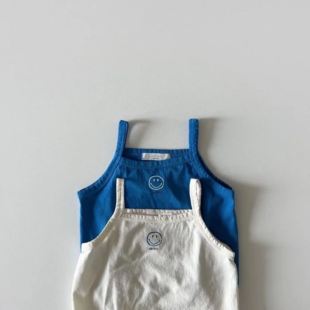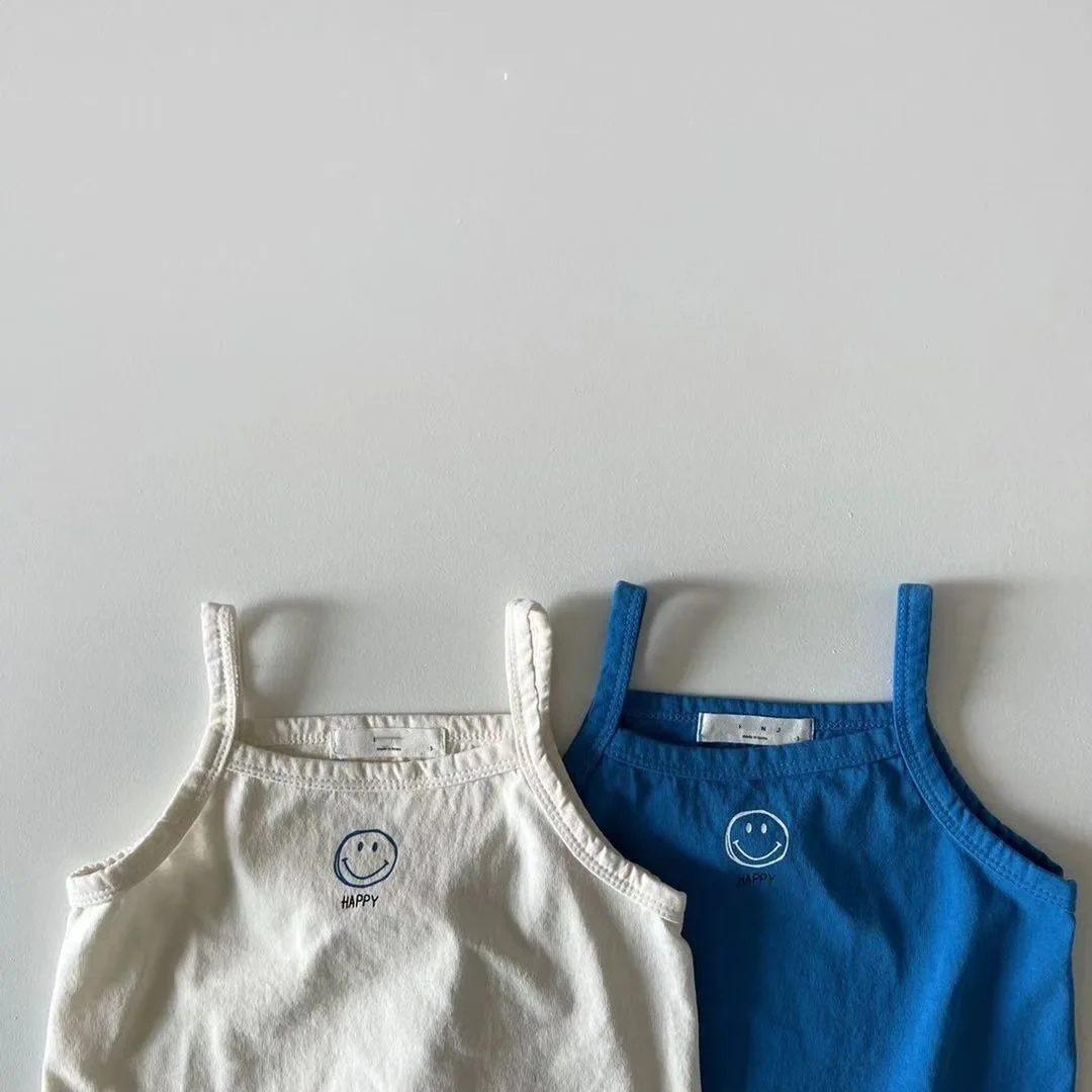 Summer New Baby Cute Smiley Print Sling Vest Cotton Infant Girl Sleeveless T Shirts Breathable Toddler Tee Baby Clothes