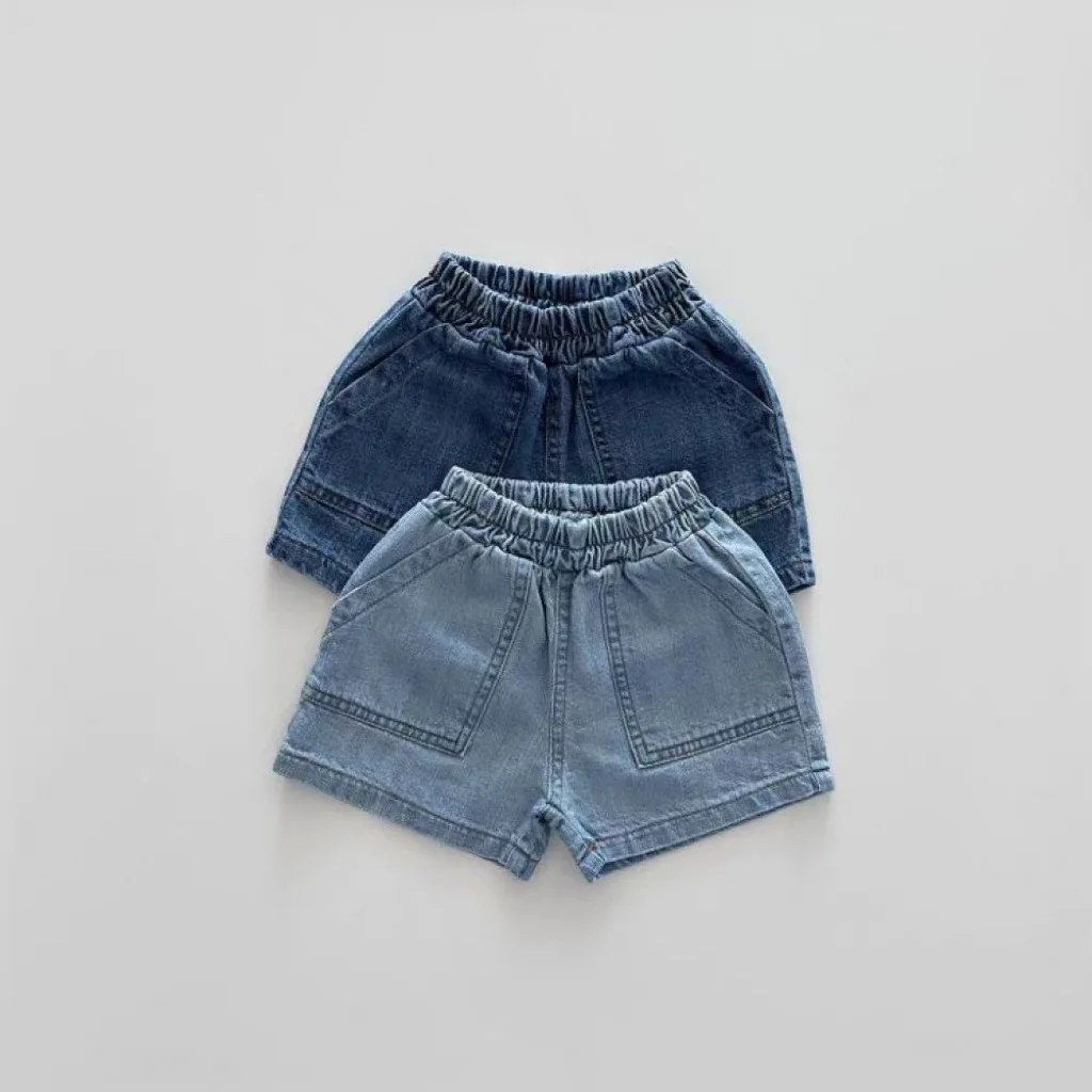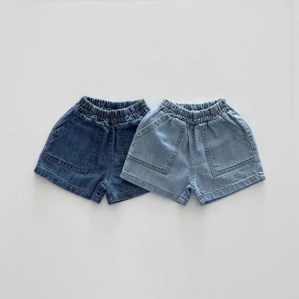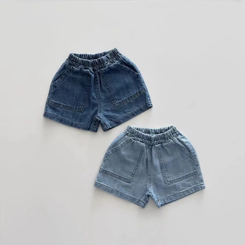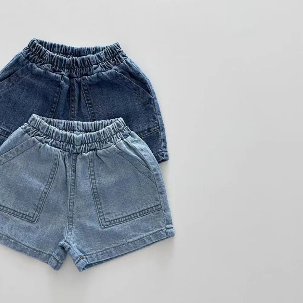 2024 Summer New Baby Denim Shorts Solid Toddler Boy Fashion Short Jeans Infant Girl Large Pocket Casual Shorts Versatile Clothes