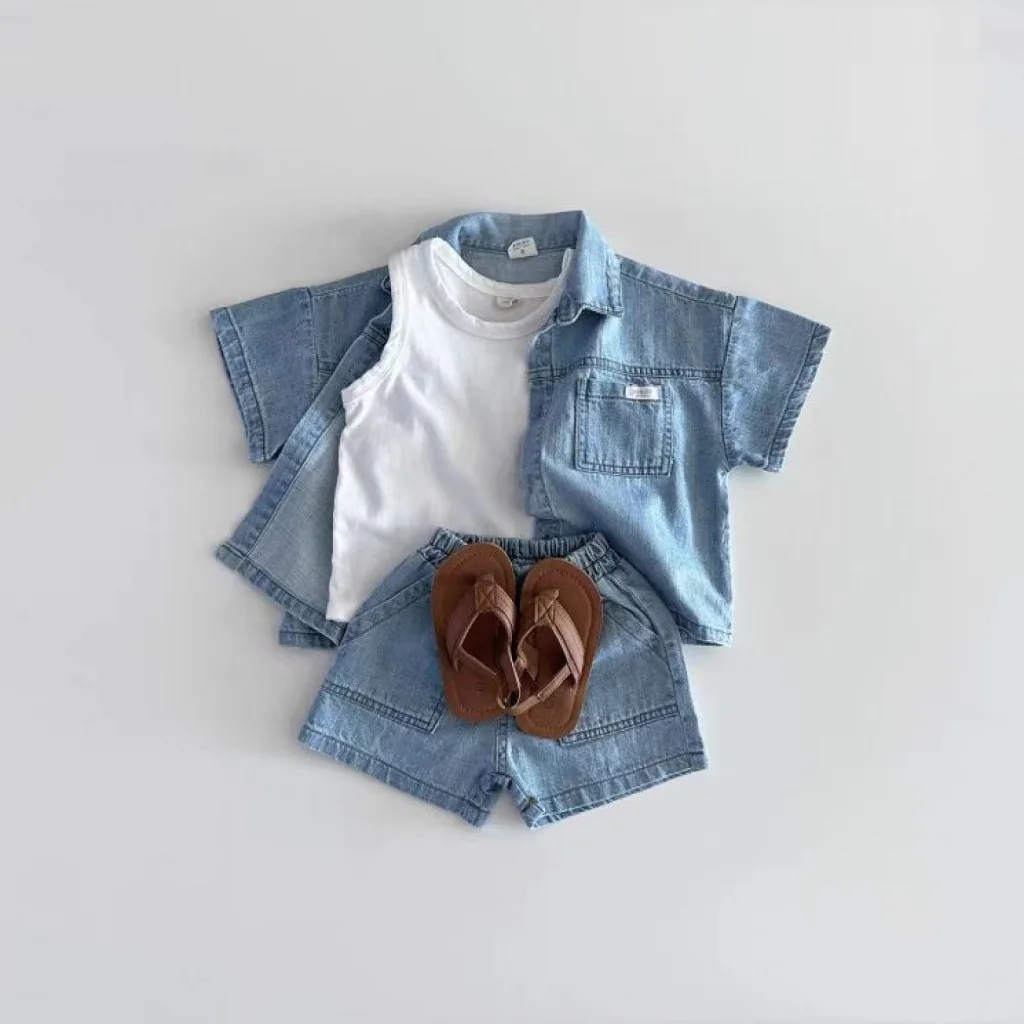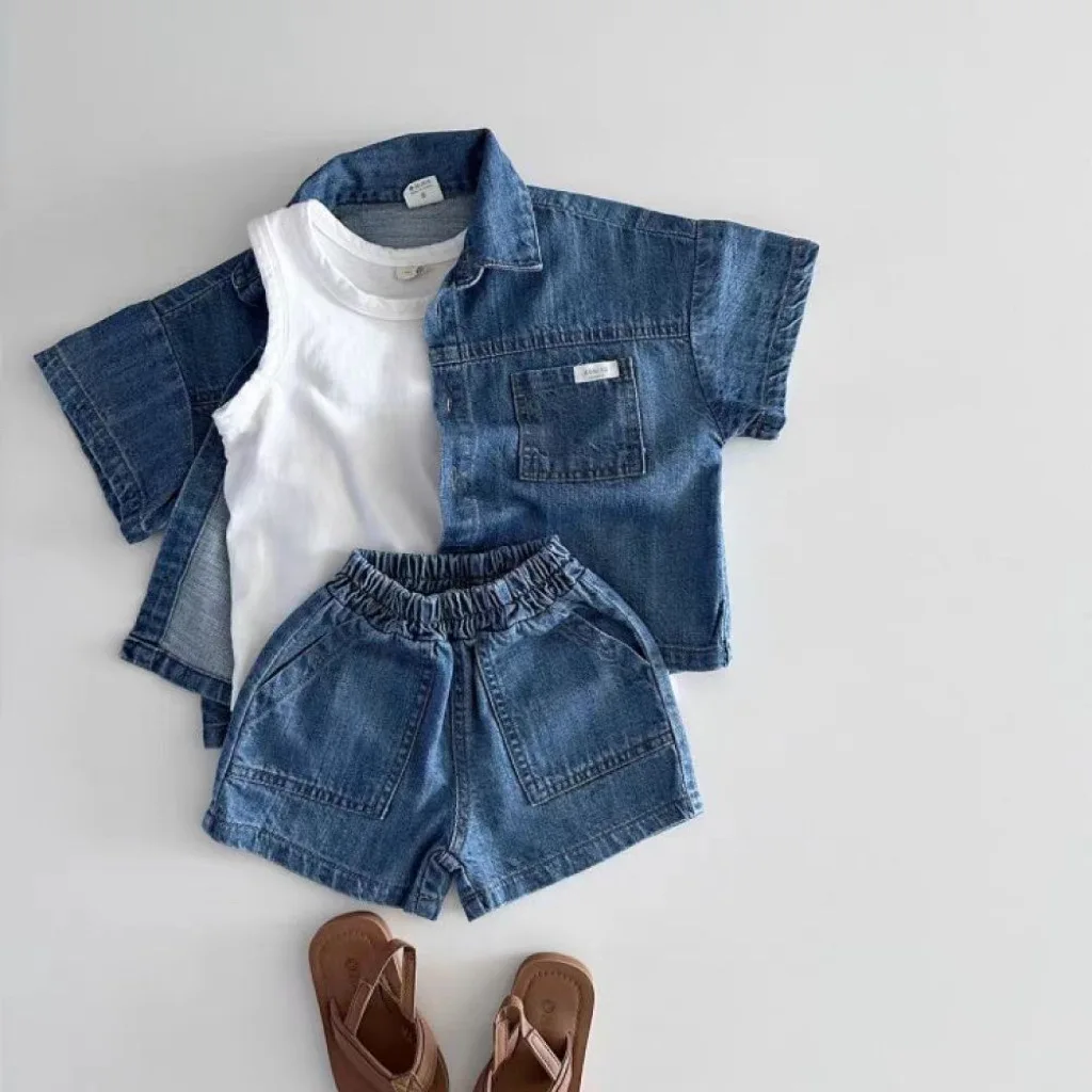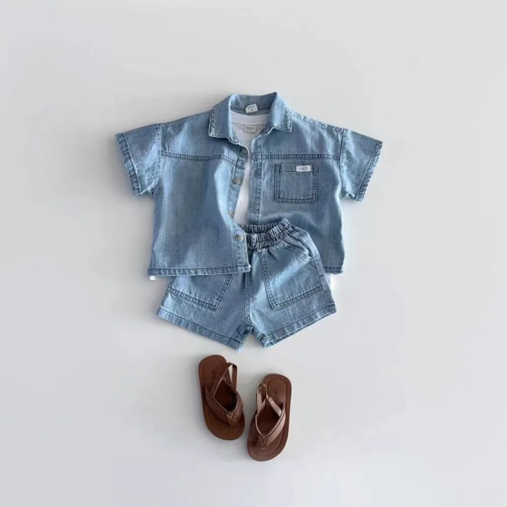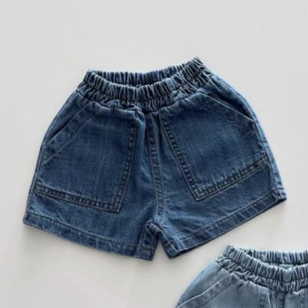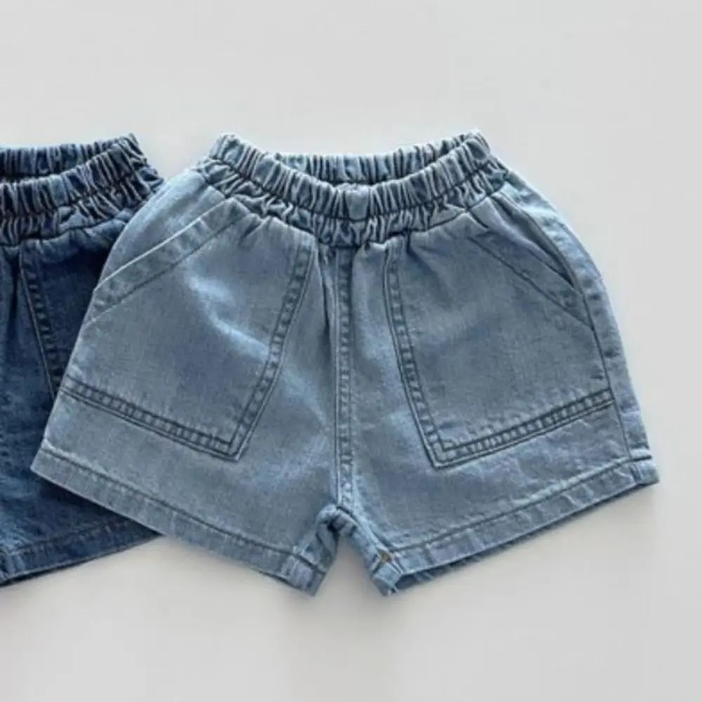 2024 Summer New Baby Denim Shorts Solid Toddler Boy Fashion Short Jeans Infant Girl Large Pocket Casual Shorts Versatile Clothes
