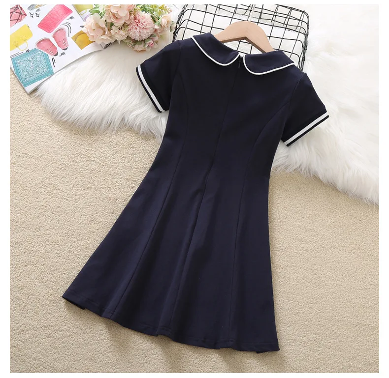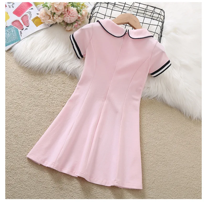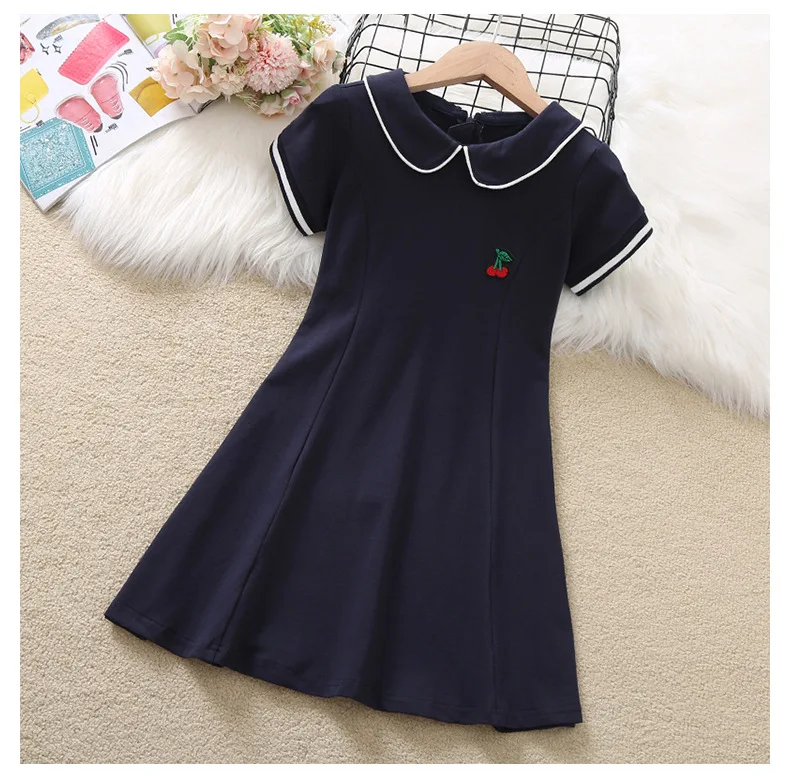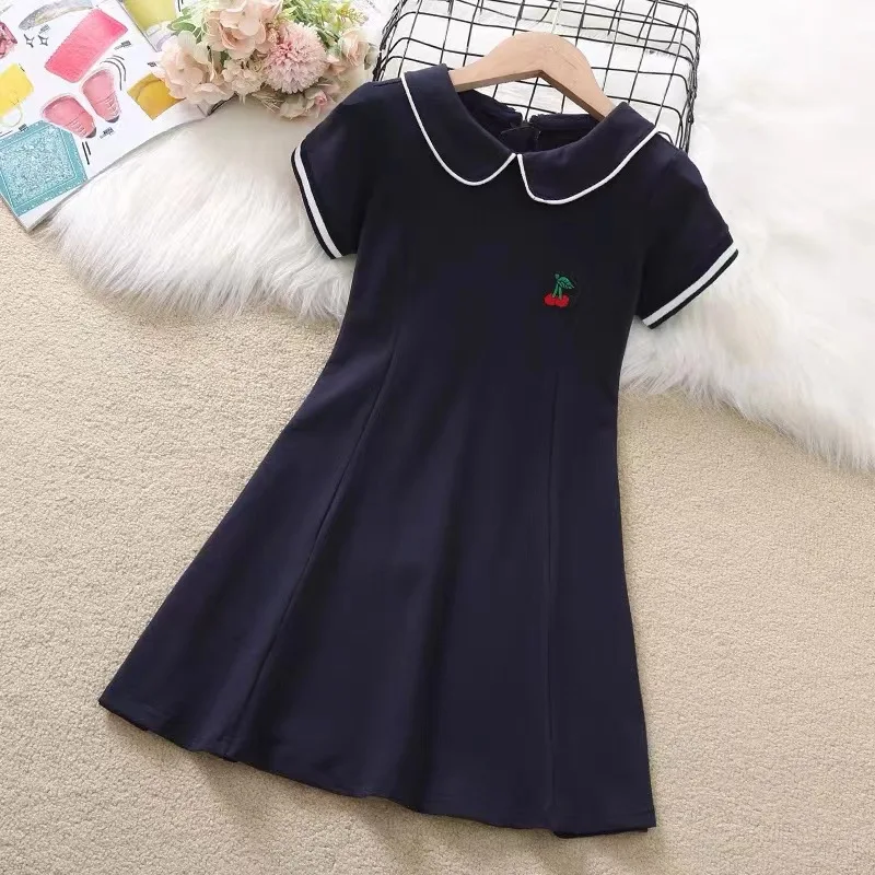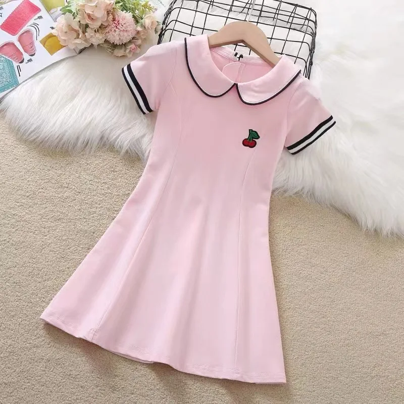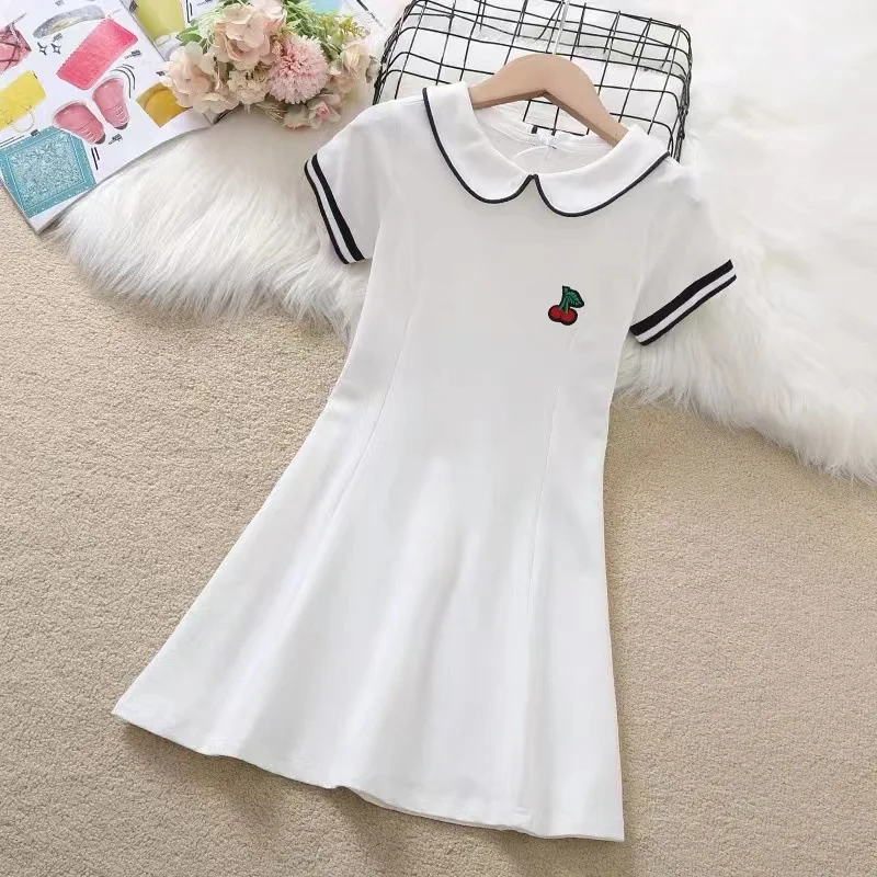 2024 Summer New retro Girls long fruit Cotton peter pan Collar Teenager striped Preppy Dresses Baby Clothes Toddler 8 10 12 year