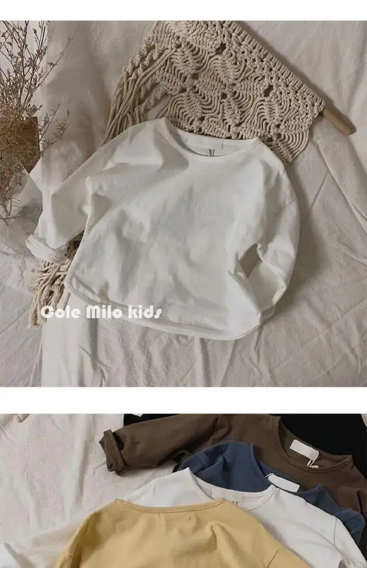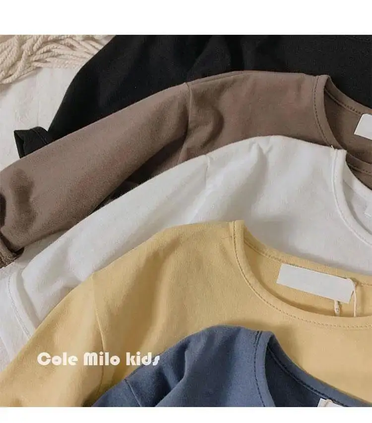 Autumn Winter Boy Girl Children Solid Long Sleeves Bottoming Shirt Kid Loose T-shirt Retro Baby Cotton Tops Toddler Casual Tees