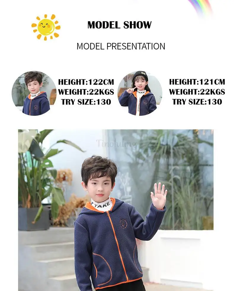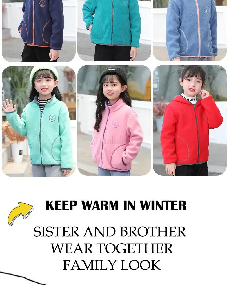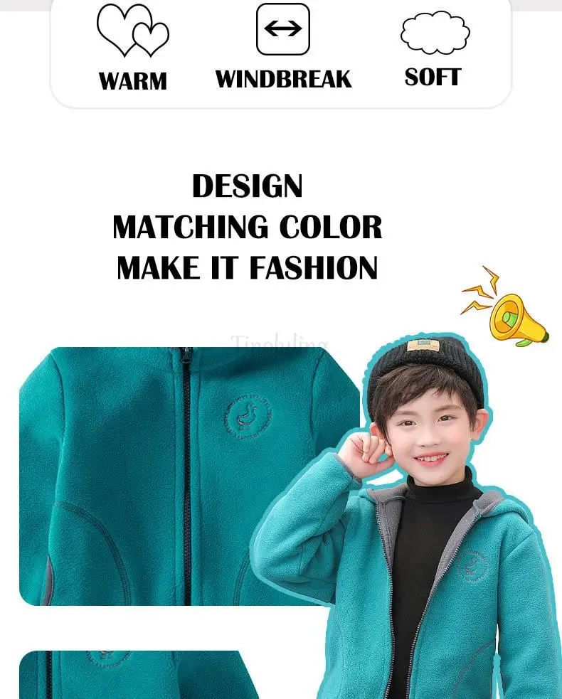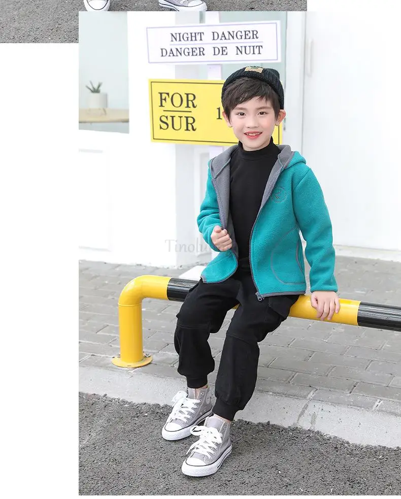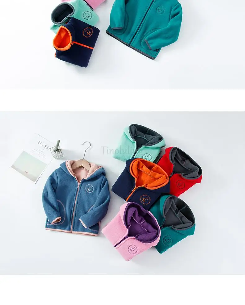 Brand Windproof Hooded Zip Full Fleece Child Coat Thicken Double Fleece Boys Jackets Kids Outfits Children Outerwear 2-14 Years