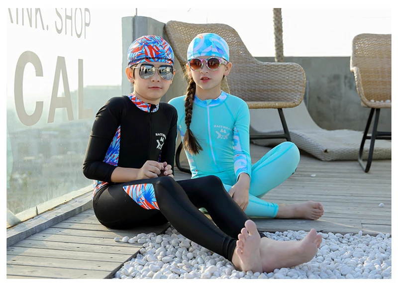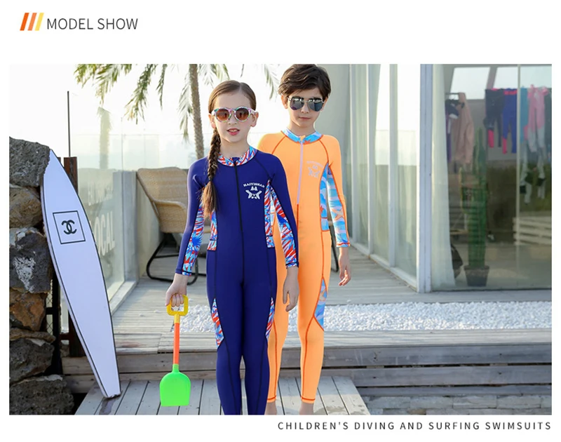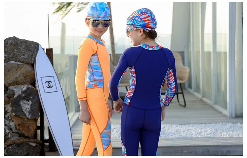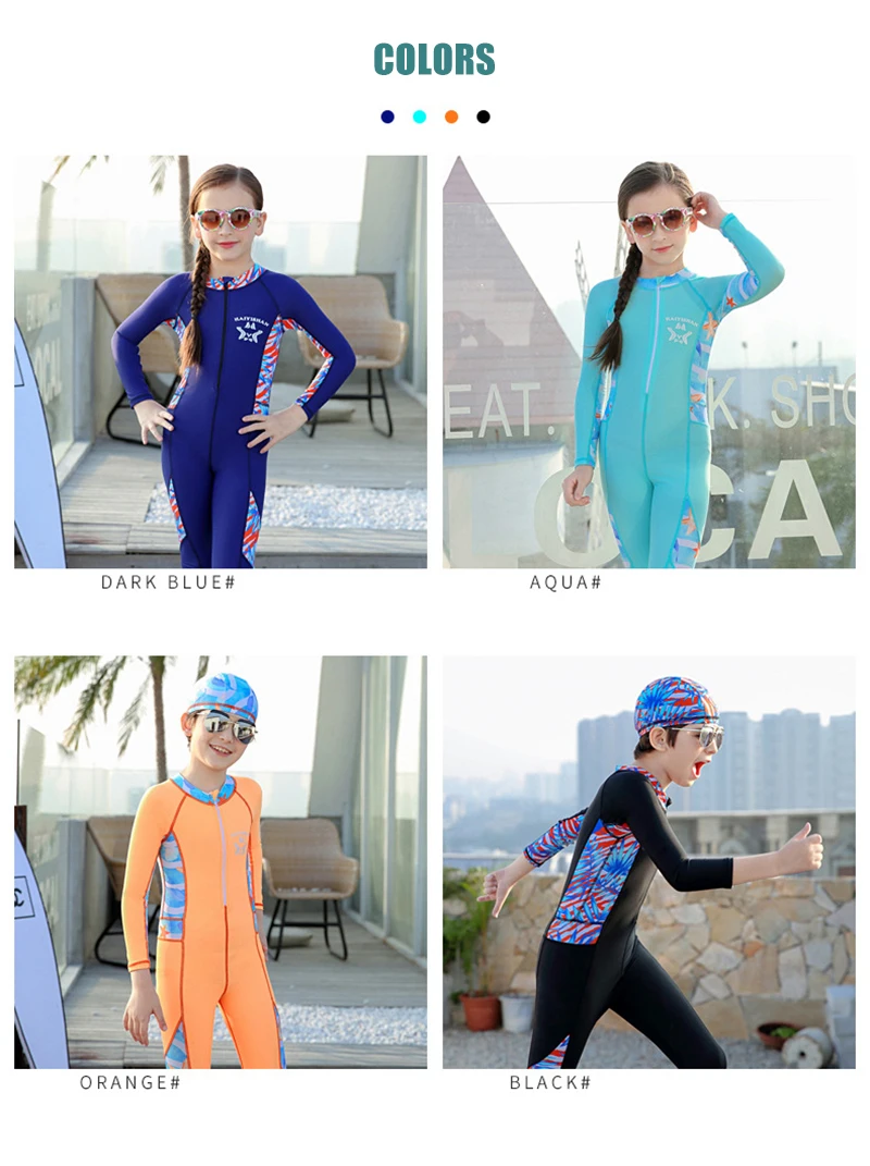 Children's Sports Swimsuit One Piece Long Sleeve Kids Swimwear for Girls Boy UV Protect Swimming Suit Teenage Bath Clothes Child
