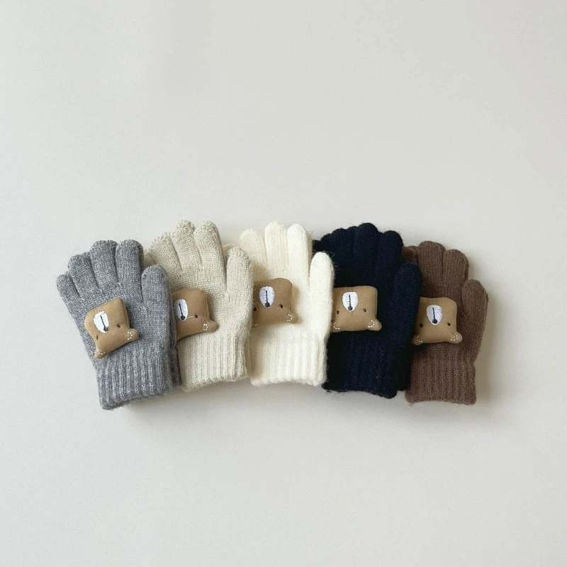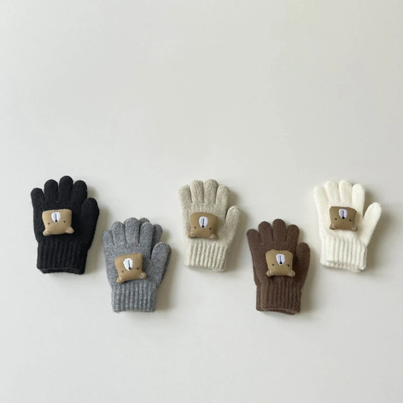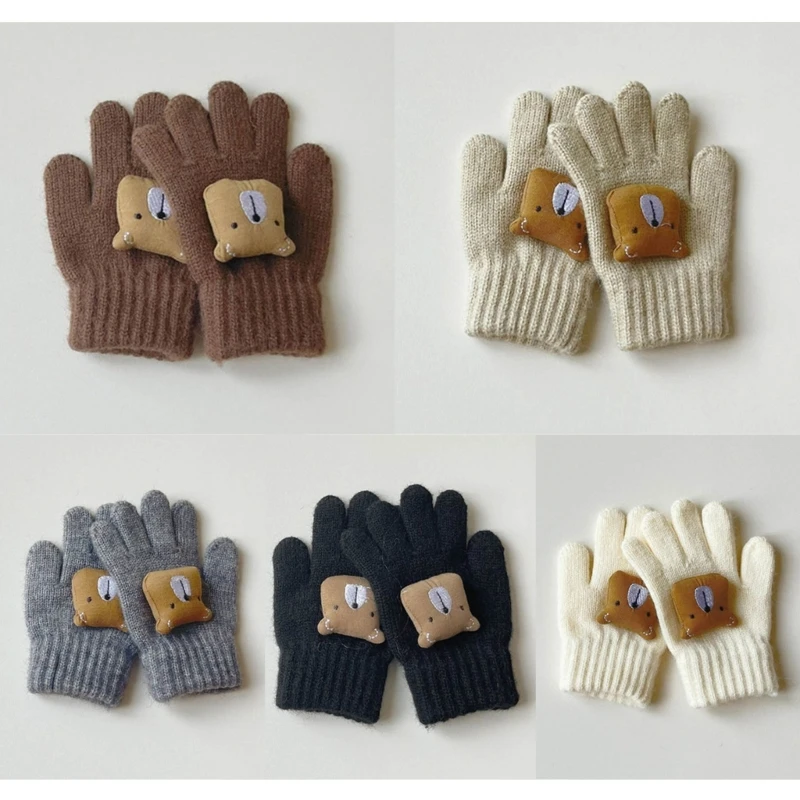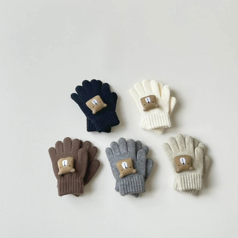 Cute Cartoon Bear Toddler Baby Gloves Winter Thicken Warm Kid Boy Girl Full Finger Mittens for 3-7 Years Children Outdoor Gloves