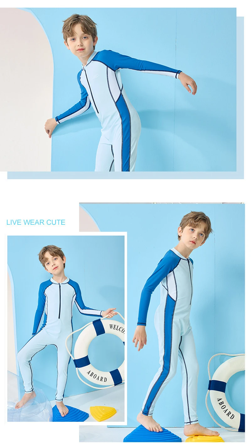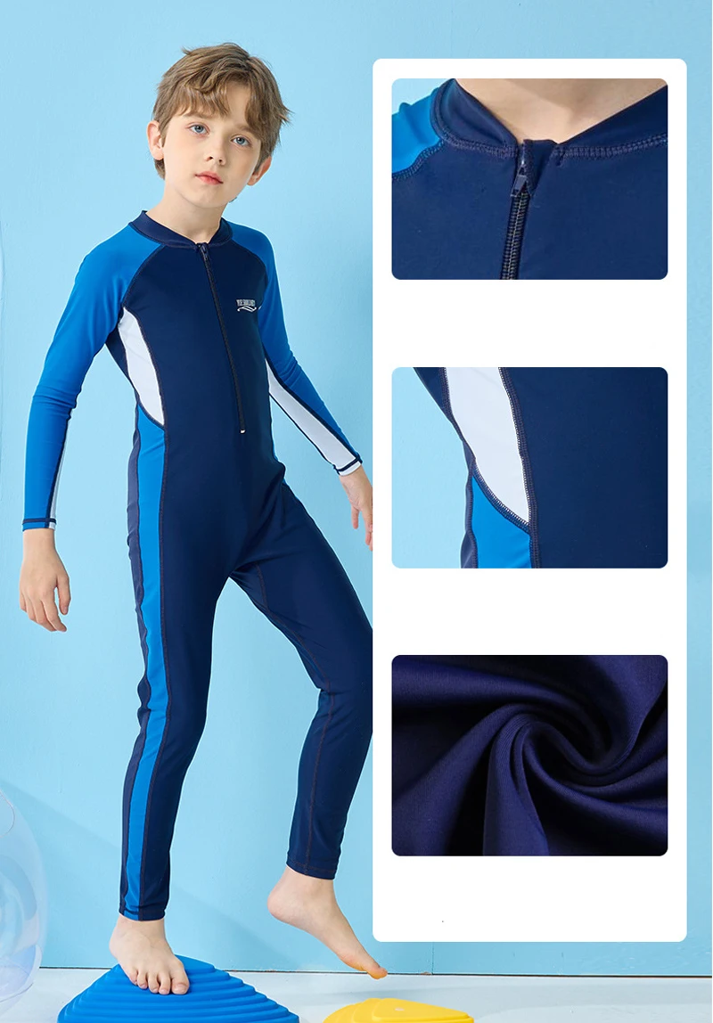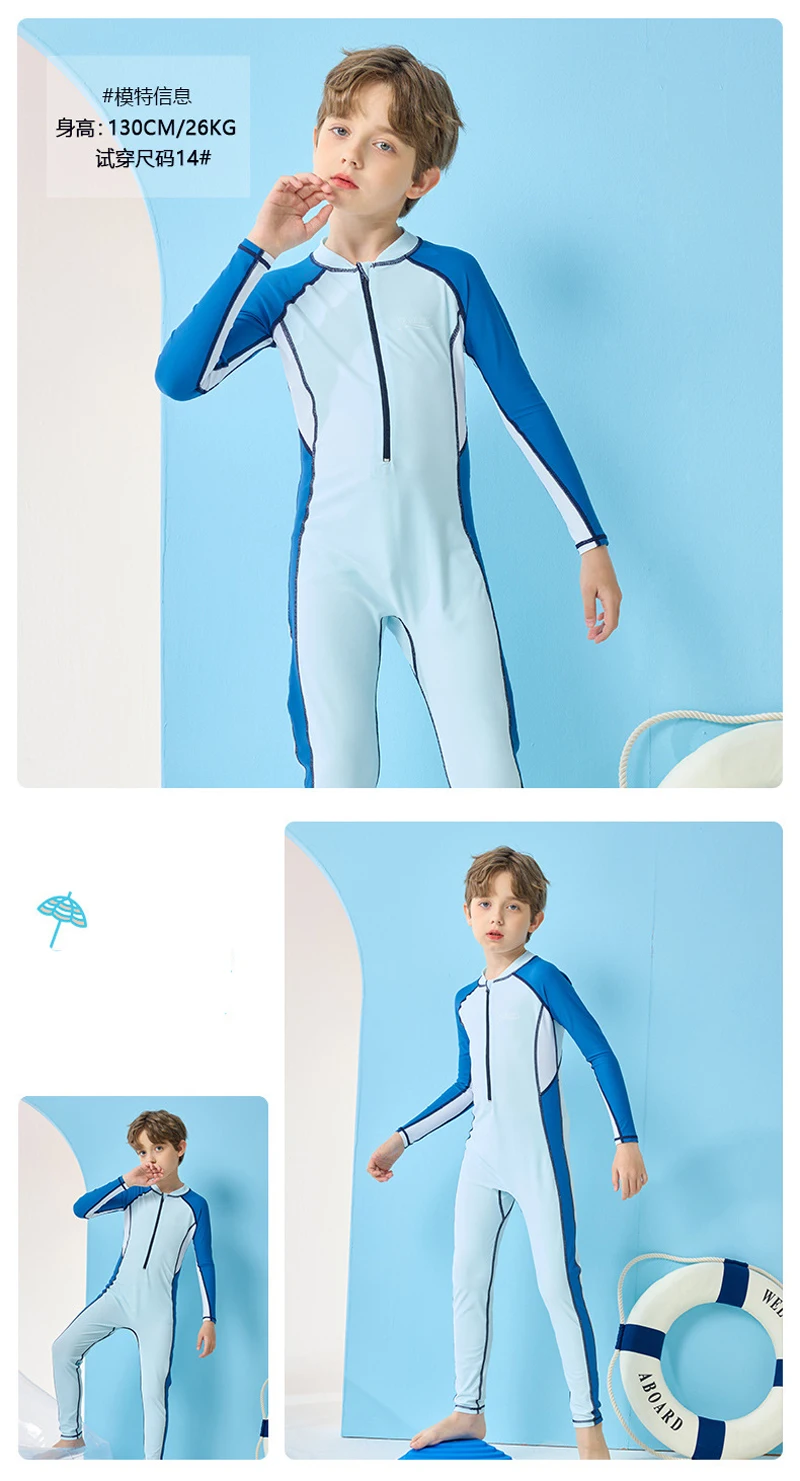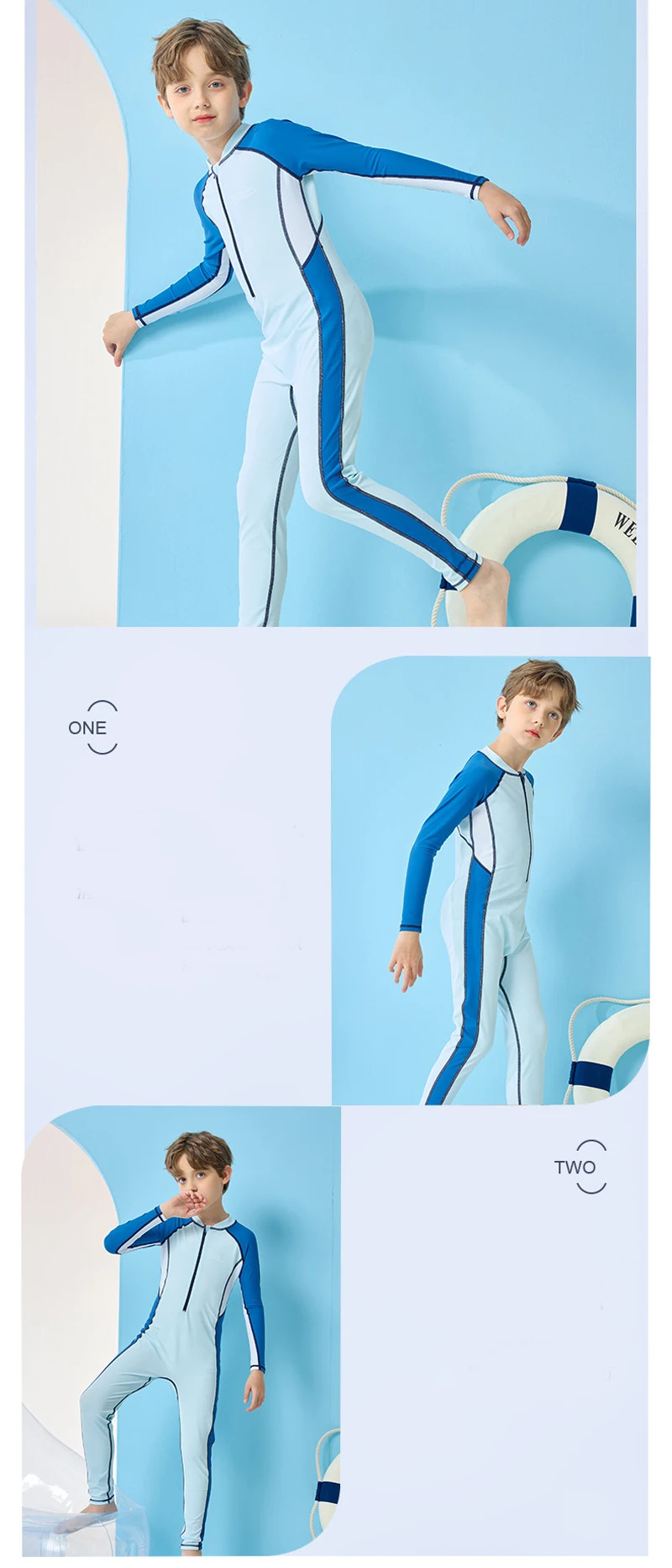 Full Body One Piece Boy Swimwear Long Sleeve Swimsuit Kids Teen Swimming Suit Children Beachwear Surfing Snorkeling