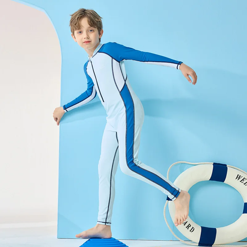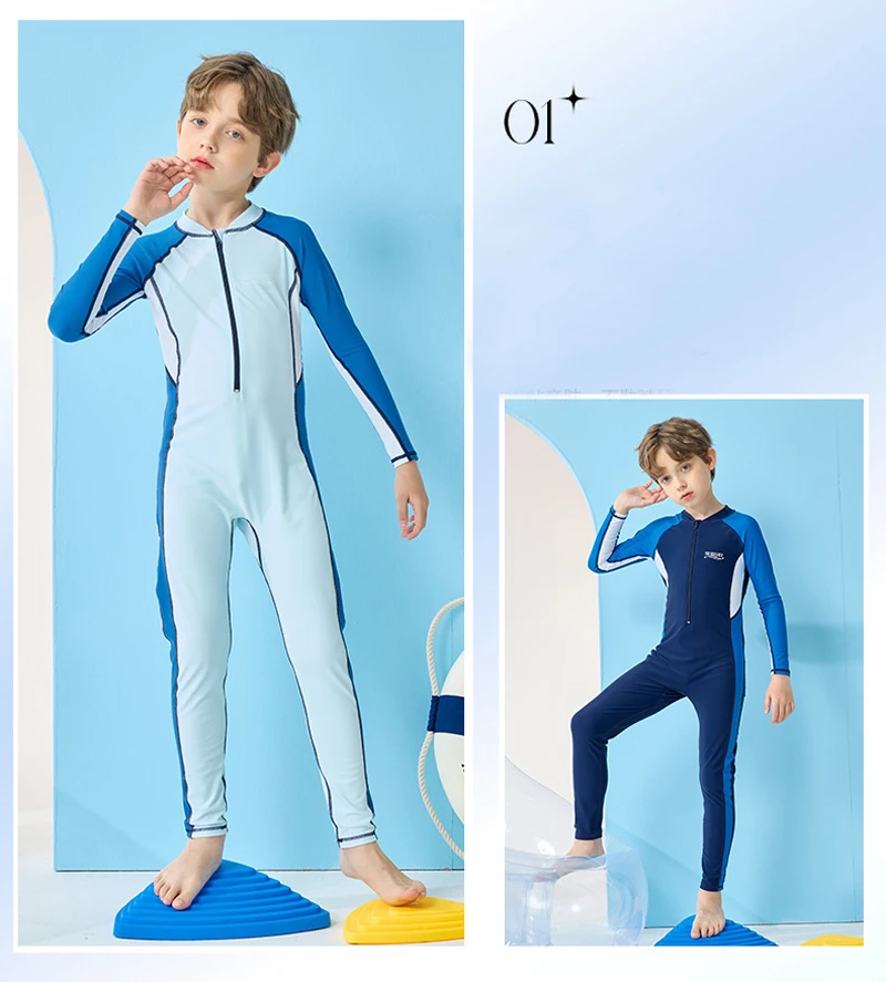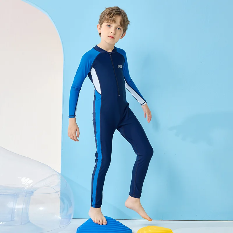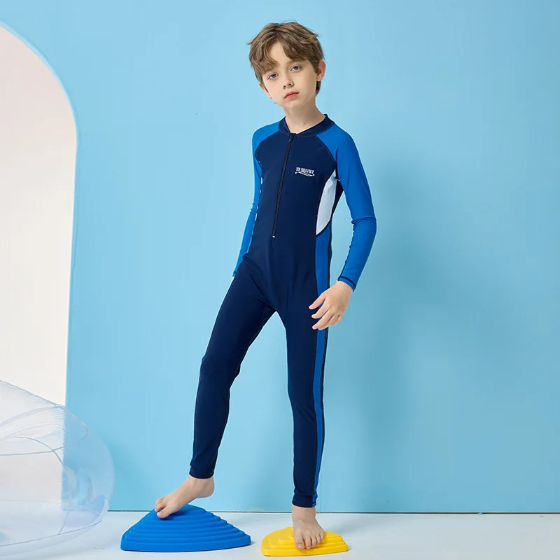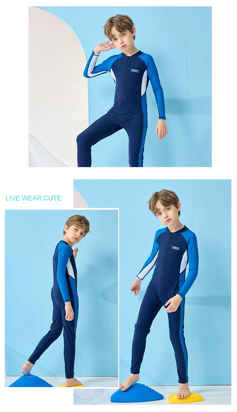 Full Body One Piece Boy Swimwear Long Sleeve Swimsuit Kids Teen Swimming Suit Children Beachwear Surfing Snorkeling