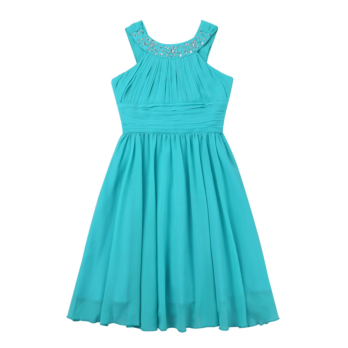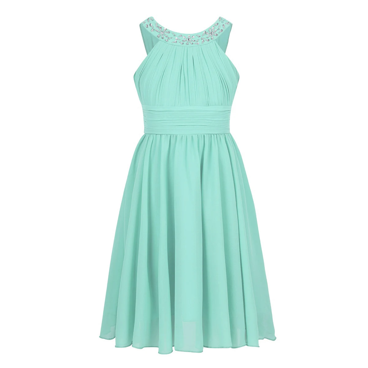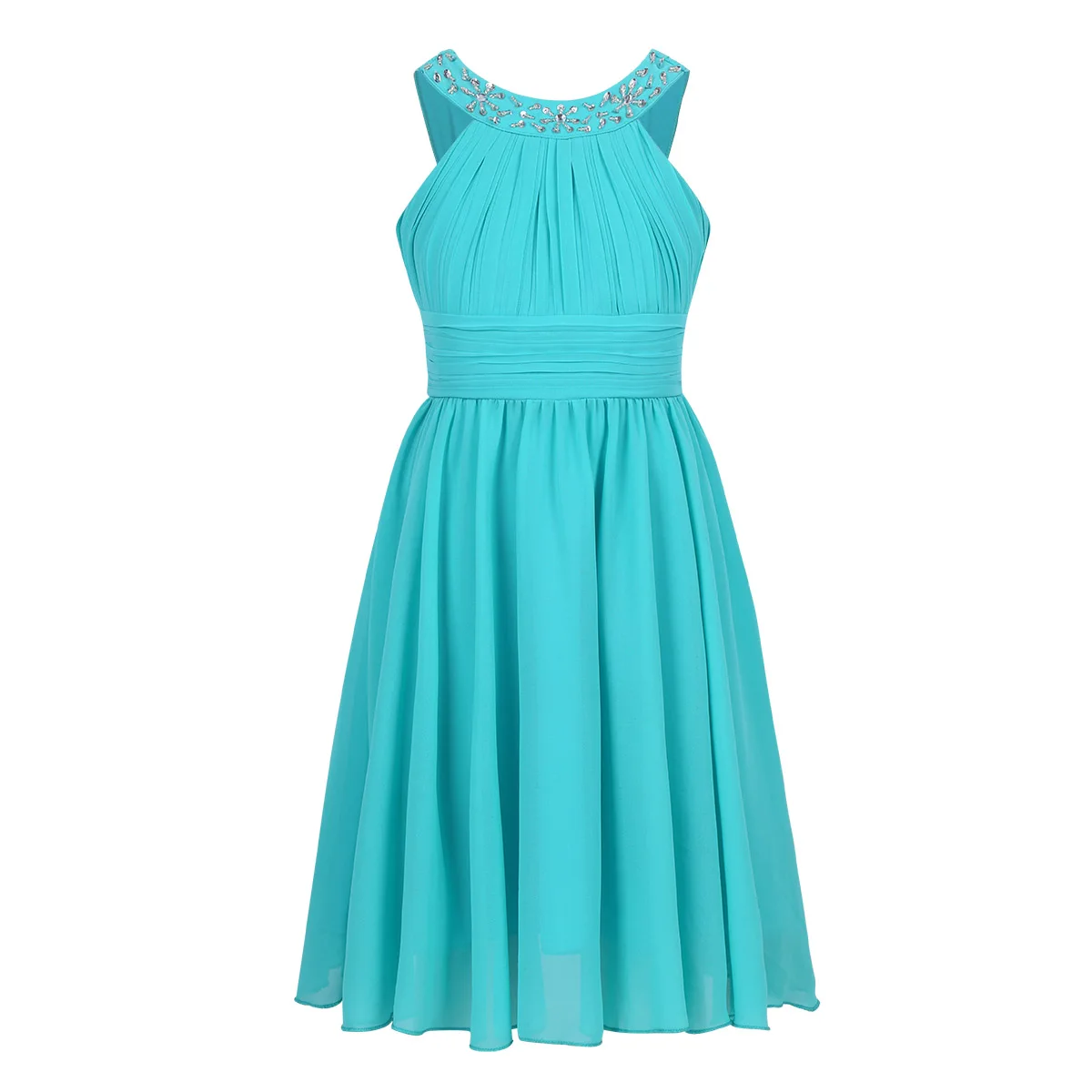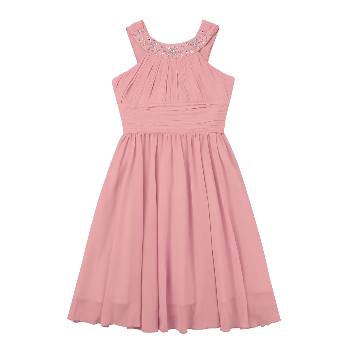 Girls Sleeveless Rhinestone Neck Chiffon Flower Girl Dress Princess Pageant Formal Wedding Bridesmaid Birthday Party Prom Gown