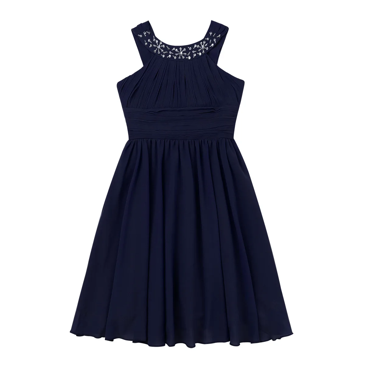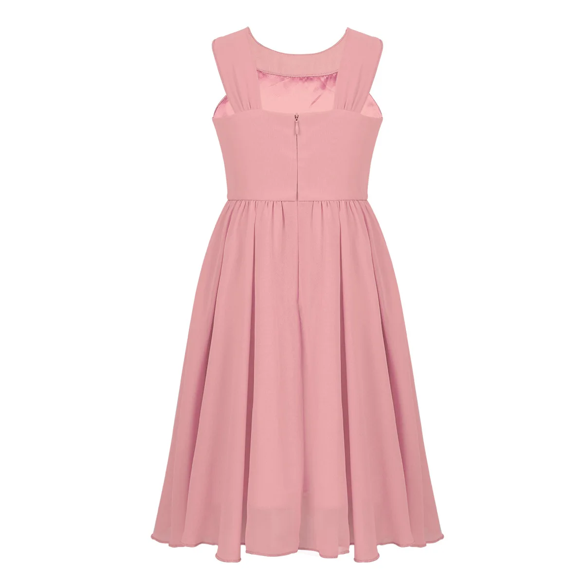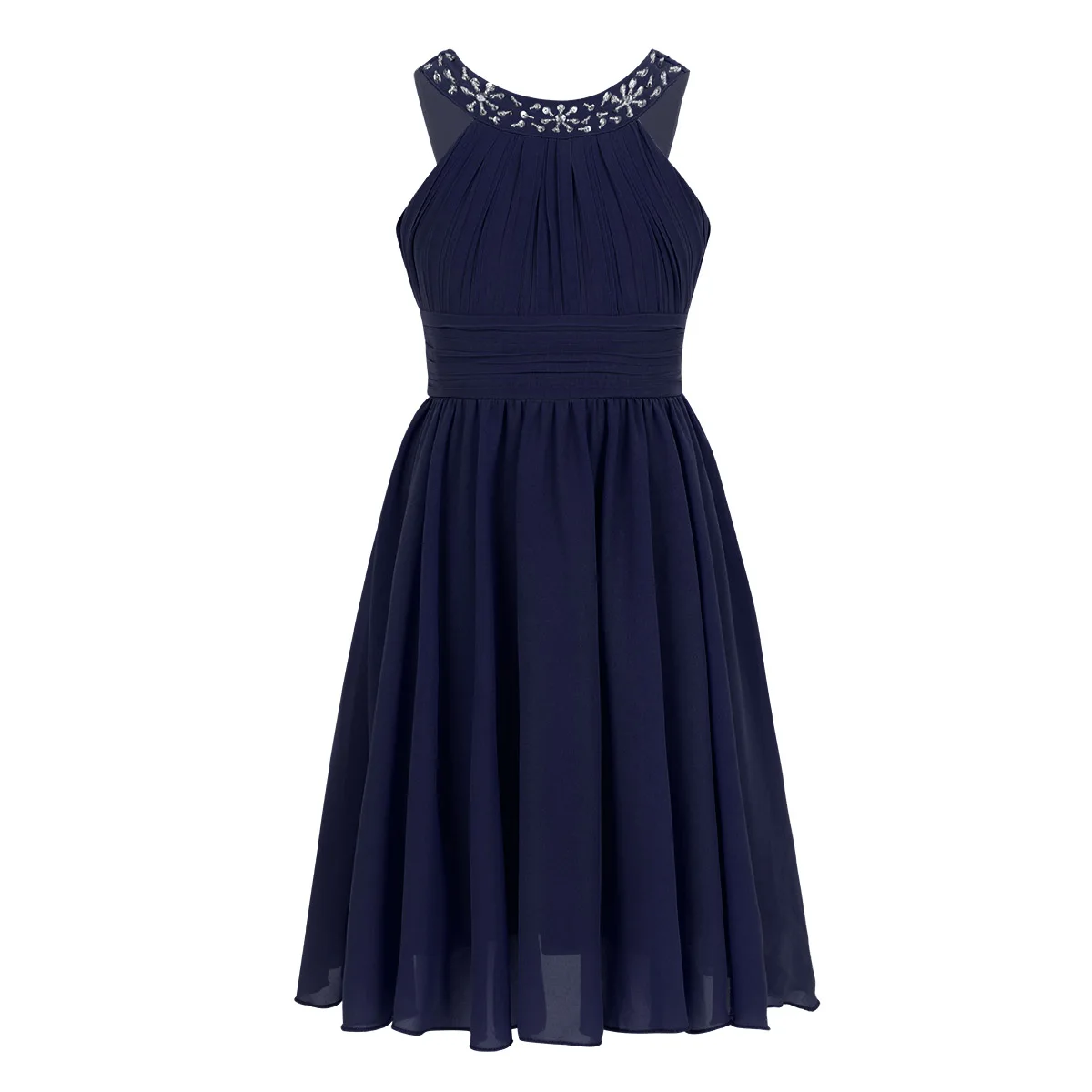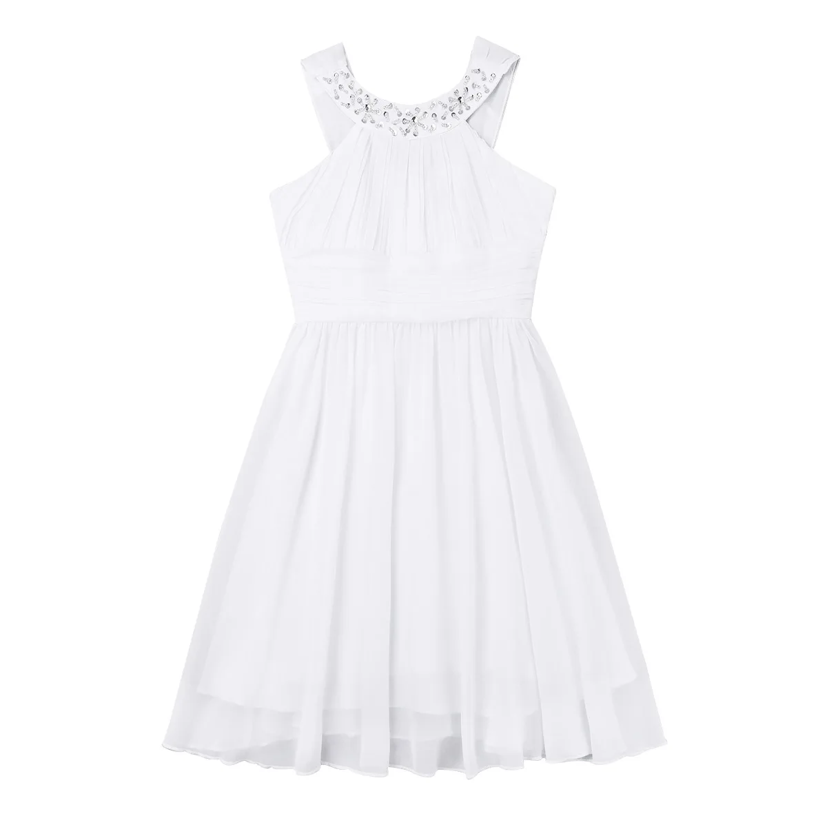 Girls Sleeveless Rhinestone Neck Chiffon Flower Girl Dress Princess Pageant Formal Wedding Bridesmaid Birthday Party Prom Gown