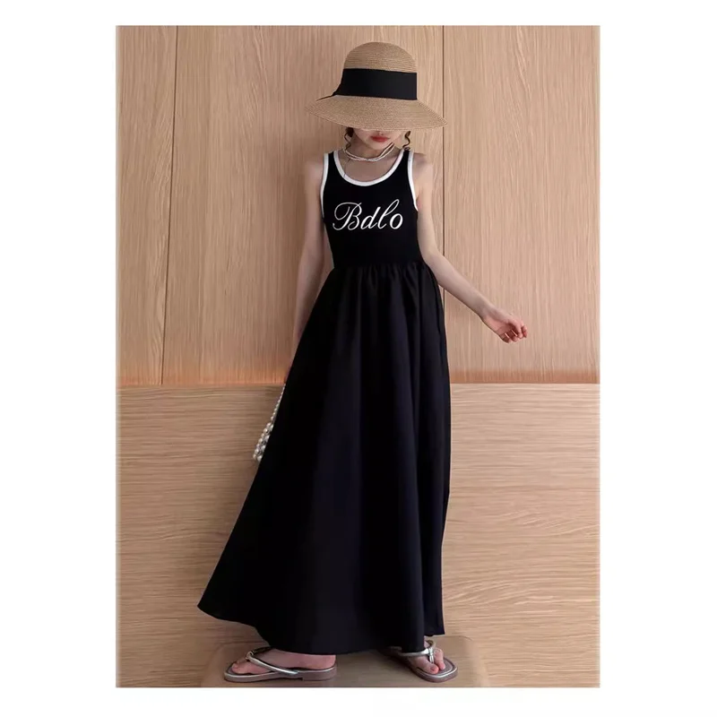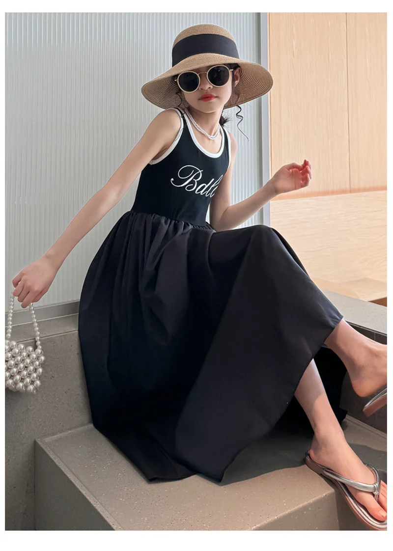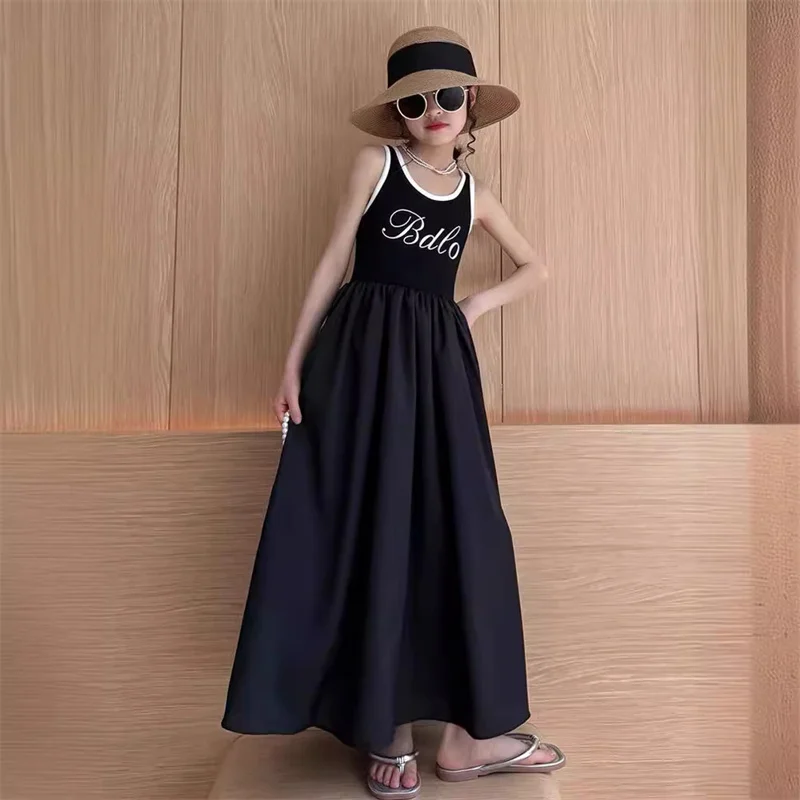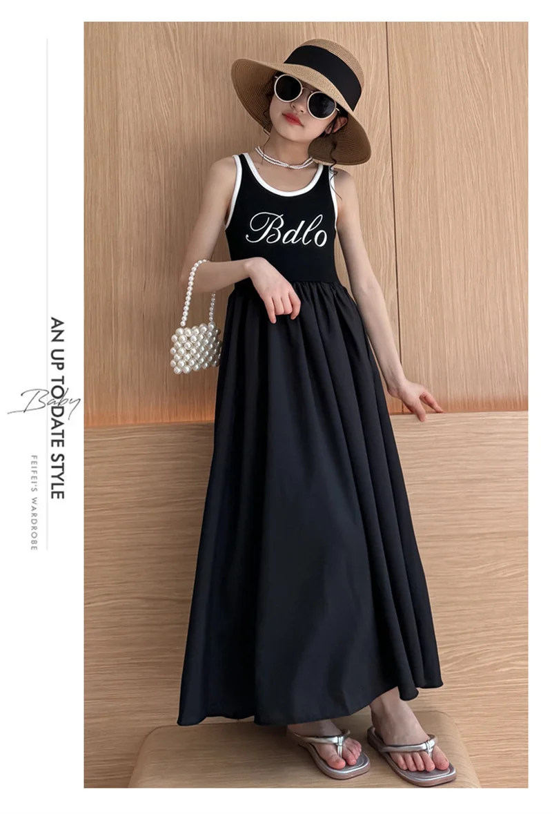 Girls Summer Long Dress Kids Casual Letter Vestidos Children Princess Gown Sleeveless Cool Clothes New Teenager Trends Dresses