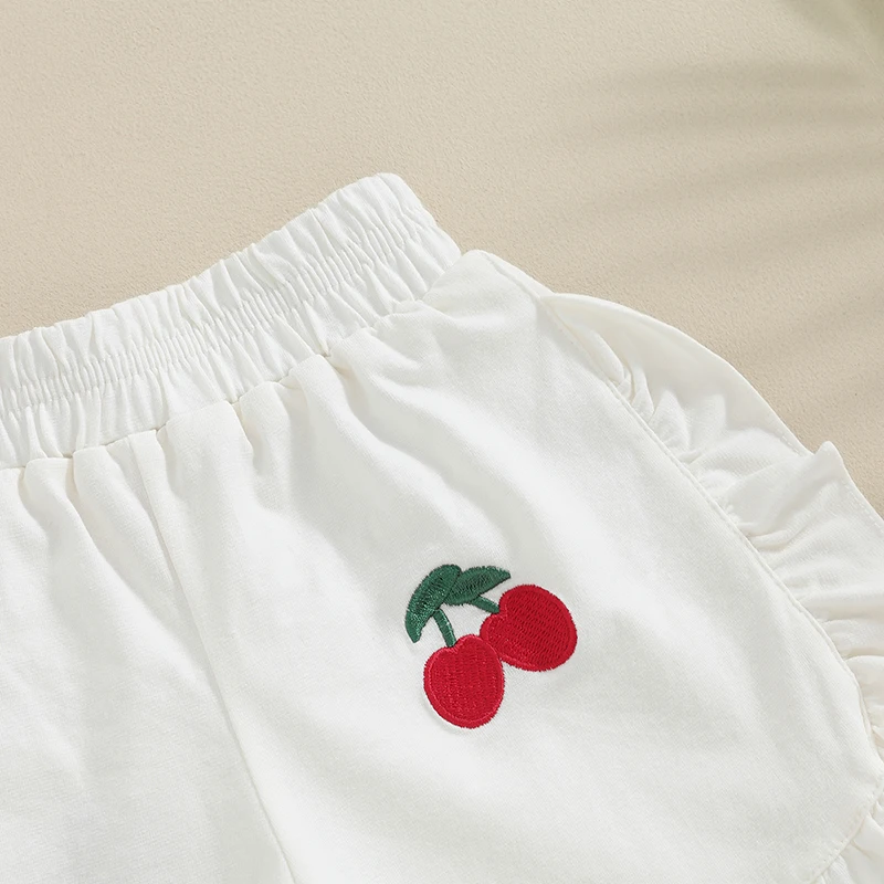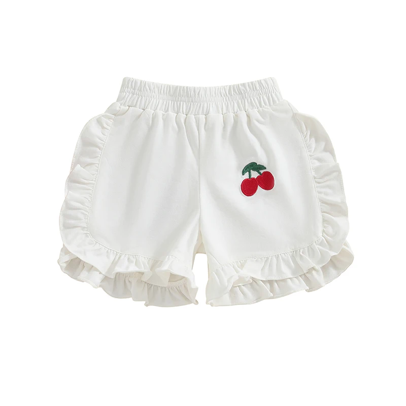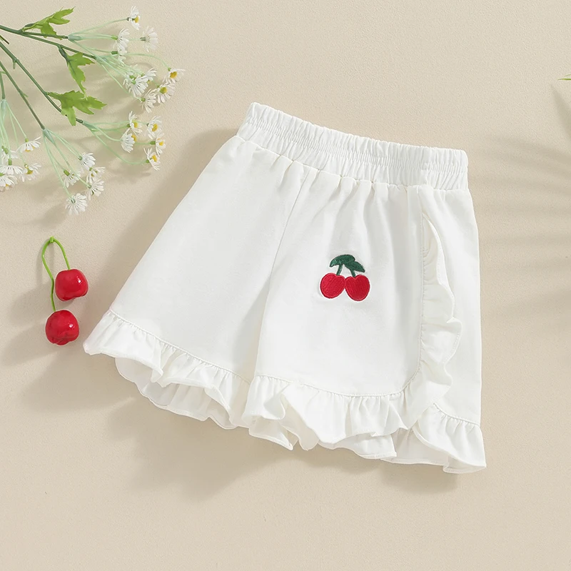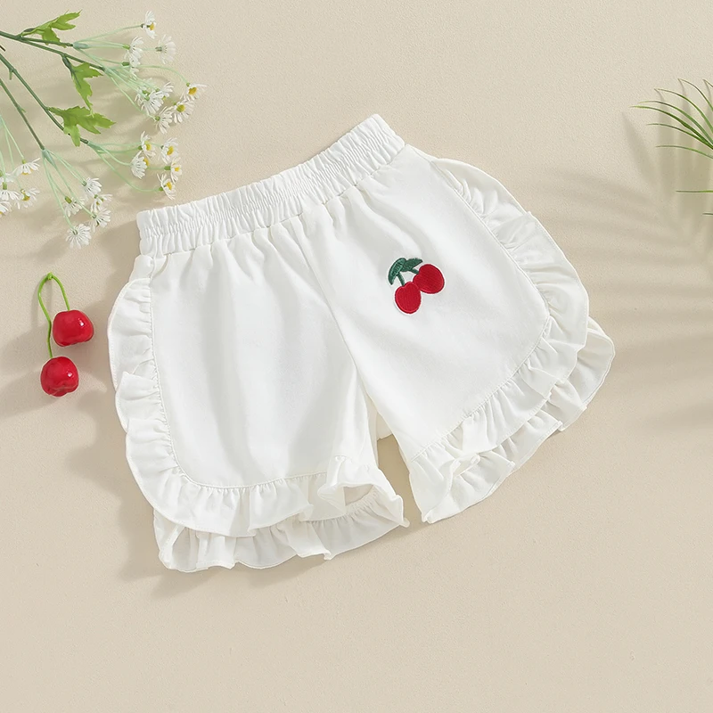 Kids Baby Girl Ruffled Shorts Cute Cherry Embroidery Short Toddler Summer Casual Bloomer Shorts