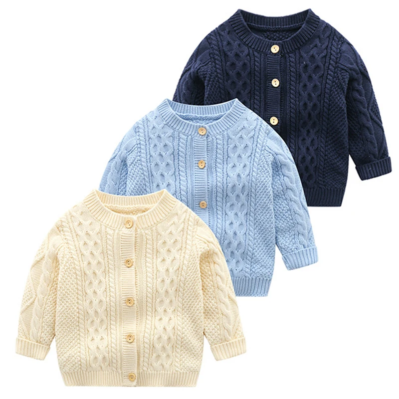 New Cardigan Baby Sweater Knitted Boys Girls Toddler Solid Sweater Handmade Infant Single Breasted Cardigan Kids Newborn Clothes