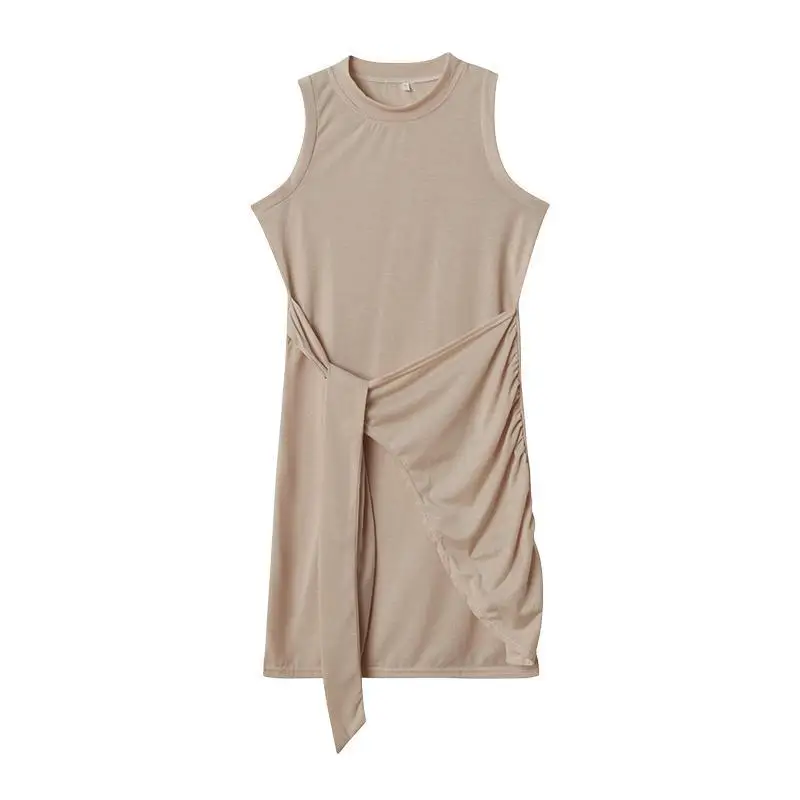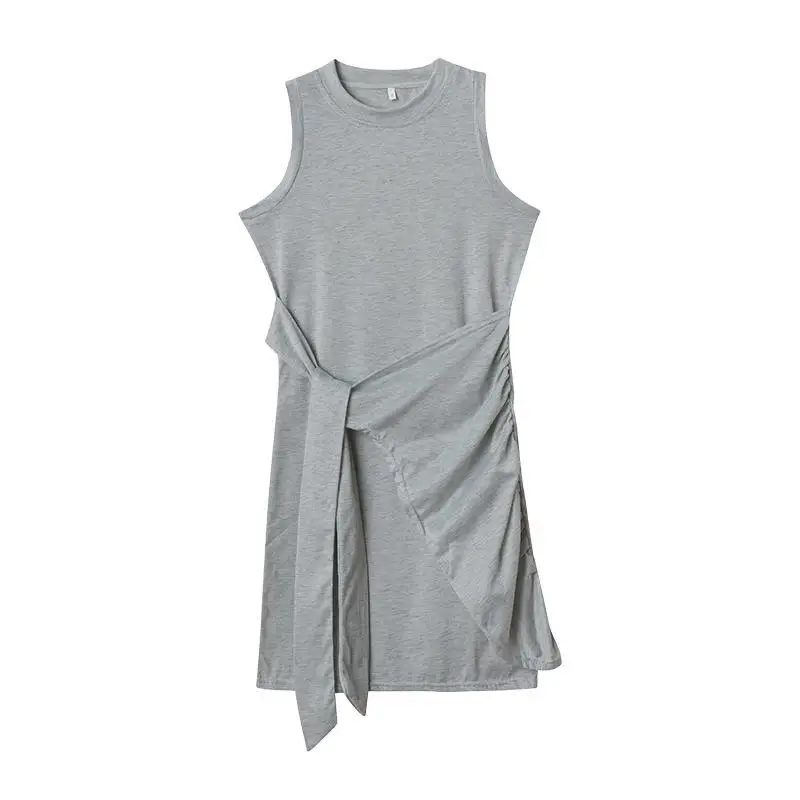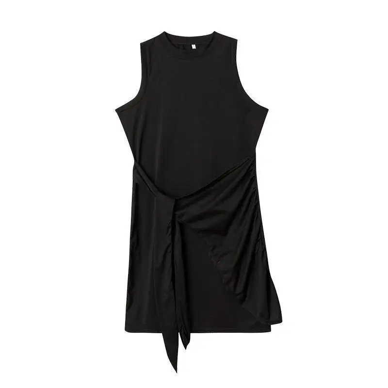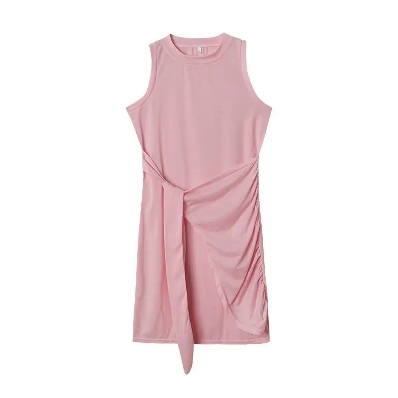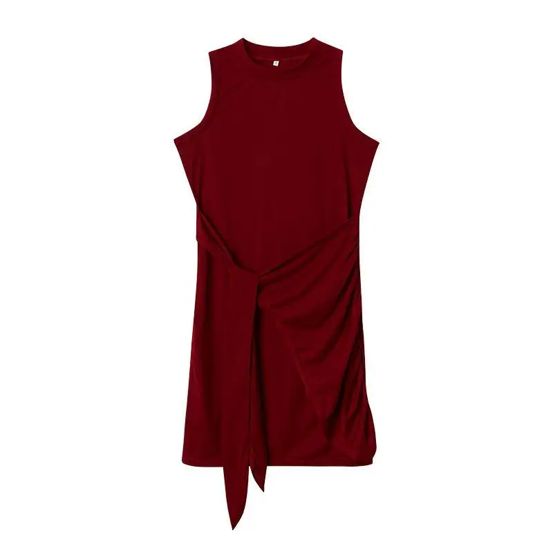 Sleeveless Round Neck Pleated Bow Dress for Women's Irregular Tight Fitting Skirt