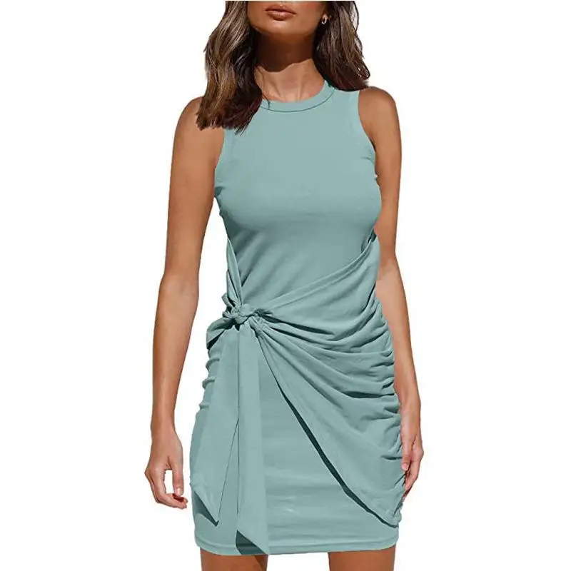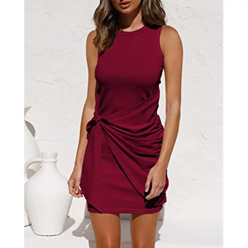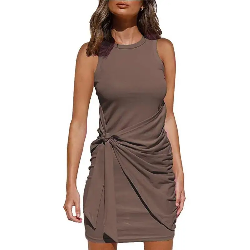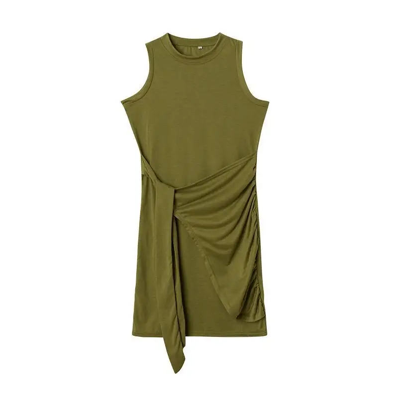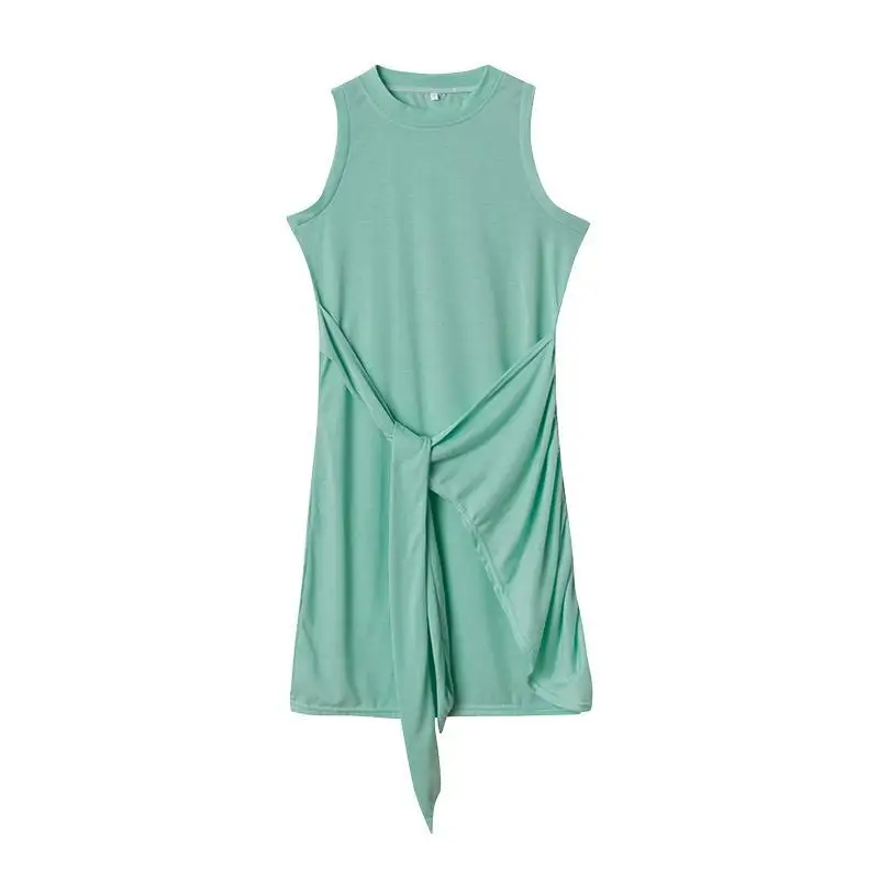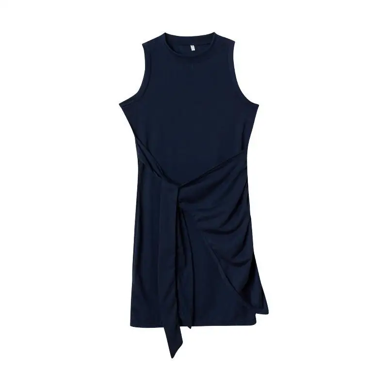 Sleeveless Round Neck Pleated Bow Dress for Women's Irregular Tight Fitting Skirt