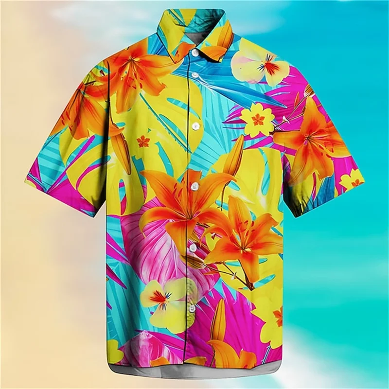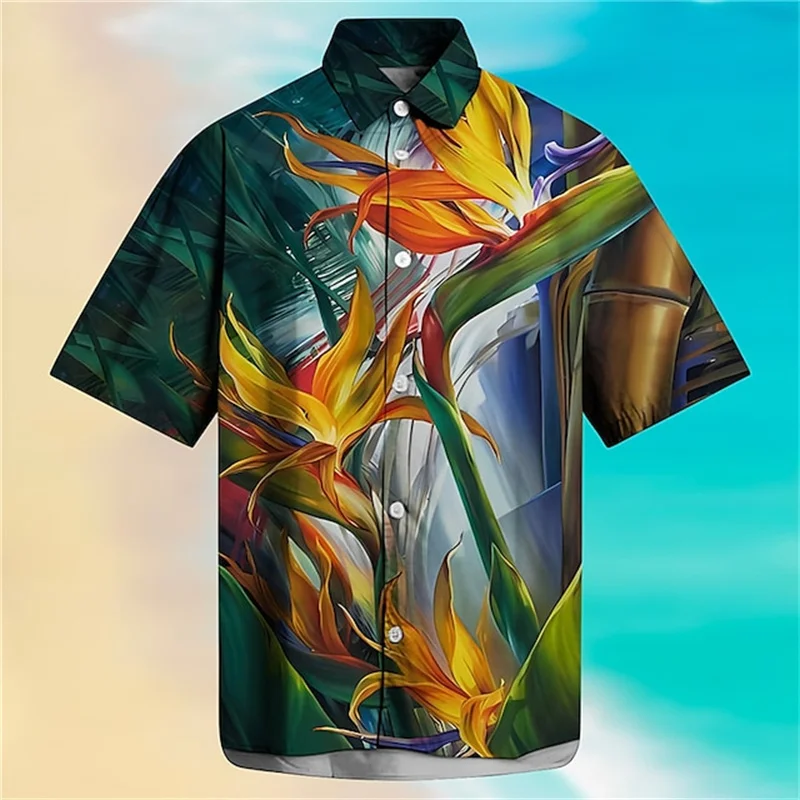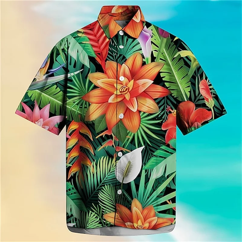 Summer 3D Print Floral Shirts Men Hawaiian Y2k Top Breathable Fashion Beach Vacation Men's Short Sleeved Blouse Casual Clothing