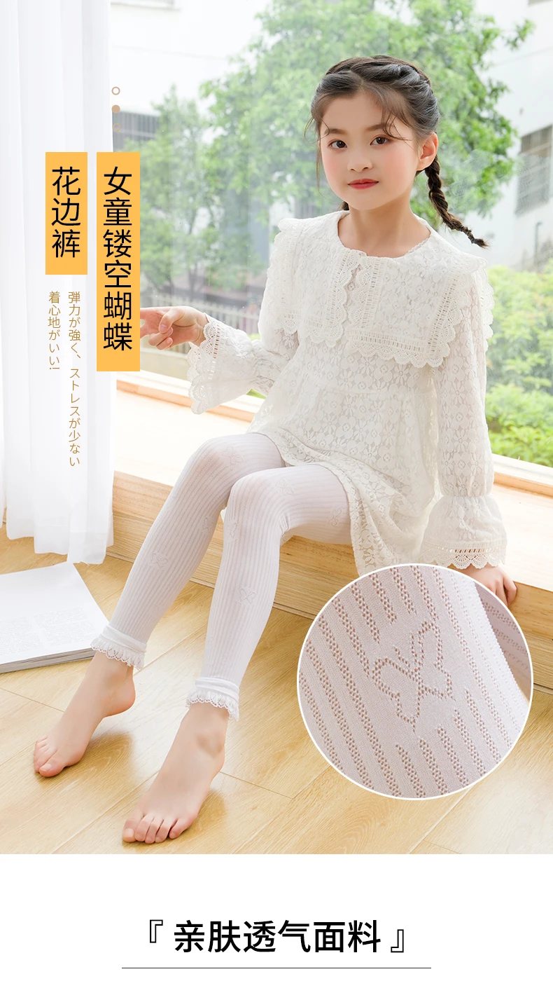Summer hollow butterfly lace cropped trousers girls velvet dance socks summer baby mosquito socks children thin leggings tights