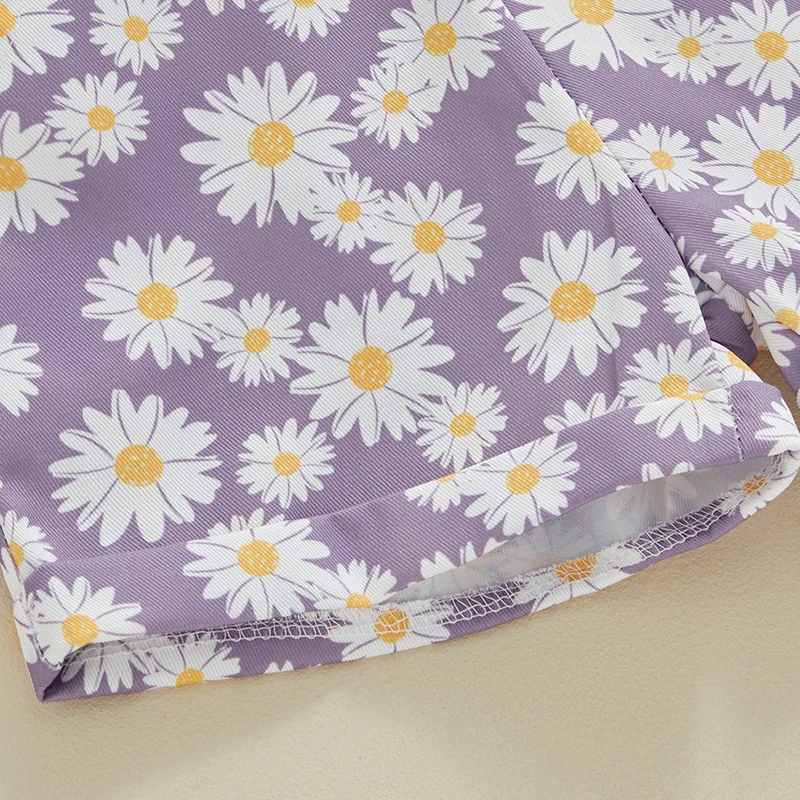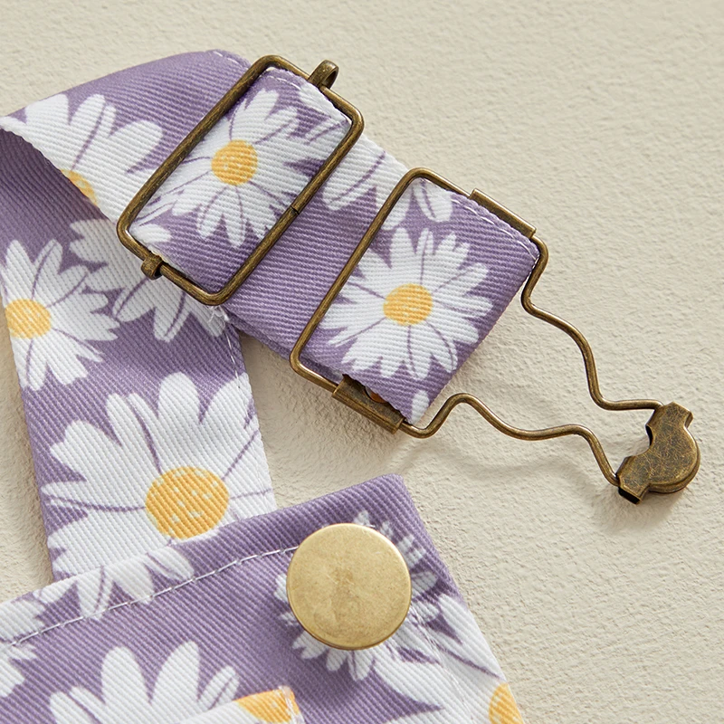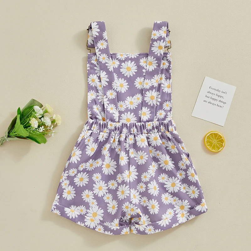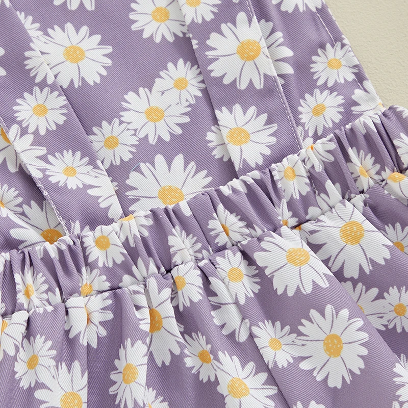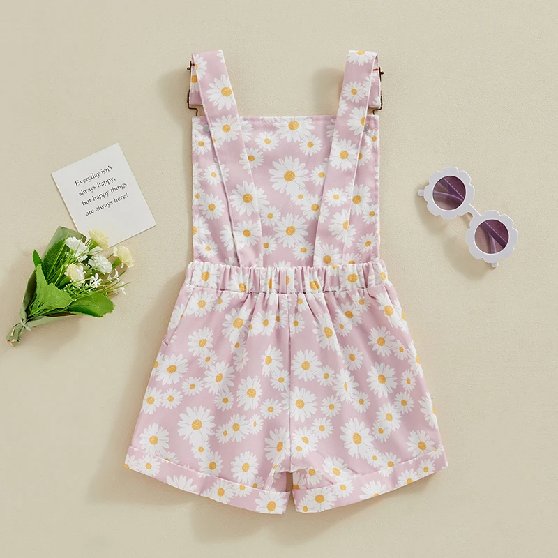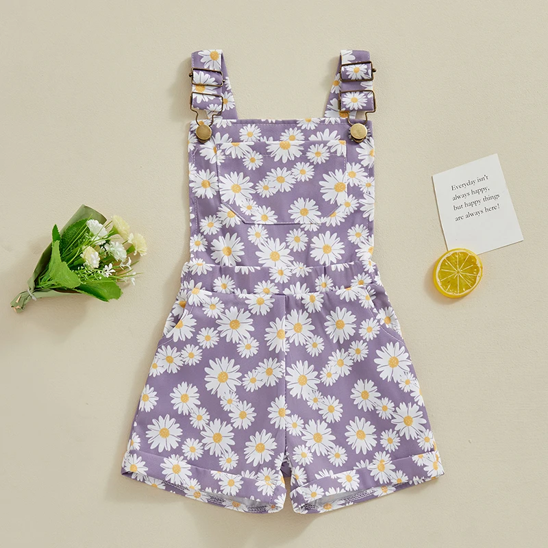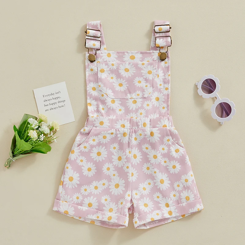 Kids Girls Jean Overalls Daisy Print Sleeveless Adjustable Strpas Imitation Denim Shortall Summer Romper Jumpsuit