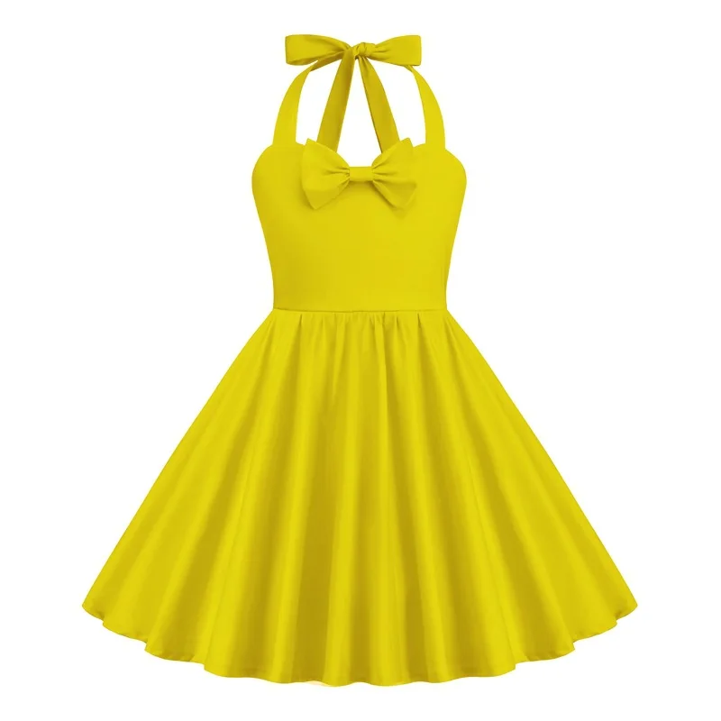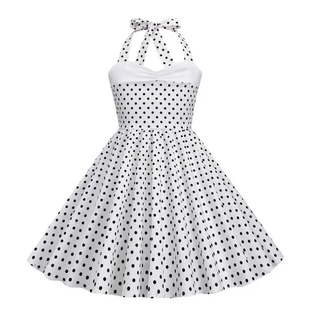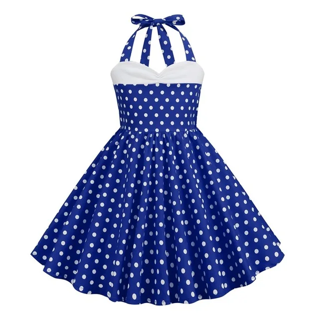 Vintage Polka Dot Halter Dress 50s Audrey Retro Swing Party Dress Print Sleeveless A-Line Casual Dress Toddler Girls Clothes