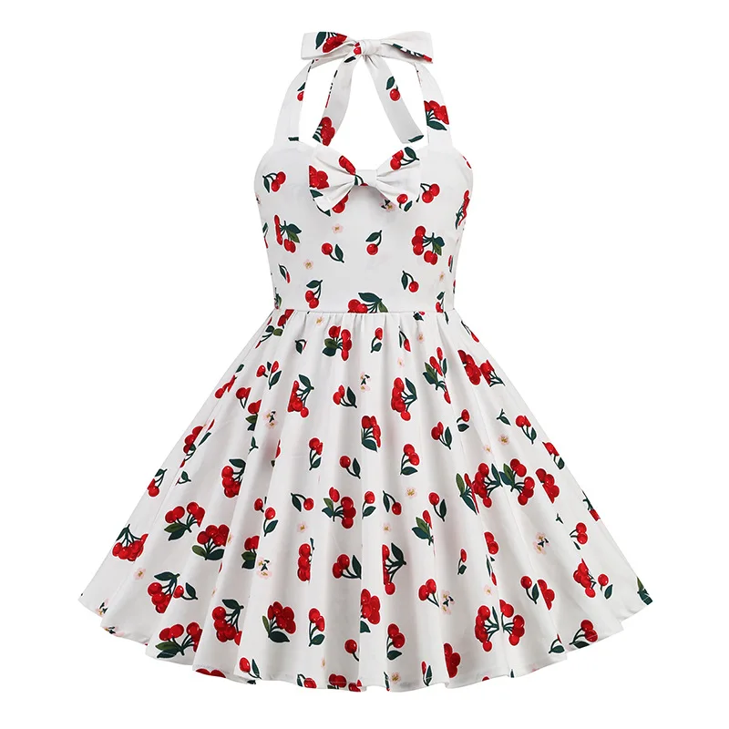 ❤[Retro A-line Swing Dress for Girls 50s] Birthday Dress, Girl, Dress, Sleeveless, Polka Dot / Strawberry / Cherry / Floral Print, Bow, Suitable for holiday birthday theme!