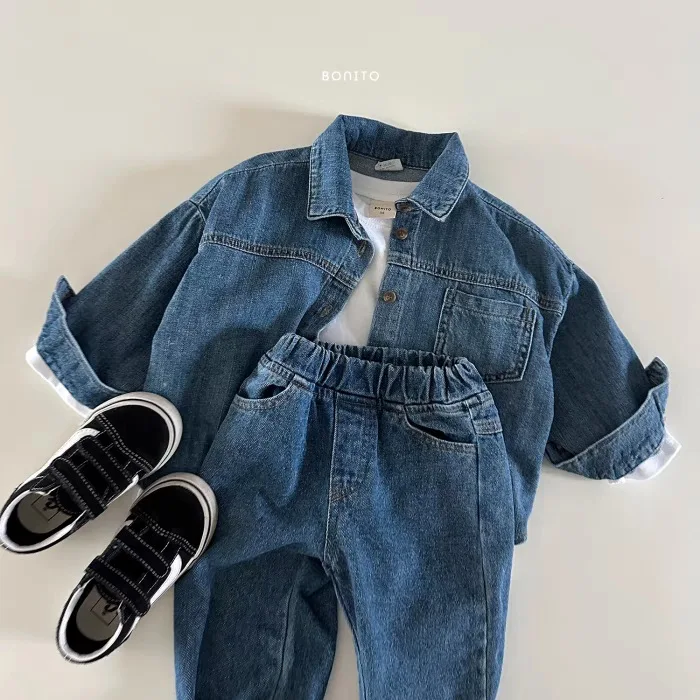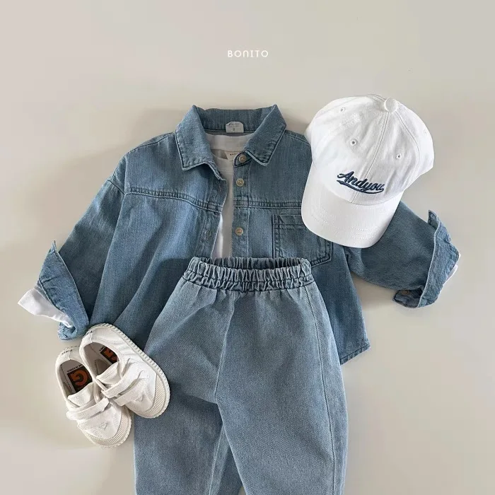 Otoño nueva chaqueta vaquera de manga larga para bebés, abrigo de solapa con bolsillo para niños, abrigo informal para niños, Tops vaqueros Vintage para bebés, ropa