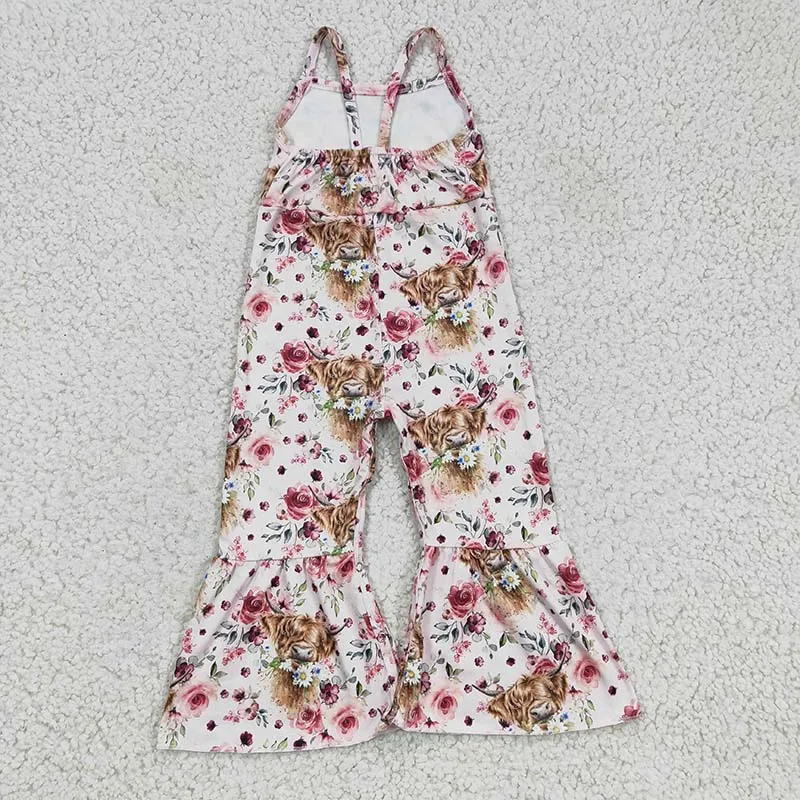 Mono de vaca occidental para niña pequeña, ropa Floral sin mangas de una pieza, venta al por mayor, pantalones de campana para niño, pelele nuevo con flores
