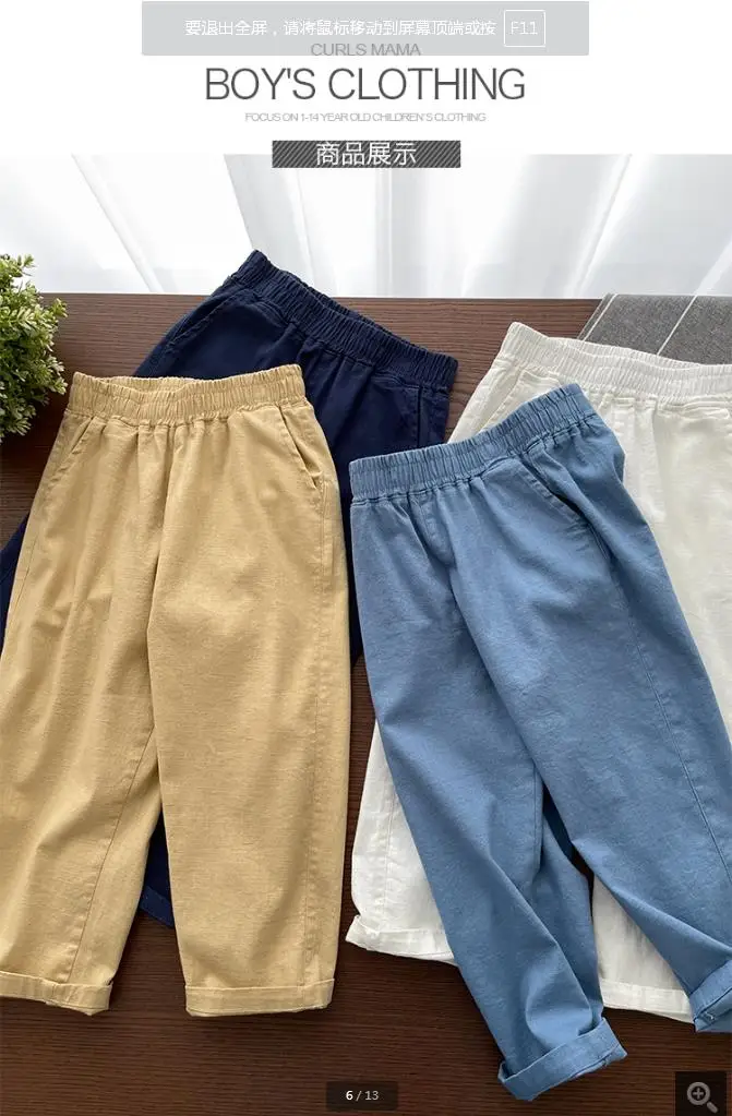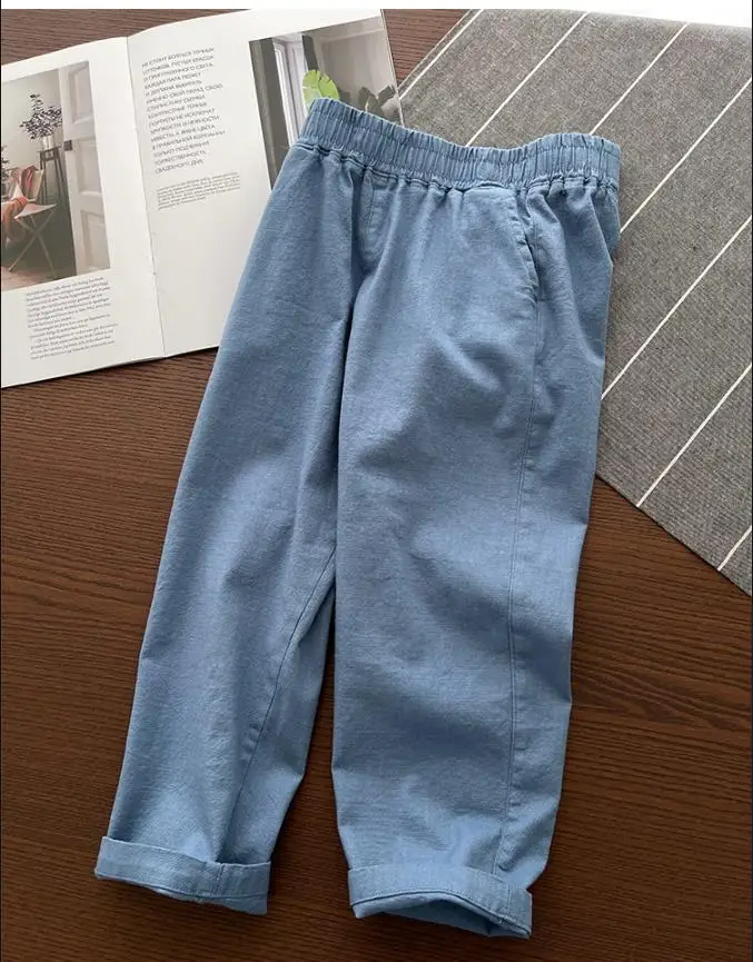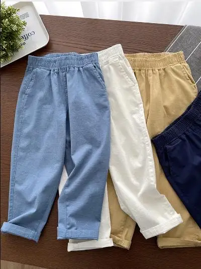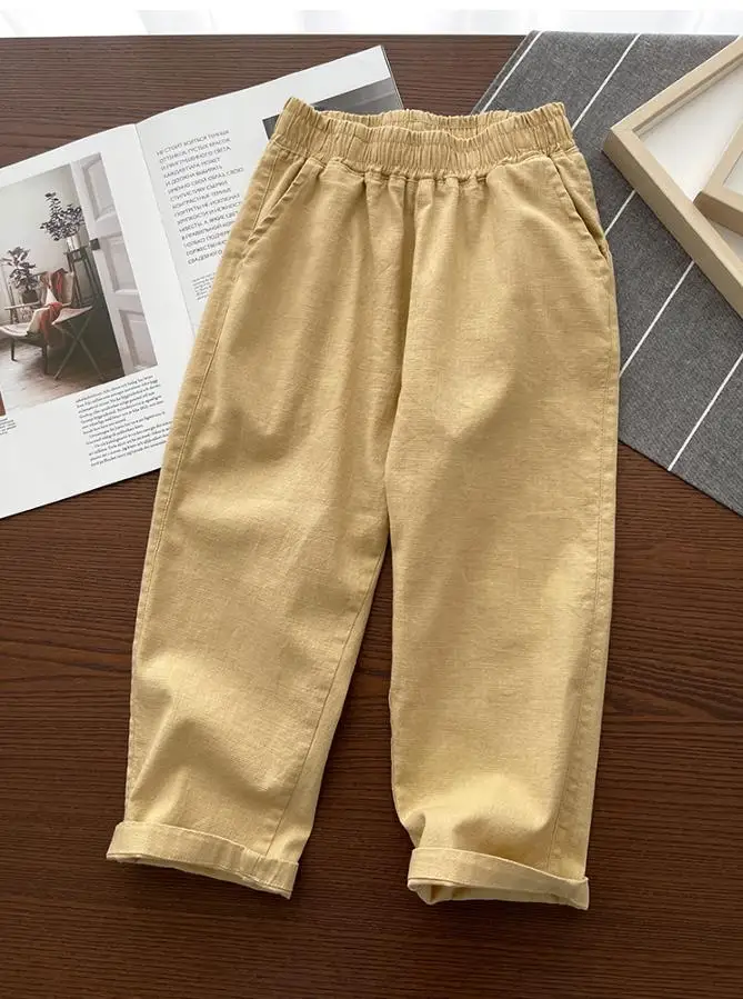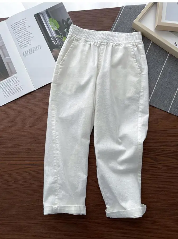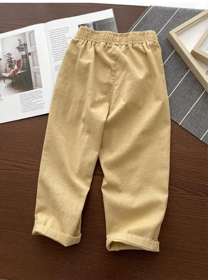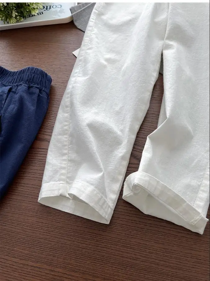 Pantalones casuales para niños, pantalones de lino y algodón de Color sólido, ropa de verano para niños de 110-170cm