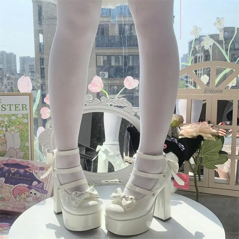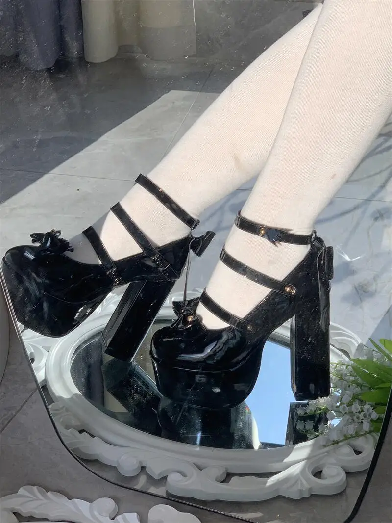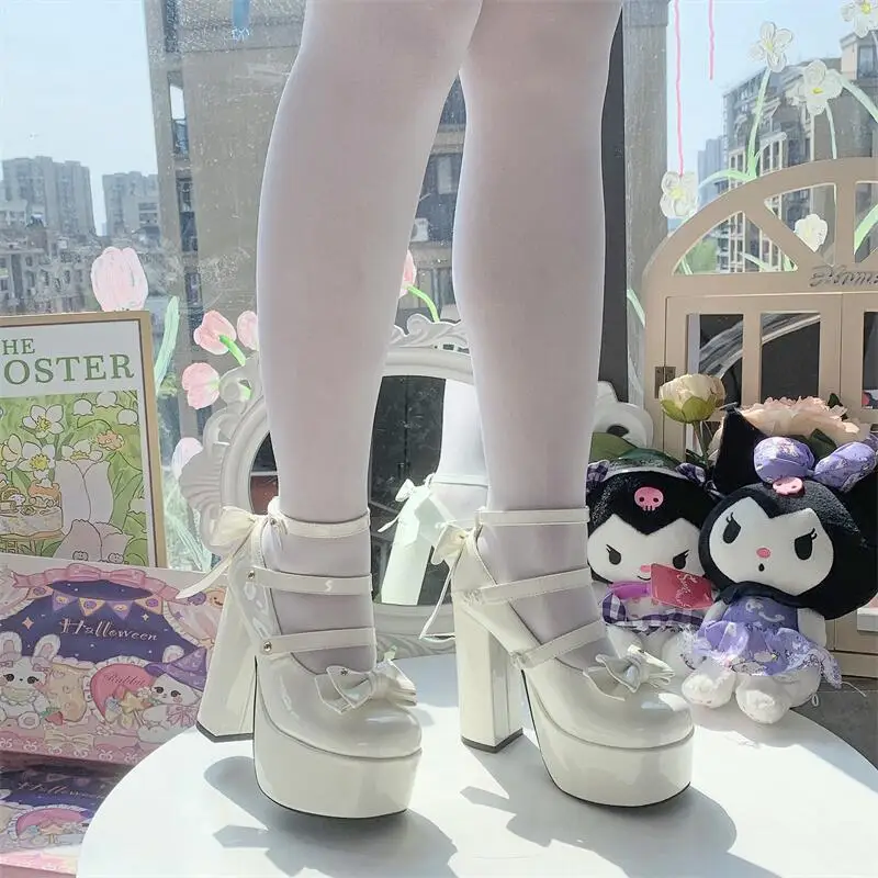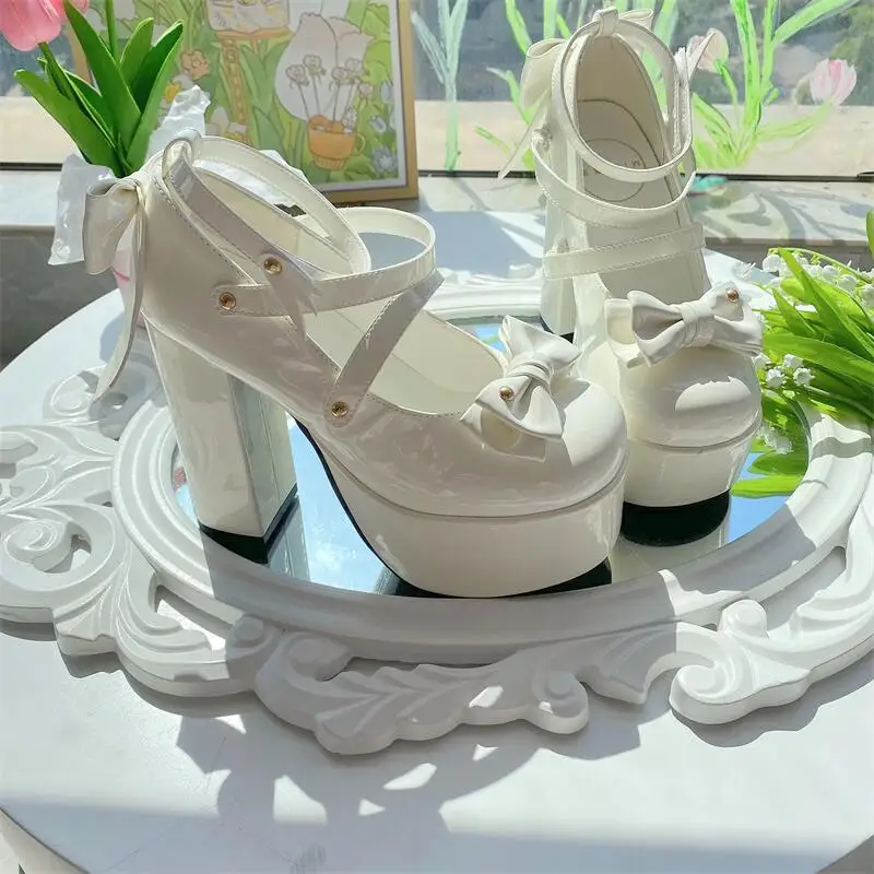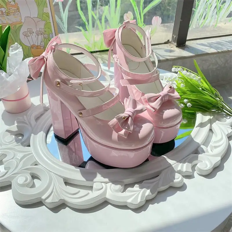 Tacón grueso para mujer 2024 nueva primavera elegante Mary Jane tacón alto punta redonda Bowknot zapatos de plataforma impermeables para mujer