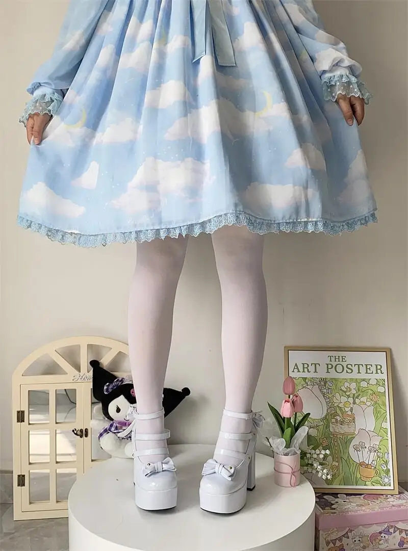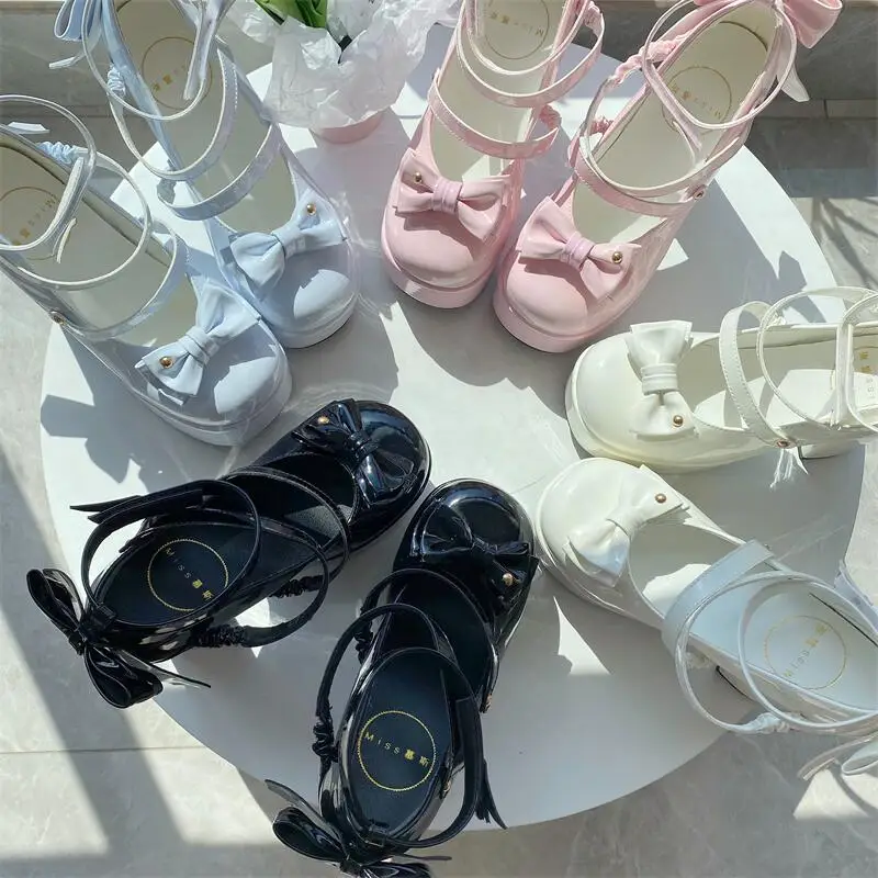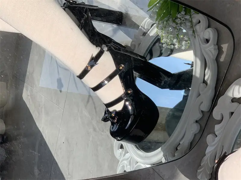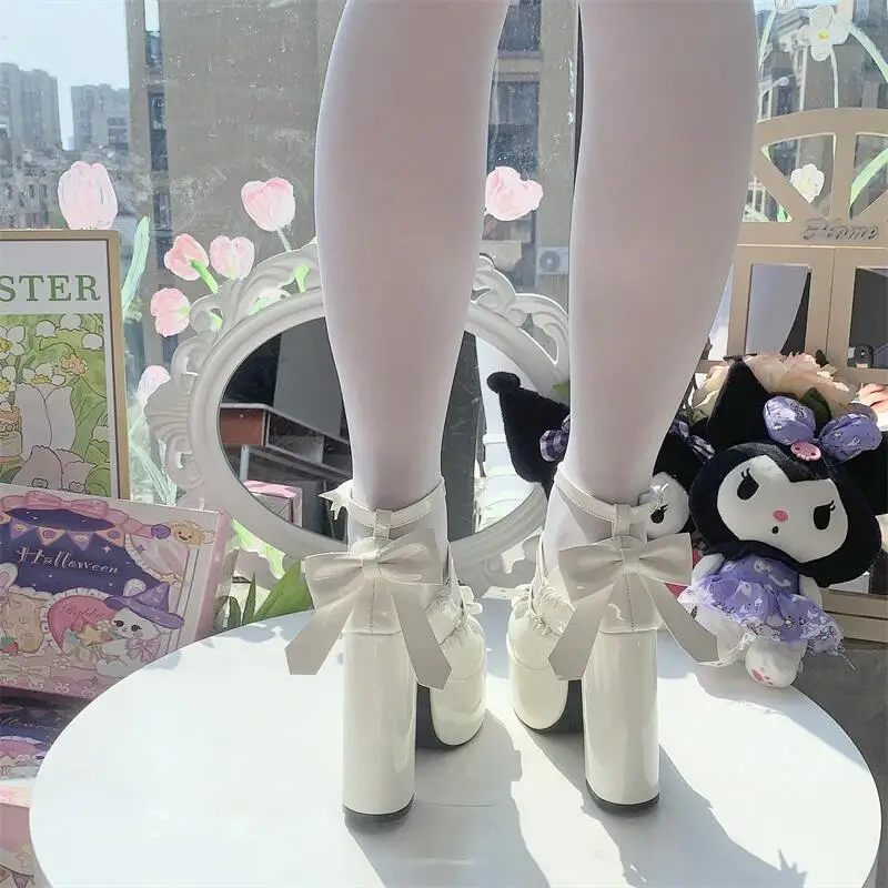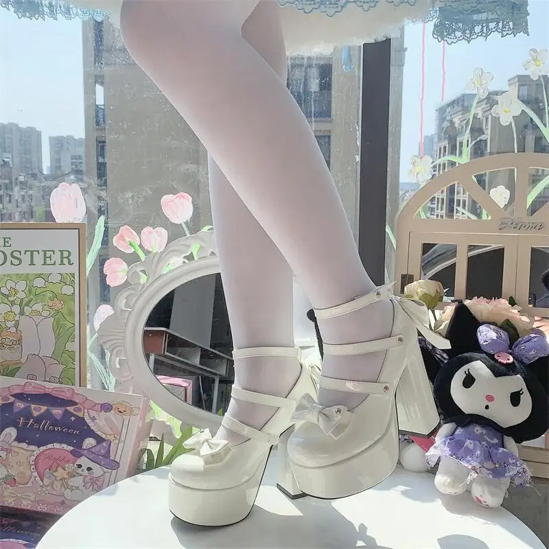 Tacón grueso para mujer 2024 nueva primavera elegante Mary Jane tacón alto punta redonda Bowknot zapatos de plataforma impermeables para mujer