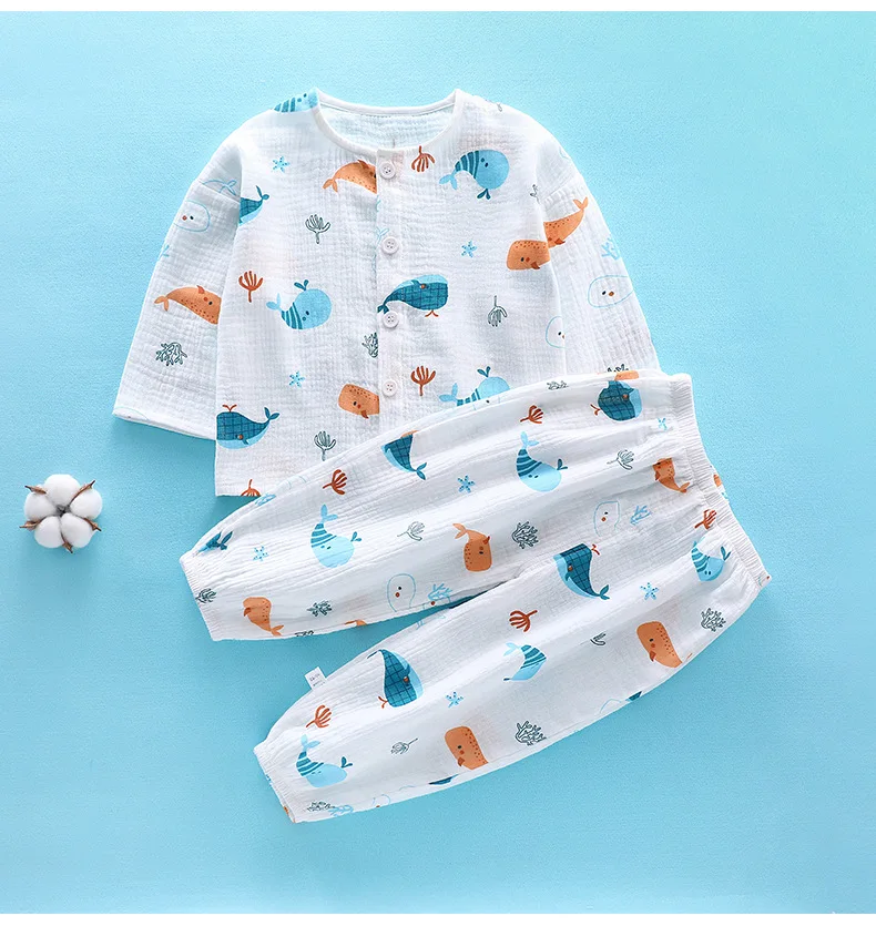 Pijamas para niños y niñas, camisetas finas de manga tres cuartos con pantalones de algodón y lino para verano 2023, conjuntos de ropa para dormir para bebés