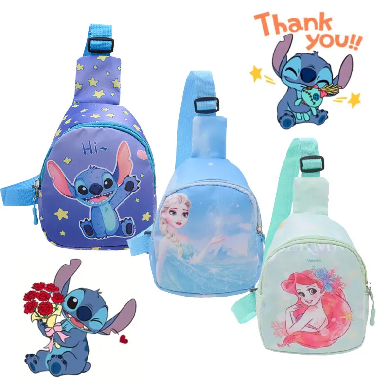 Nuevo Mini paquete de pecho de dibujos animados de Disney Stitch para niños, bolsos cruzados de Minnie Mouse Frozen, bolsos de hombro informales, regalos