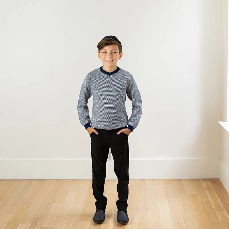 Jersey nuevo AP Herringbone SweaterAP otoño 2024, suéter con cuello en V para niños, 100% algodón Natural, Tops de punto geométrico para niños, #7708
