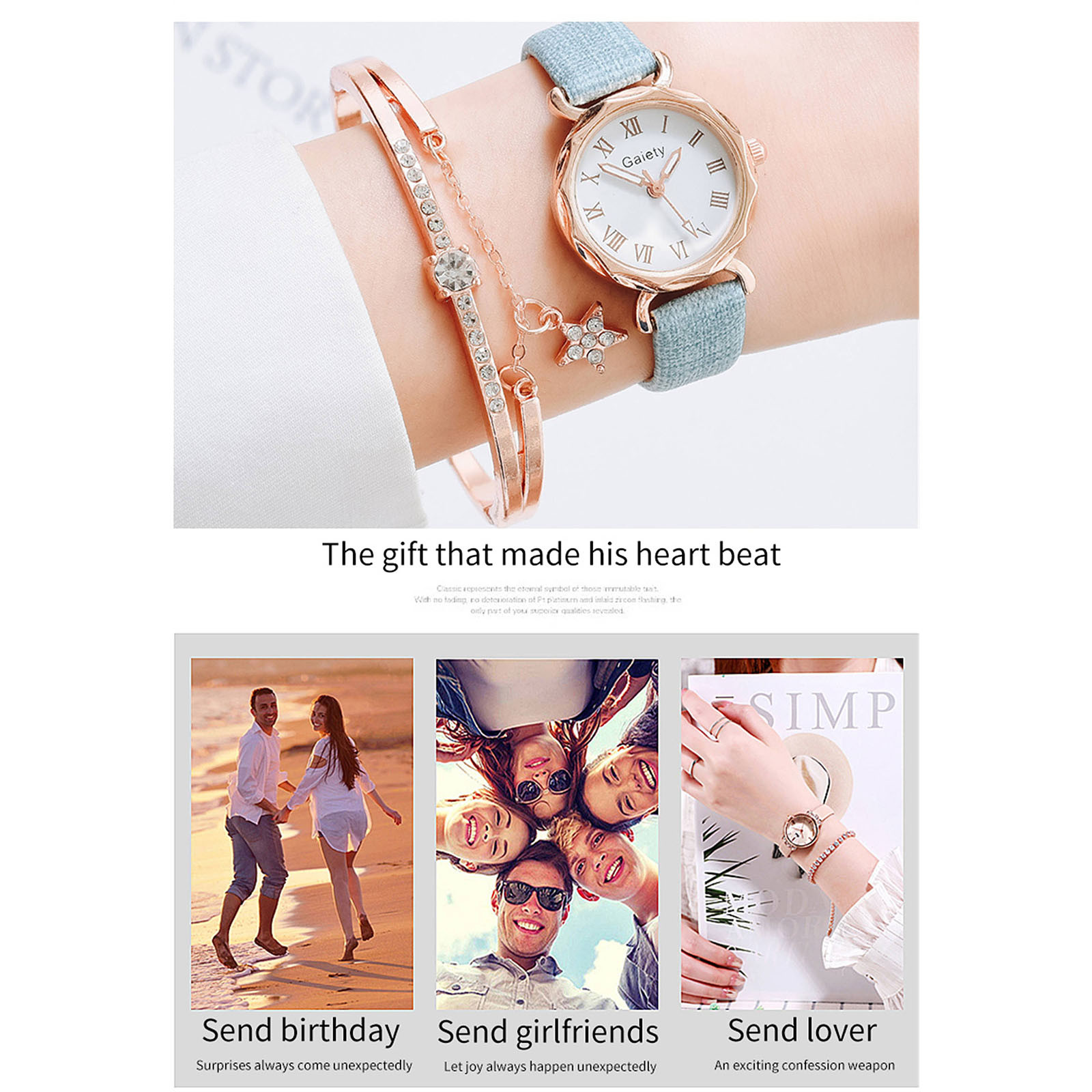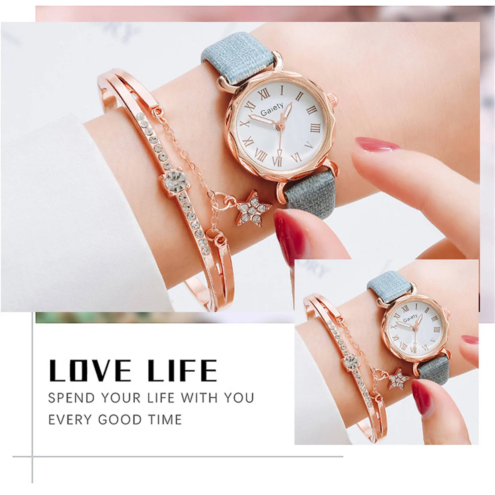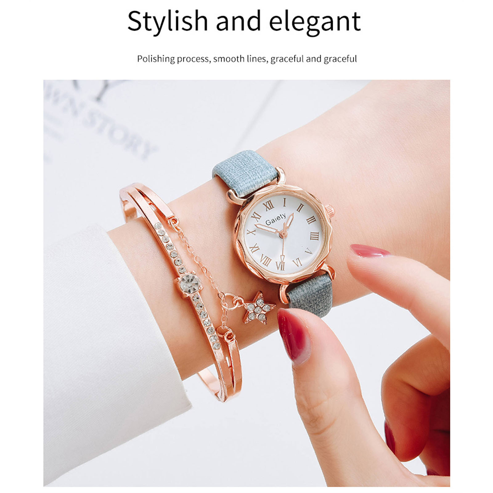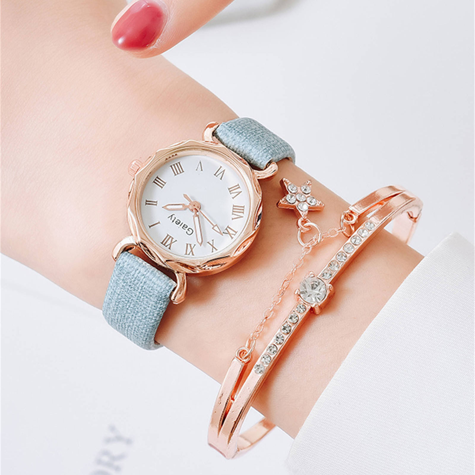 2pcs Set Luxury Women Bracelet Quartz Watches For Women Leather Watch Ladies Quartz Wristwatches Temperament Ladies Watch