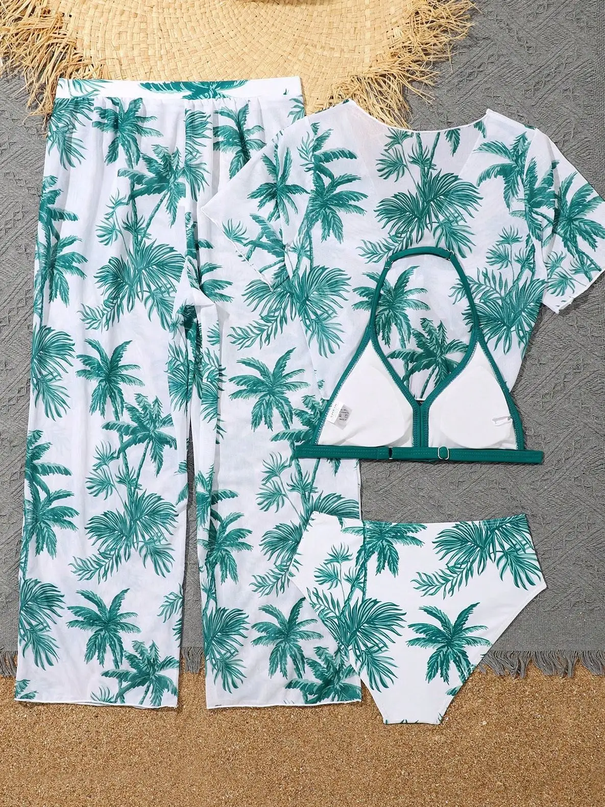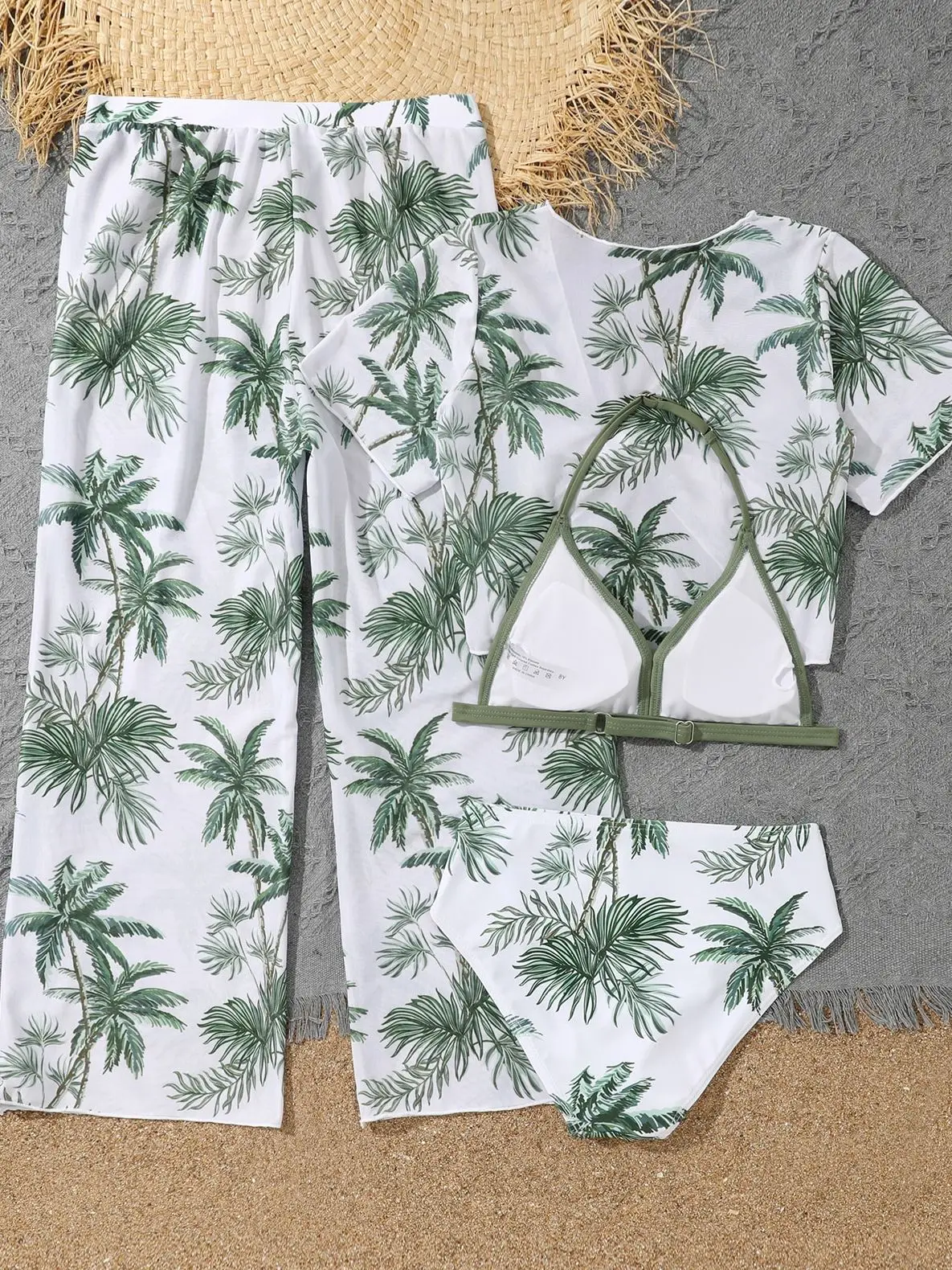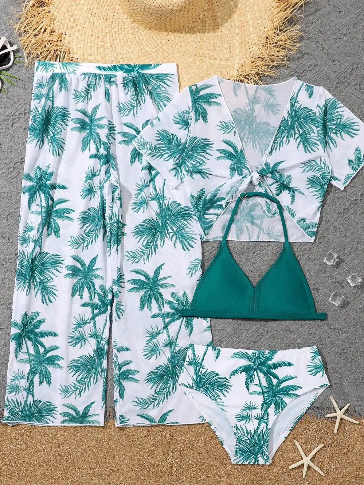 Conjunto de Bikinis de 4 piezas, Top y pantalones, traje de baño para niñas, bañador para niños, bañistas para mujeres, traje de baño para nadar, ropa de playa 2023