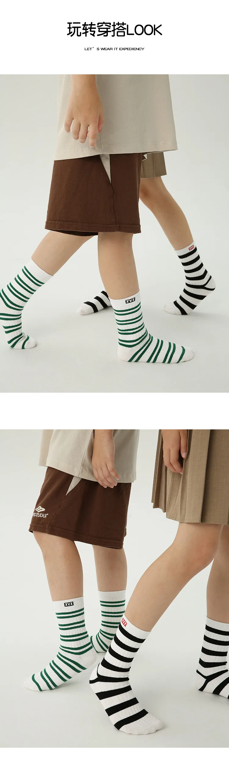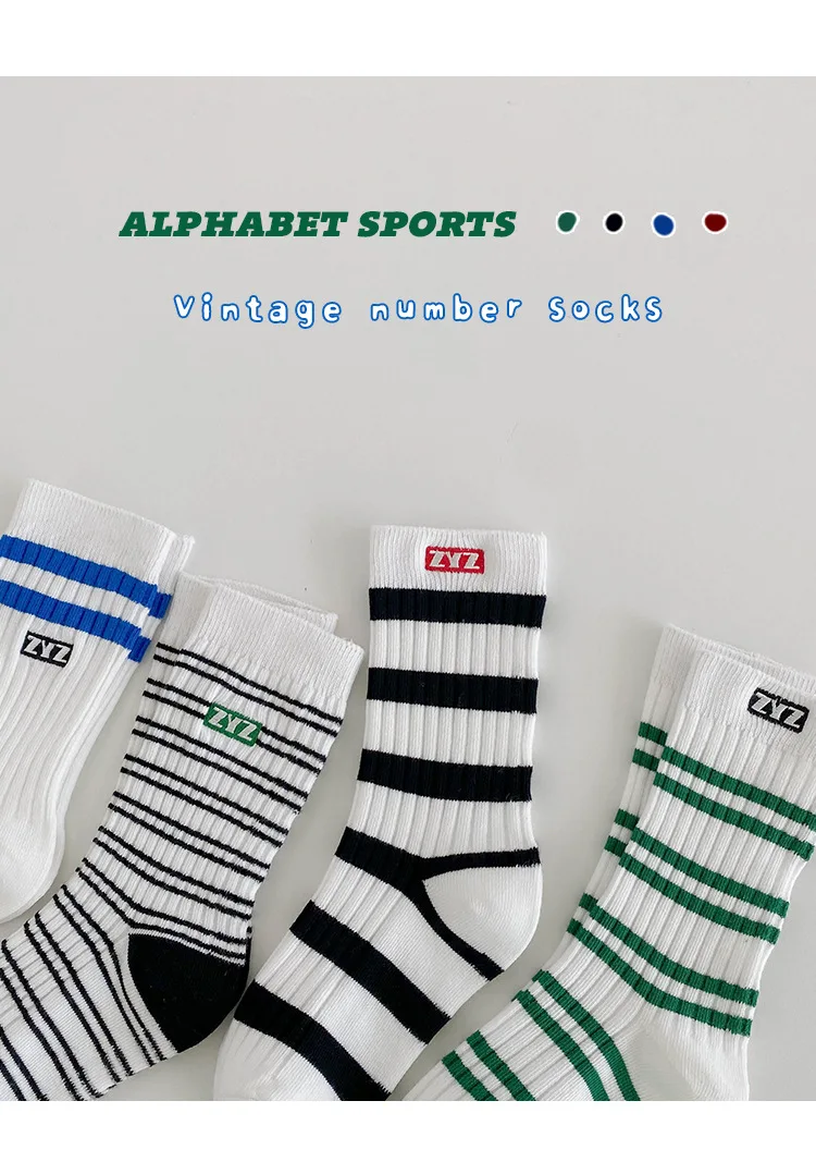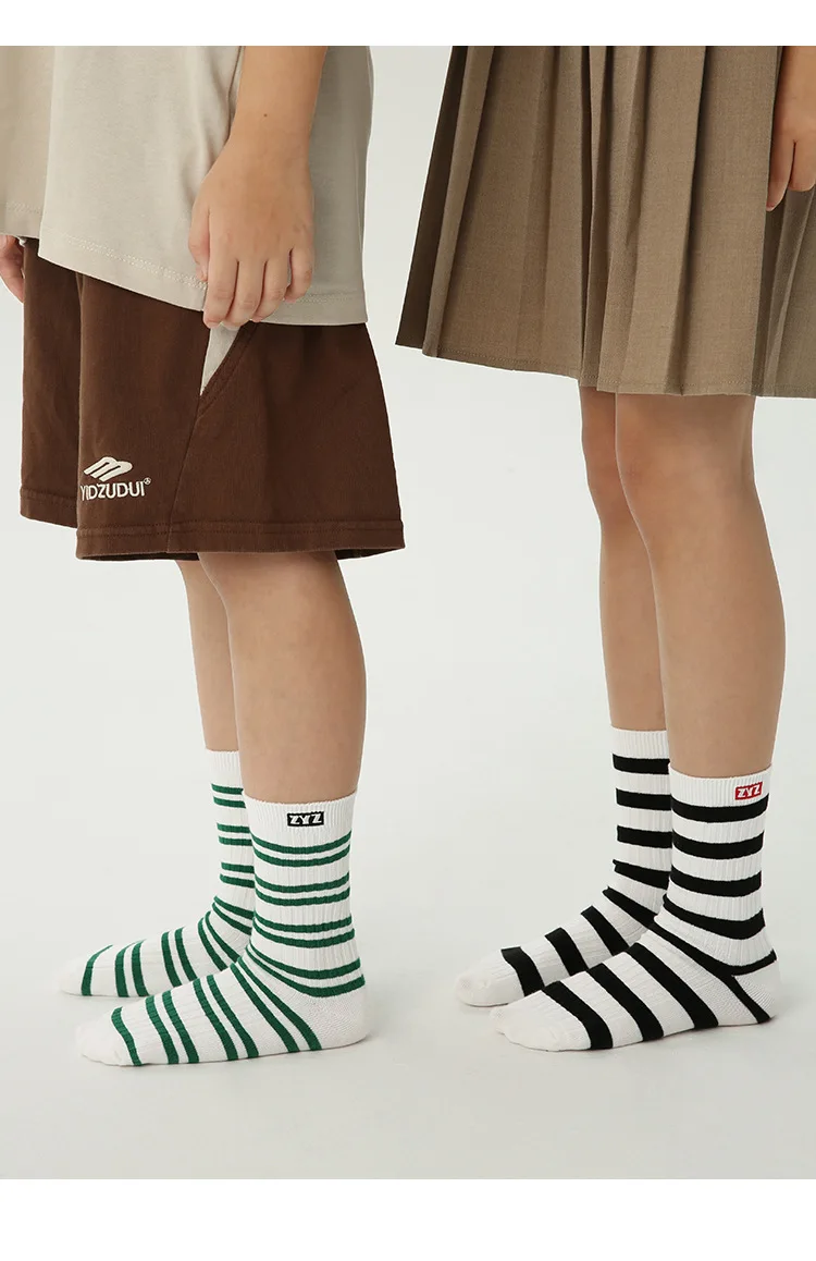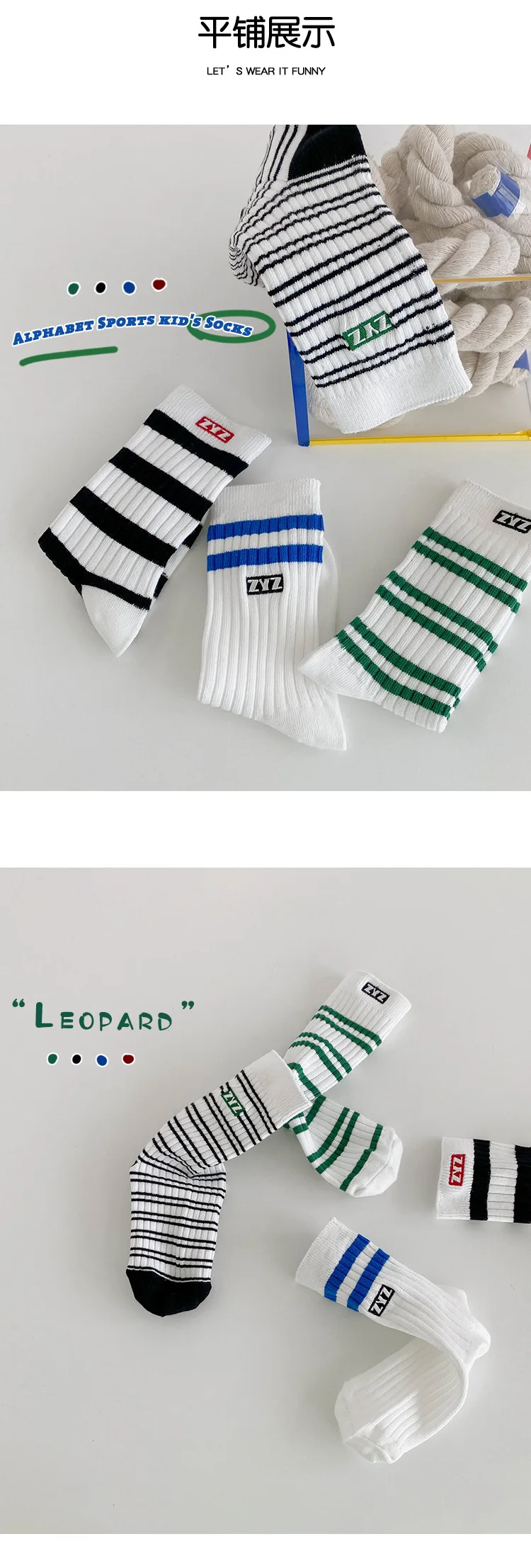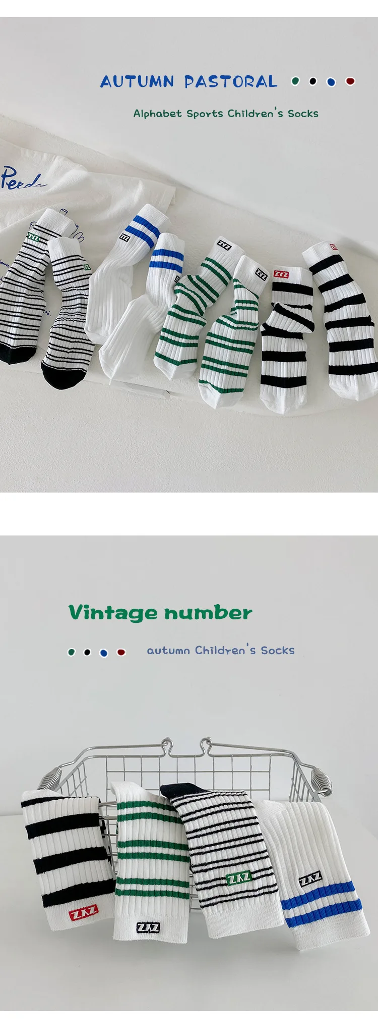Calcetines de media pantorrilla para niños, medias de algodón para primavera y otoño, calcetines deportivos para niños y niñas, calcetines escolares acogedores con rayas clásico
