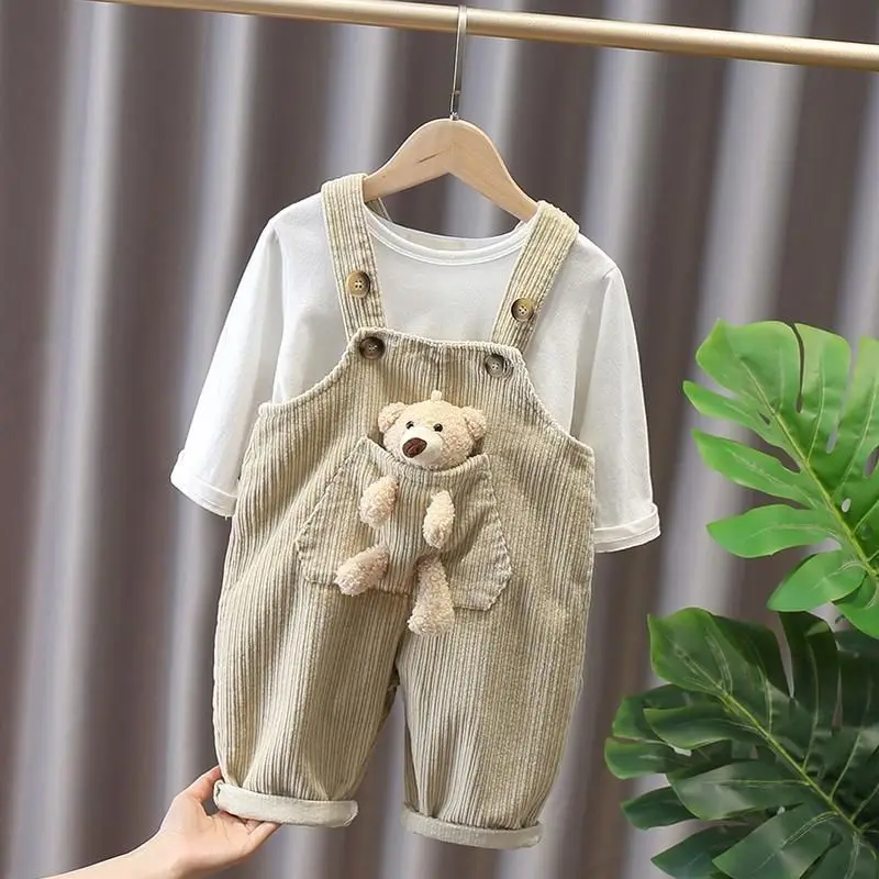 Monos de pana de oso para niños, ropa para primavera y otoño, monos para niños y niñas, pantalones casuales, mono para niña de 1 a 3 años