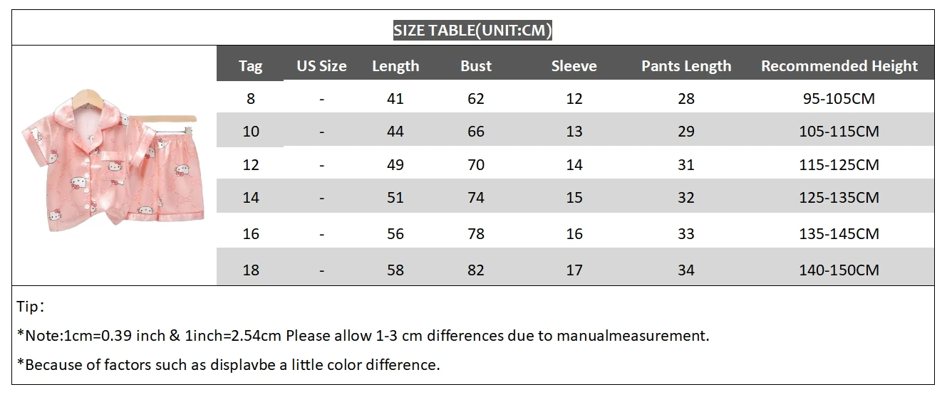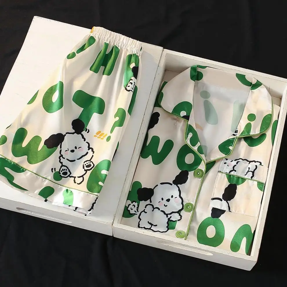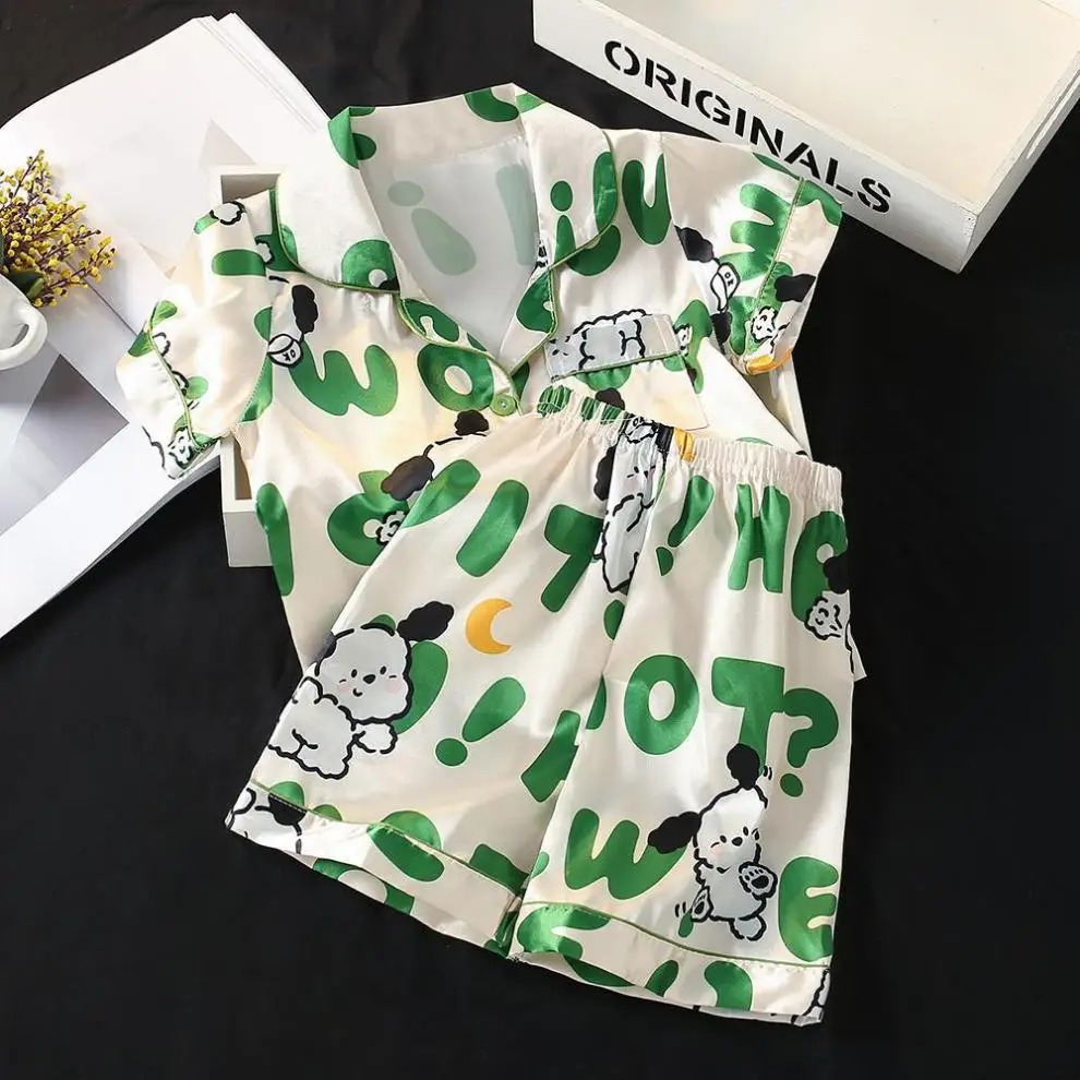 Conjunto de pijamas de seda de hielo para niños, camiseta de manga corta con cuello vuelto de dibujos animados de Sanrio Hello Kitty y pantalones cortos, ropa de dormir para niños de 2 uds.