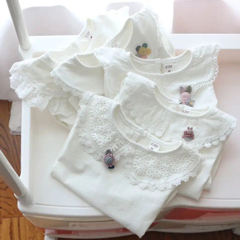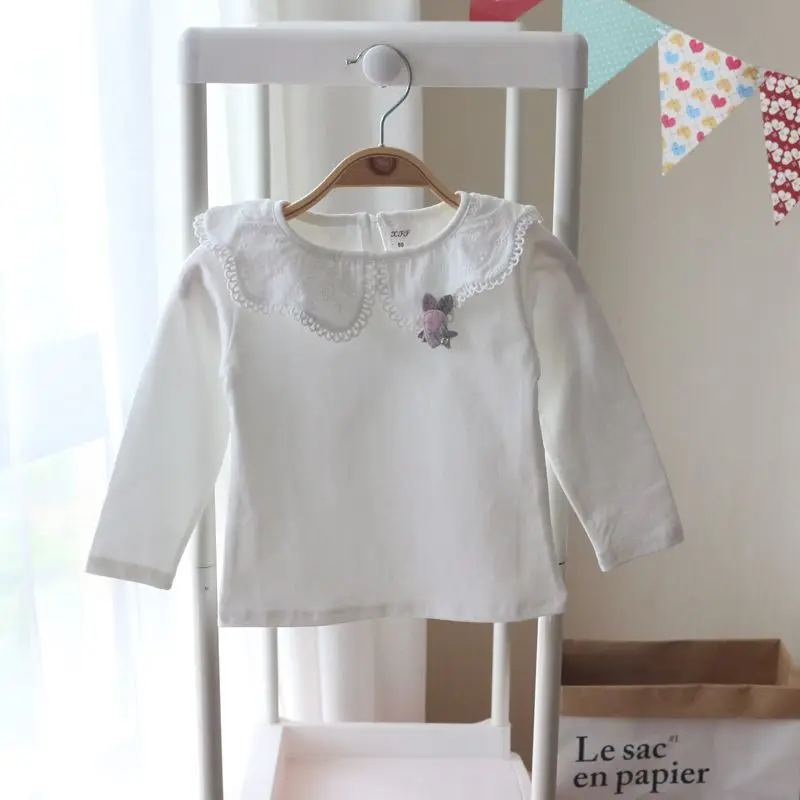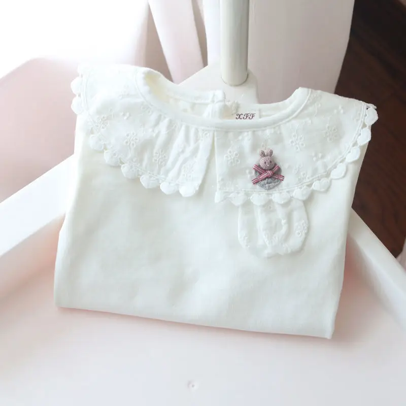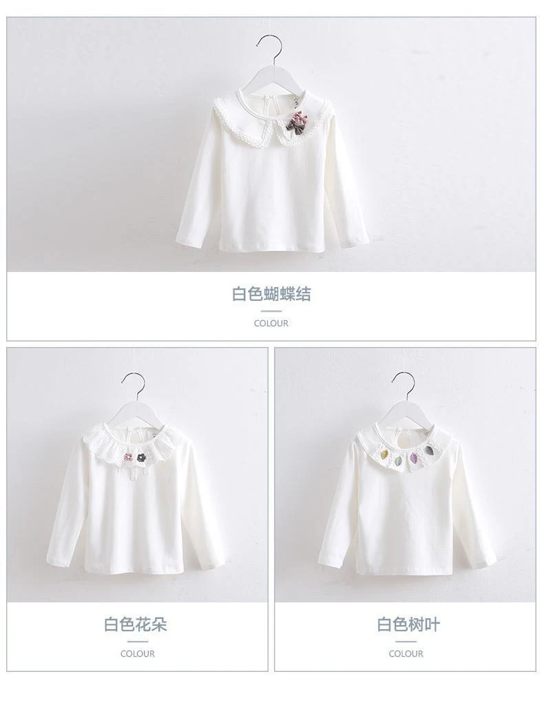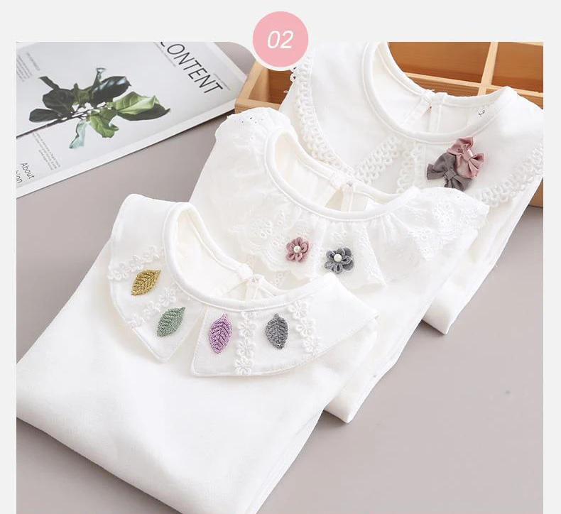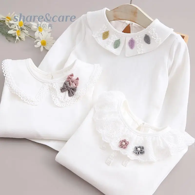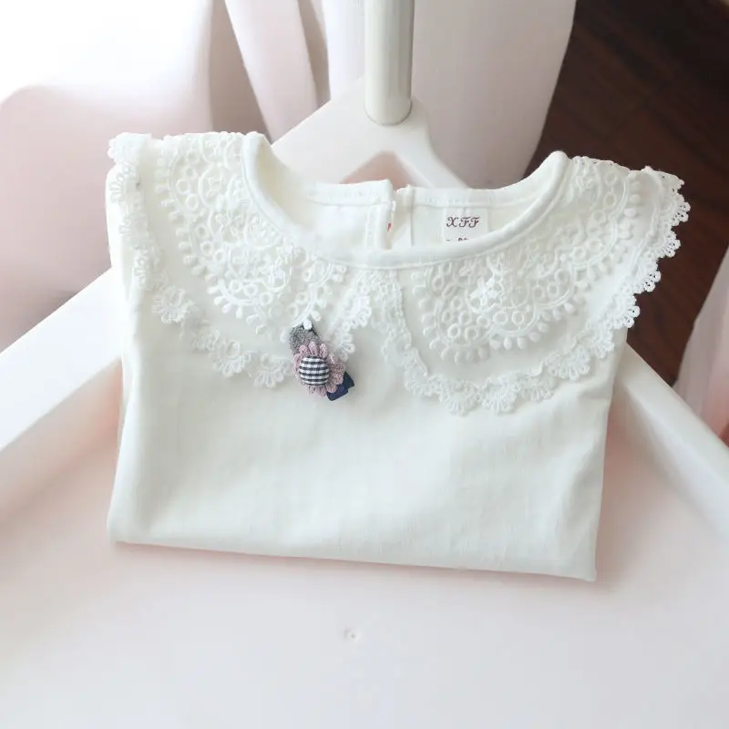 Camisas para niños, camisetas blancas para niñas de la escuela, camisas de encaje de manga larga, camisa para niños, ropa informal para niños pequeños y adolescentes