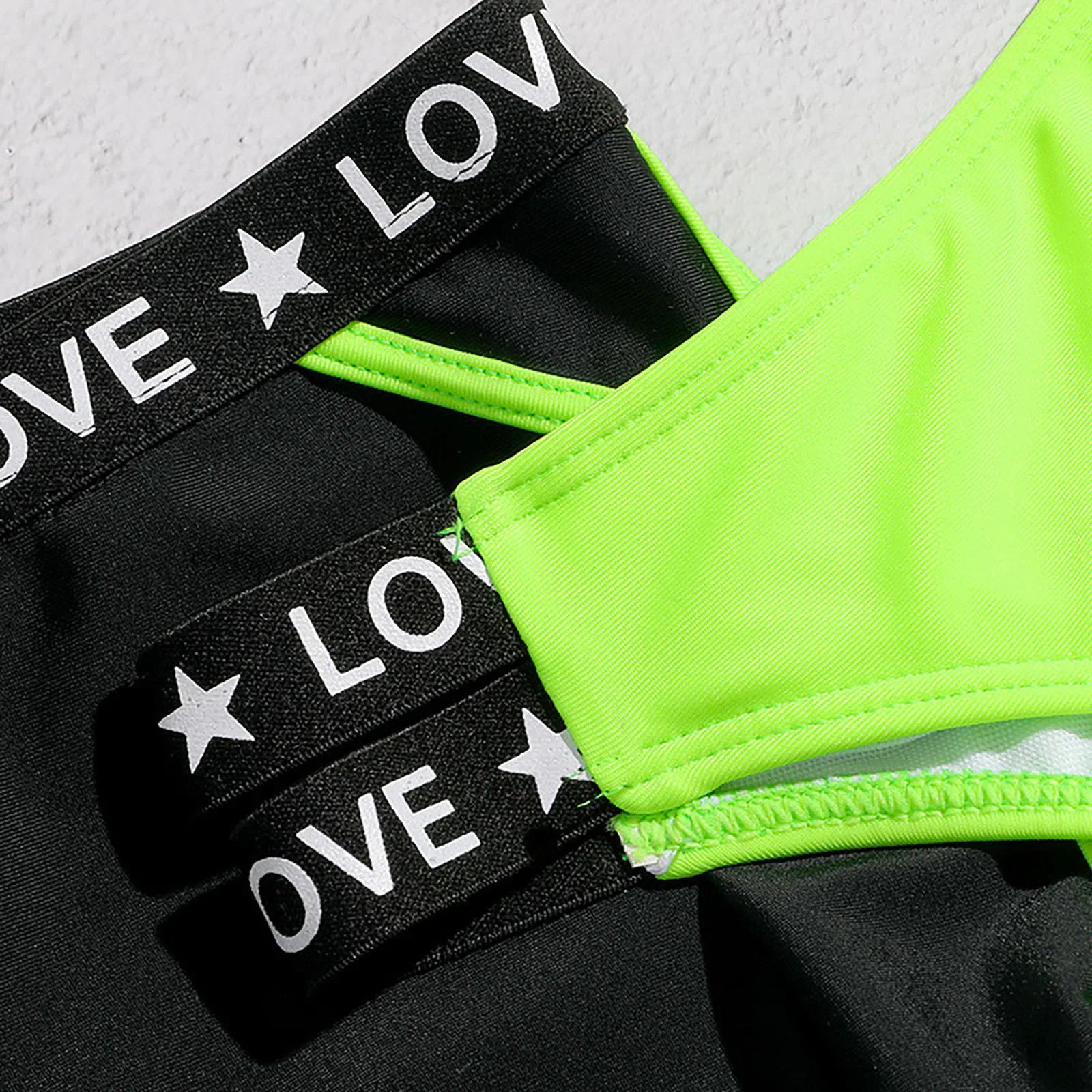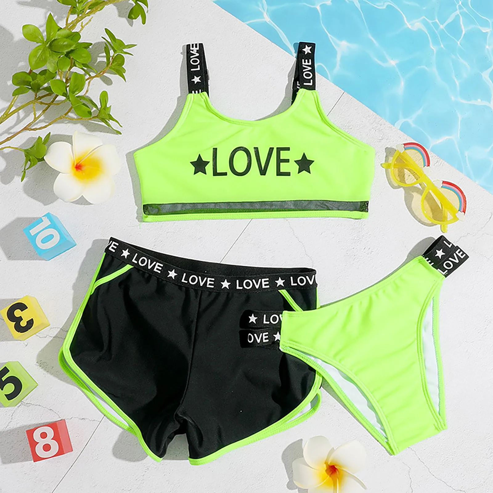 Niños Niñas Trajes de baño de 3 piezas Traje de baño Camisetas sin mangas Calzoncillos Pantalones cortos con letras Bikini Traje de baño Ropa de playa Trajes de playa