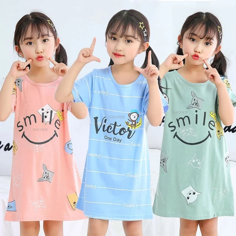 Vestido de dormir para niñas, camisón de dibujos animados de Anime, pijamas de verano para niños, ropa de dormir de manga corta, ropa de casa, ropa de bebé