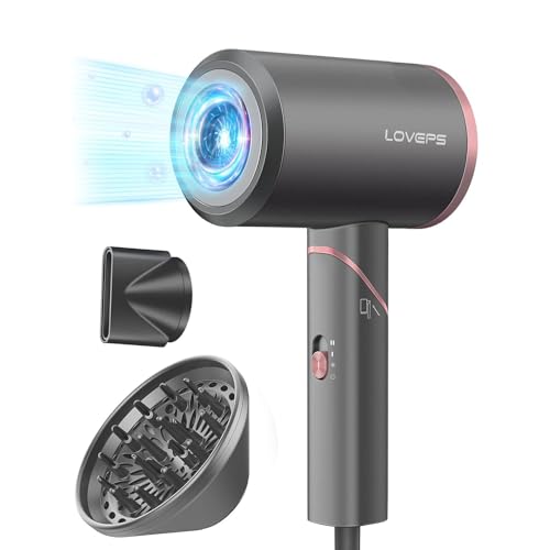 LOVEPS Hair Blow Dryer with Diffuser, 1800W Ionic Blow Dryer, Foldable Handle Travel Hair Dryer, Constant Temperature Hair Care without Hair Damage, Rose Gold
