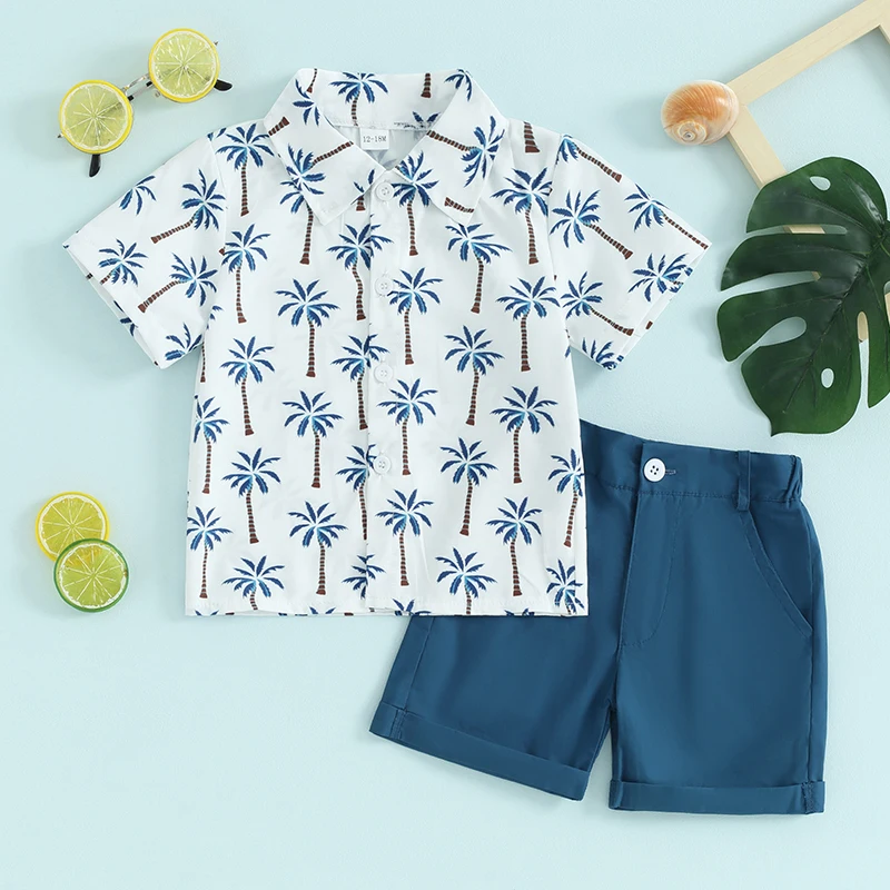 Ropa de verano para bebé niño, camisa hawaiana con botones, Tops con pantalones cortos, 2T, 3T, 4T, 5T, 2 uds.
