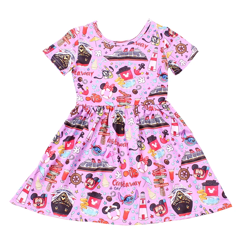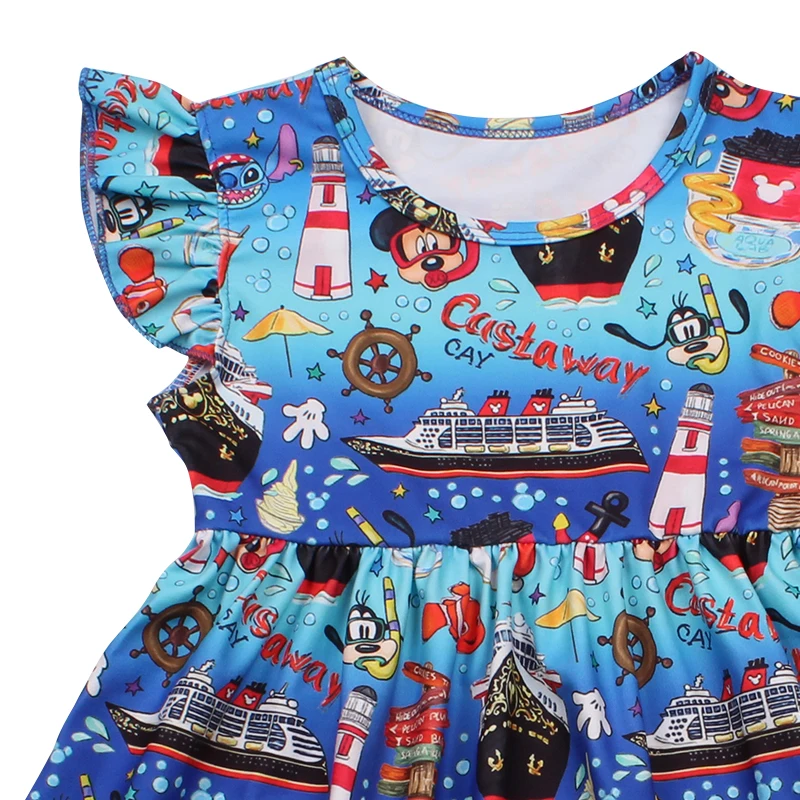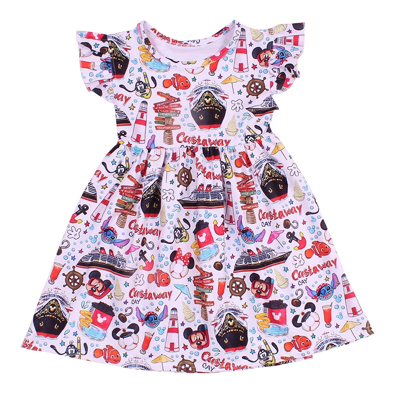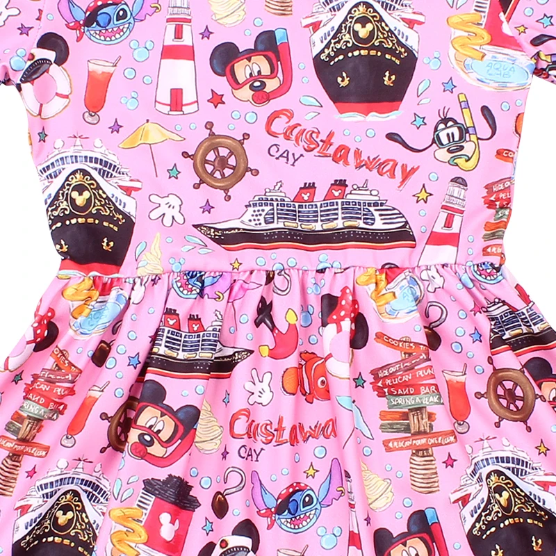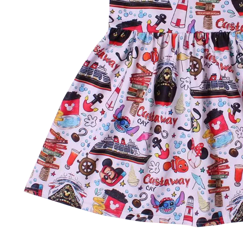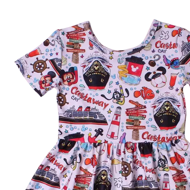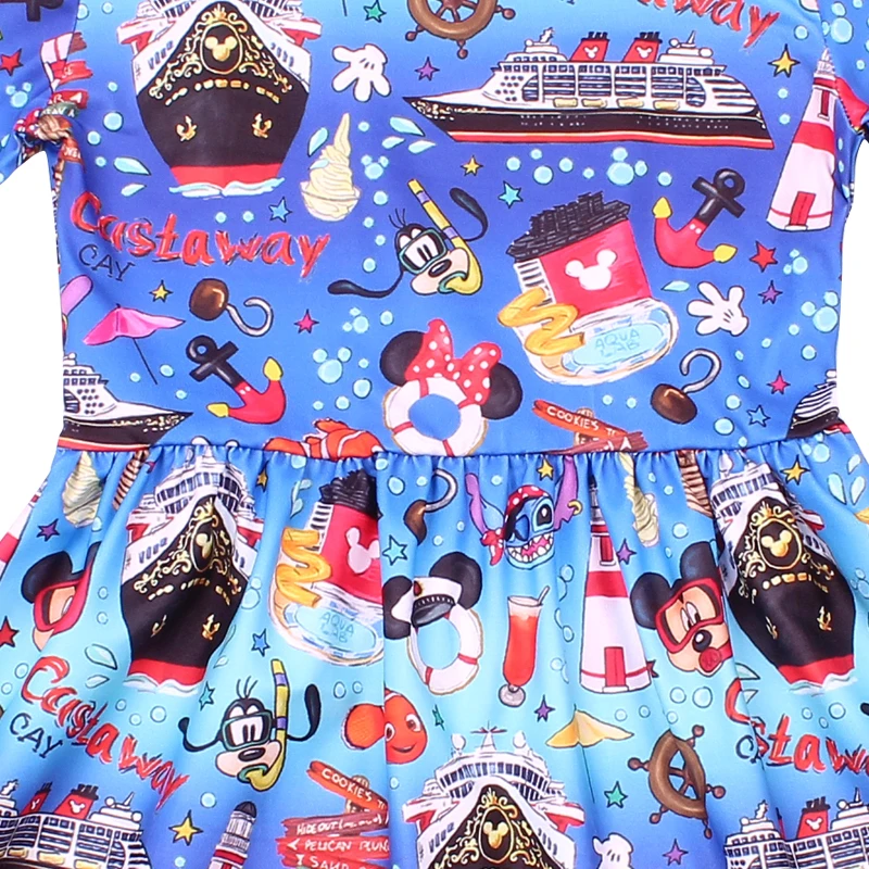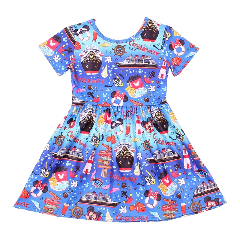 Disney Castaway CAY Dress Sister Brothers Cartoon Disney Cruise Tshirt Toddlers Summer Milk Silk Casual Dresses Boy Tshirt