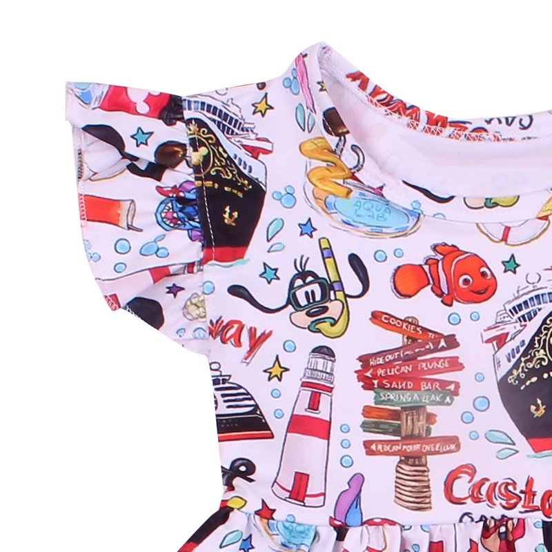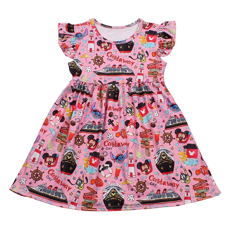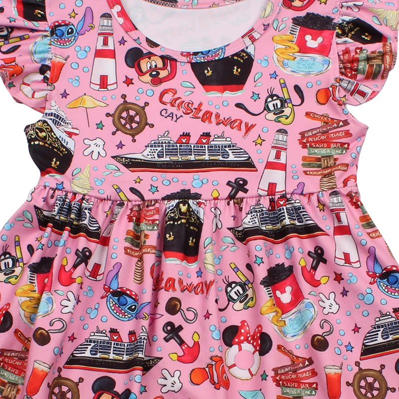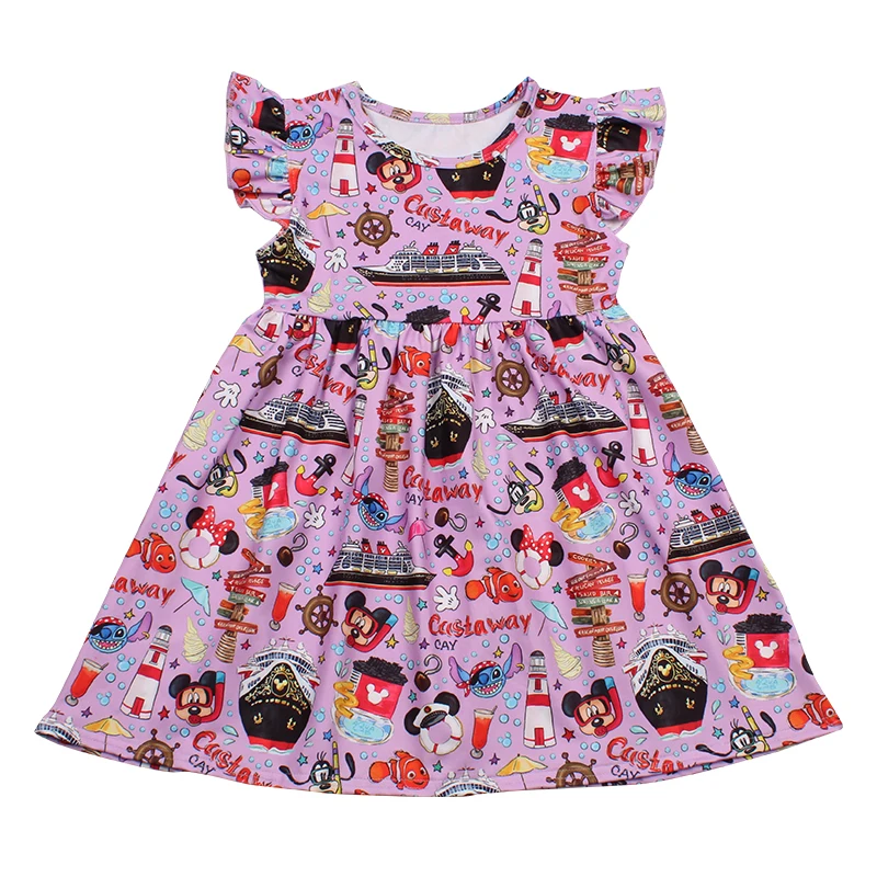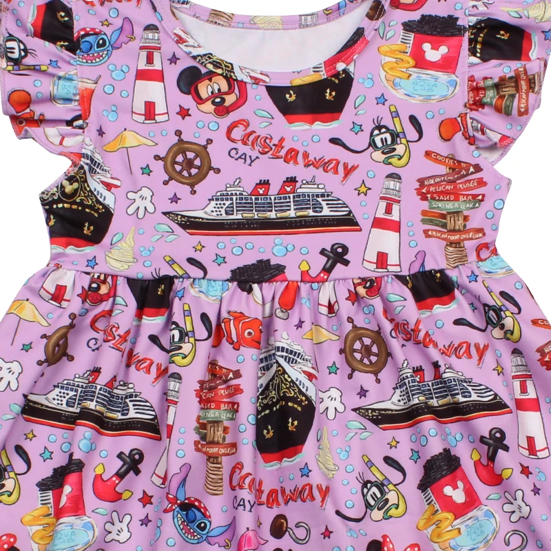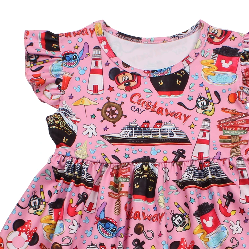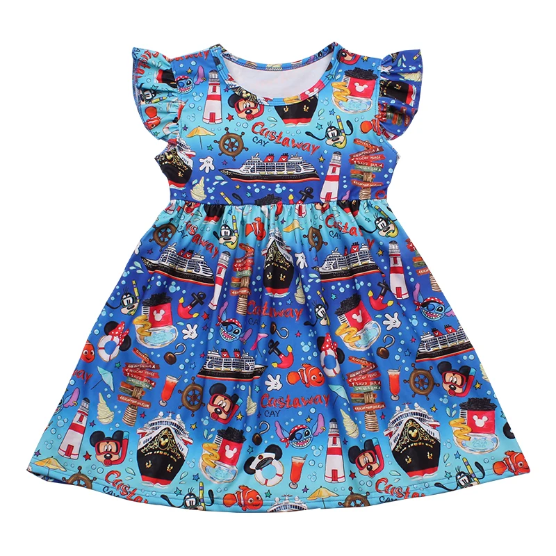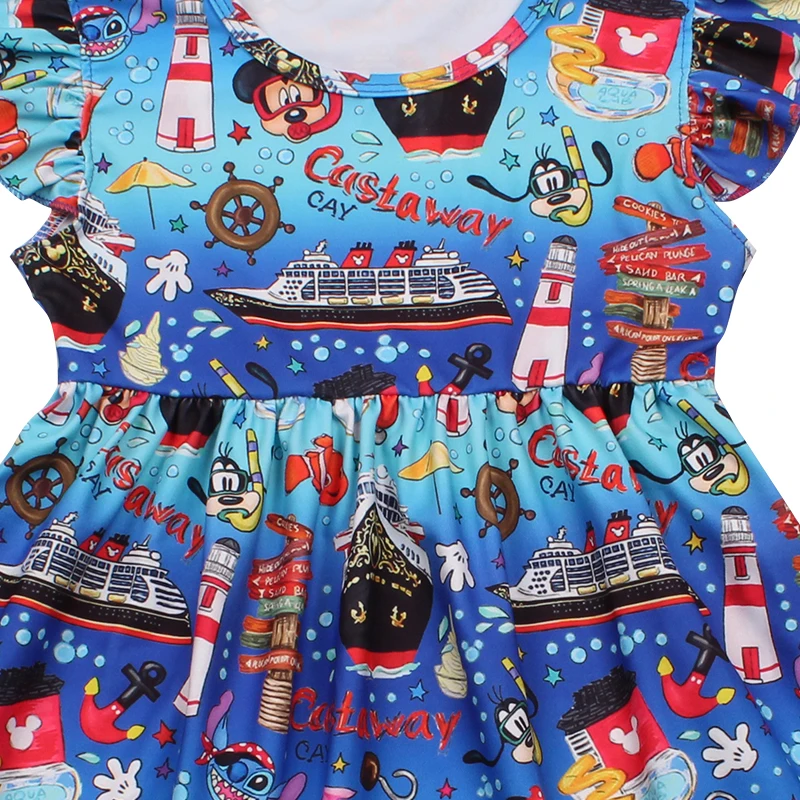 Disney Castaway CAY Dress Sister Brothers Cartoon Disney Cruise Tshirt Toddlers Summer Milk Silk Casual Dresses Boy Tshirt