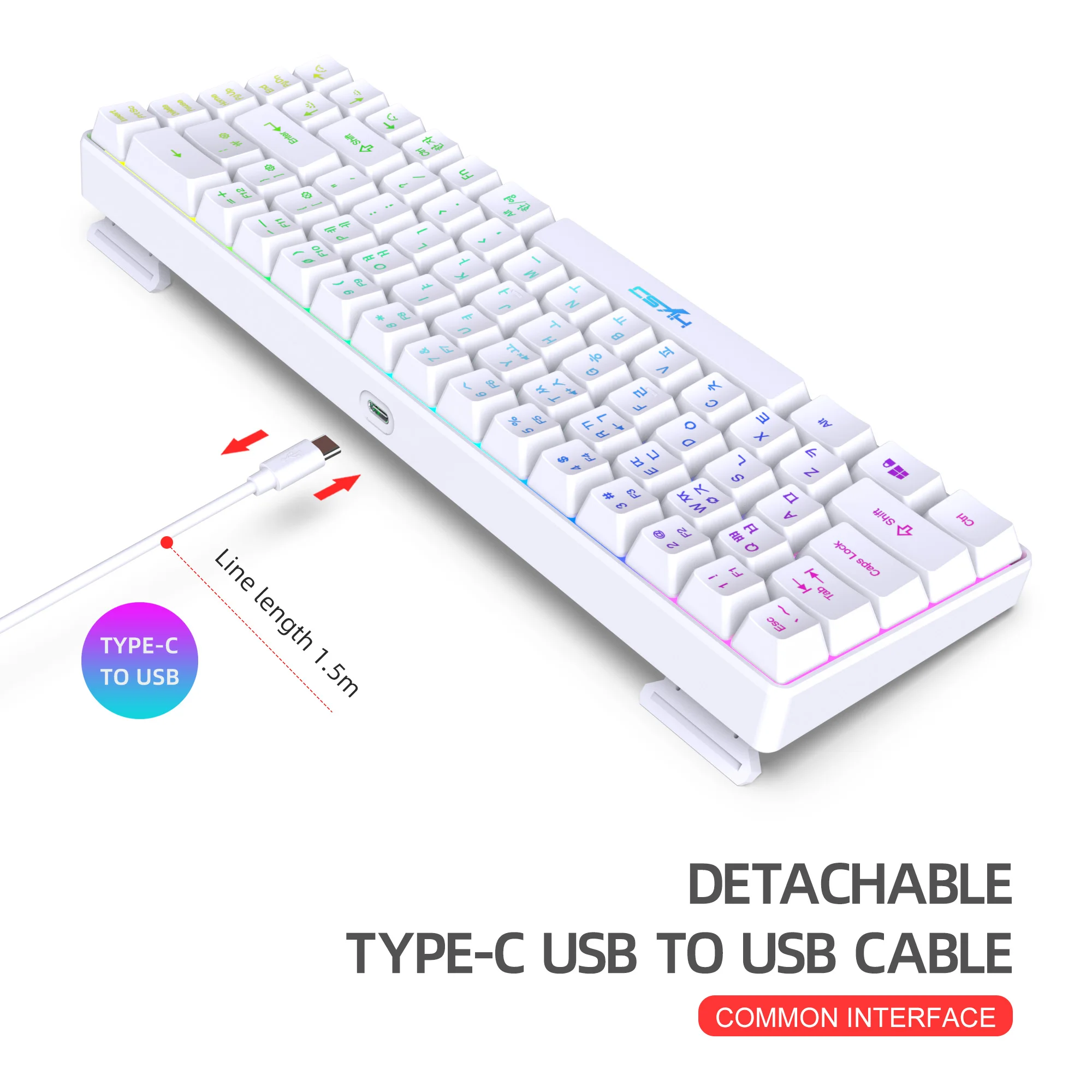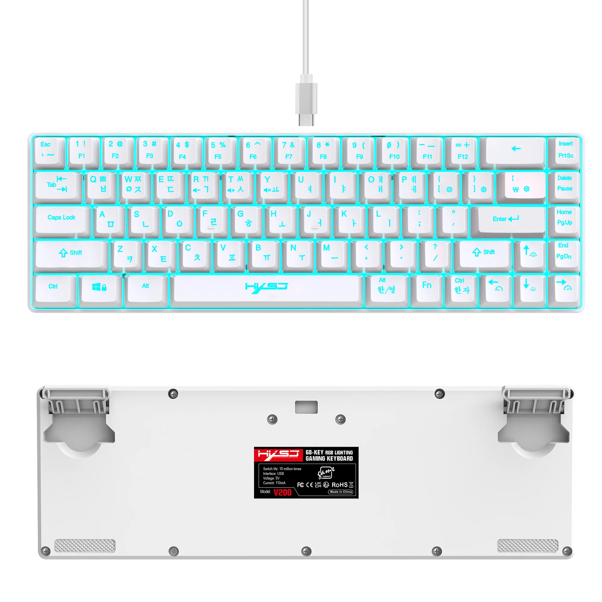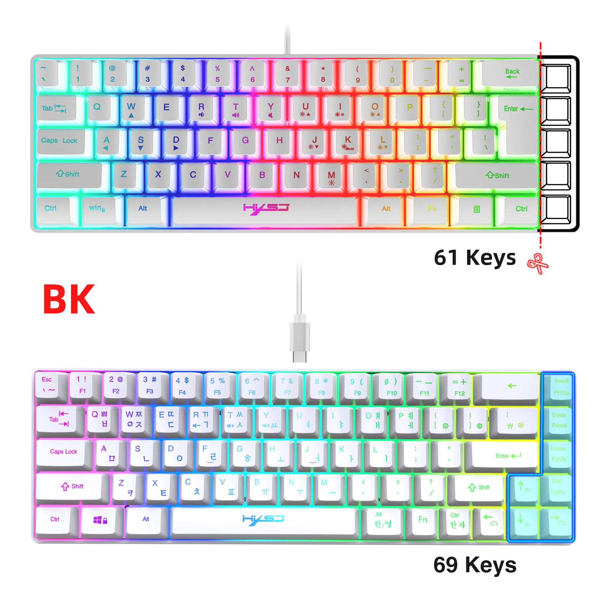 68 Keys Gaming Keyboard USB Wired Portable 20 RGB Backlight Korean Spanish English Keyboard for Windows Laptops Computer