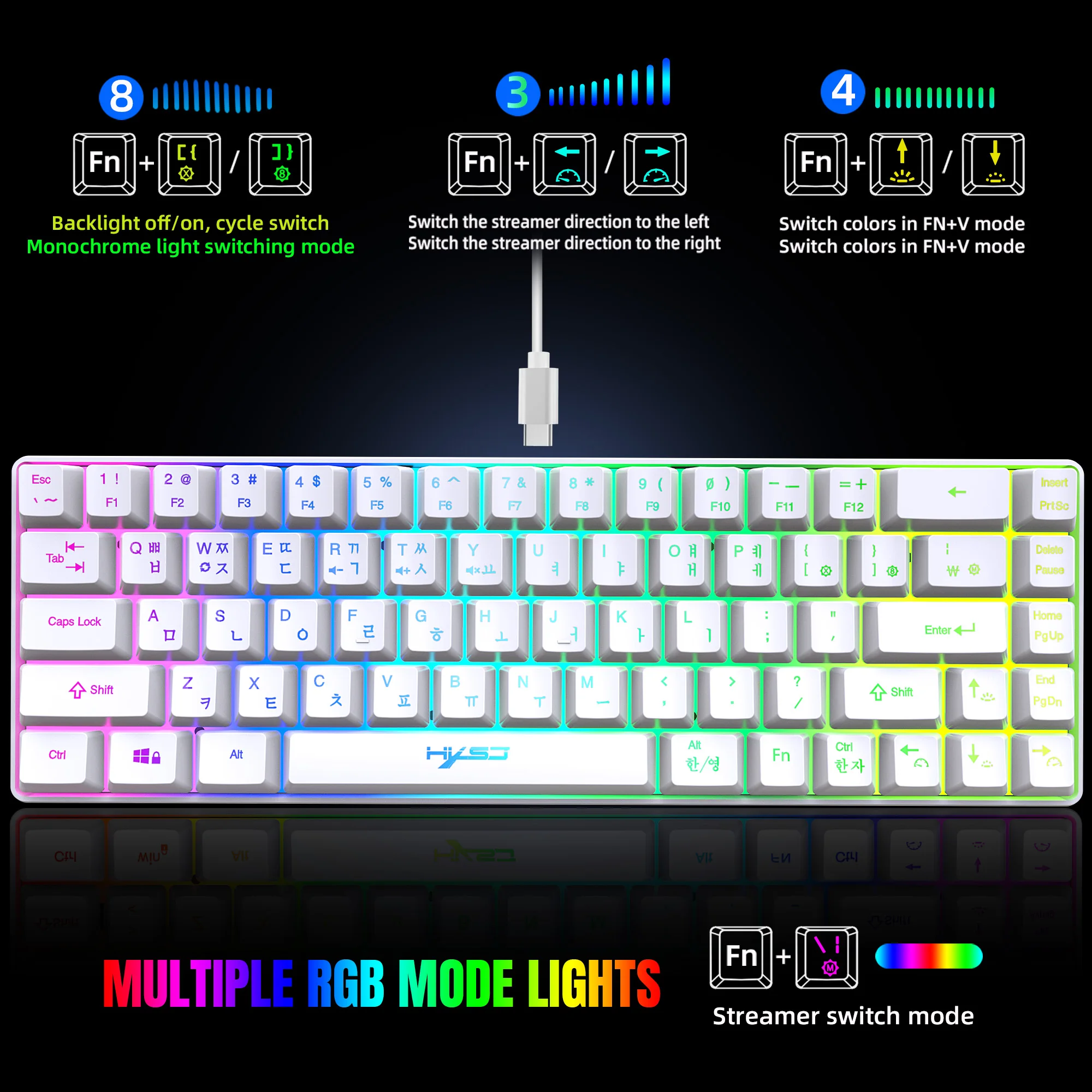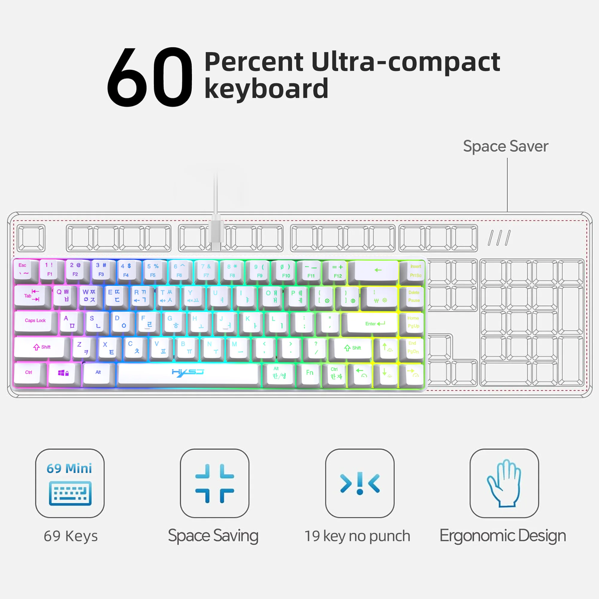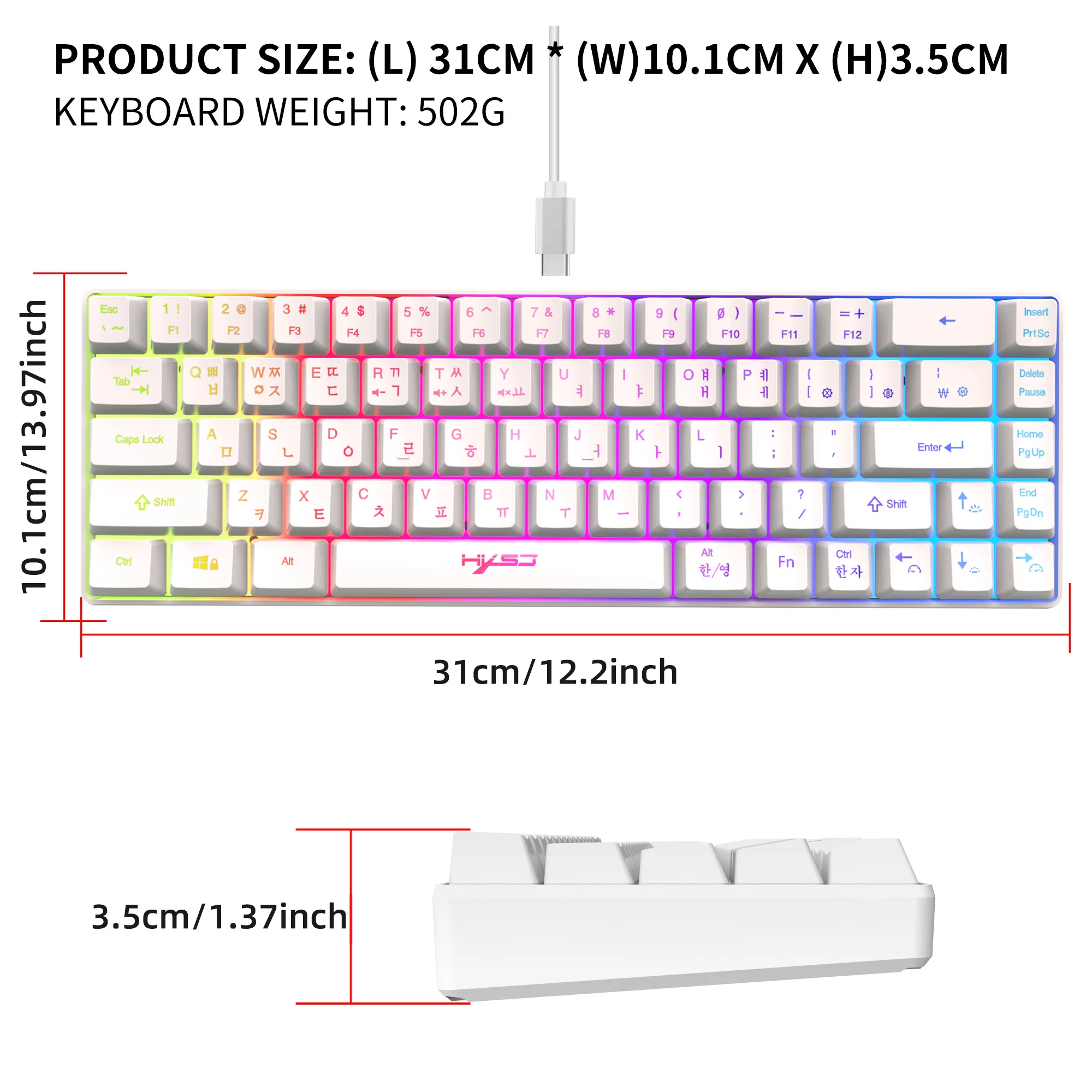 68 Keys Gaming Keyboard USB Wired Portable 20 RGB Backlight Korean Spanish English Keyboard for Windows Laptops Computer