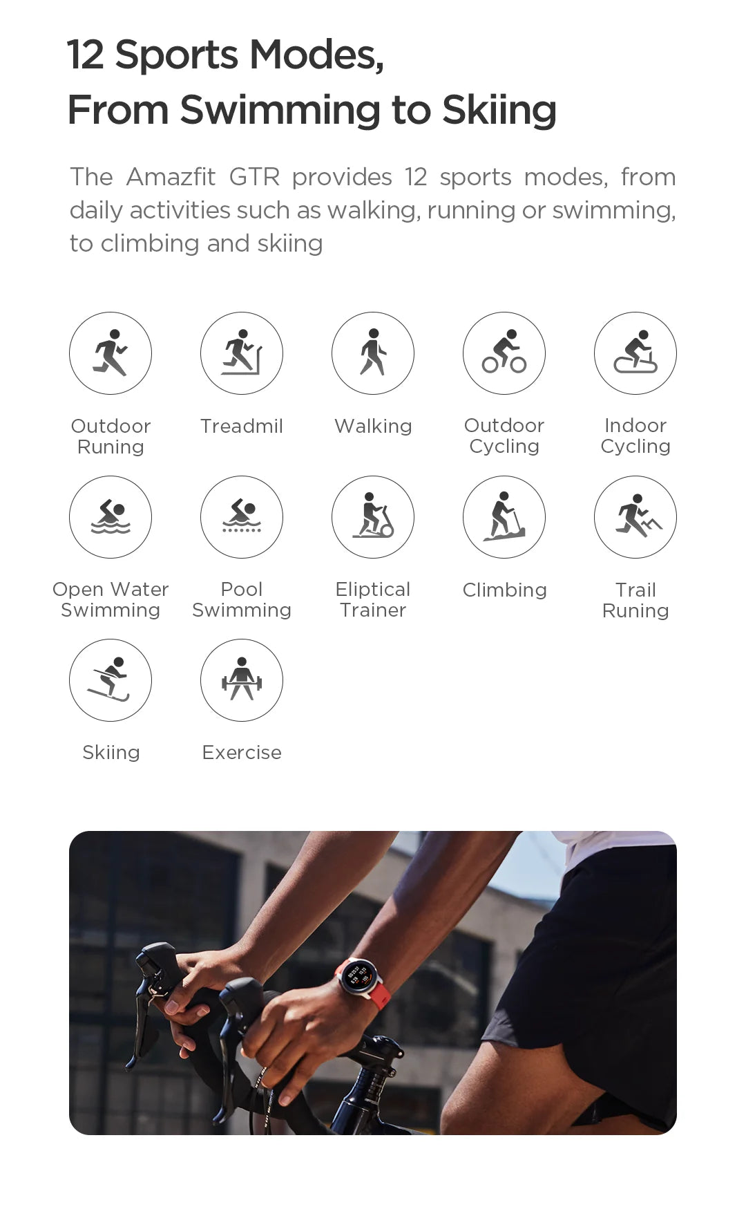 Amazfit Smartwatch GTR 47 5ATM Waterproof Smart Watch Music Control For Android IOS Phone 95 New Used Item No Box