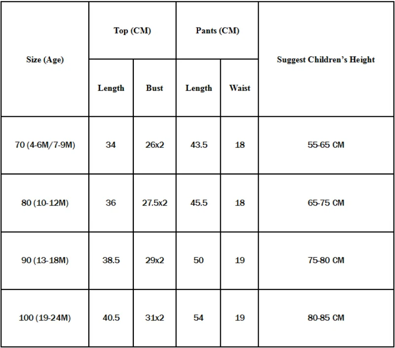 The recommended children’s height is just for your reference, not exactly according to different babies and kids. Size maybe 2cm/1 inch inaccuracy due to hand measure. Please make sure that you have read the measurement before you choose a size. If you are not sure about the size, please feel free to contact me.