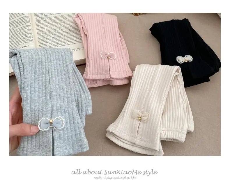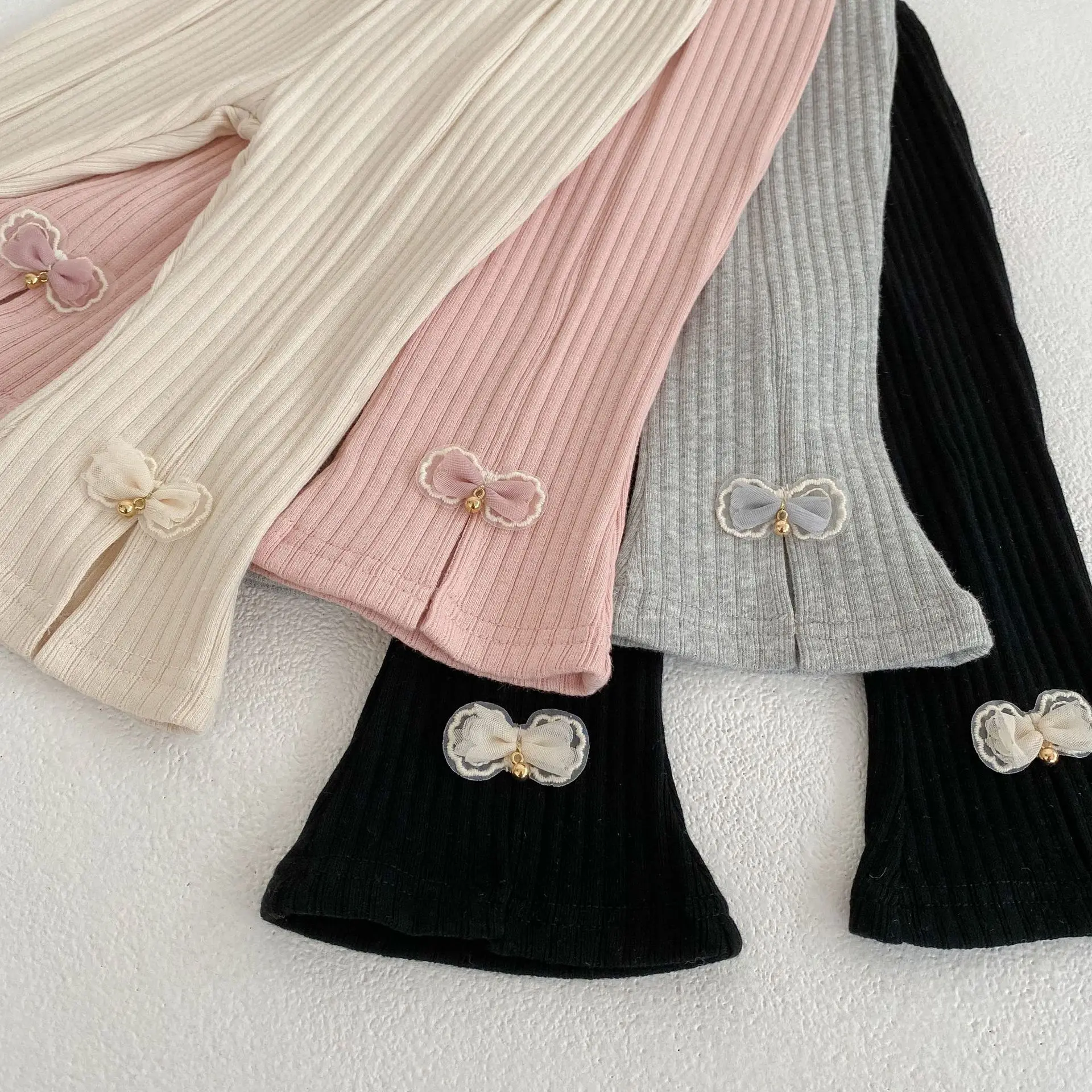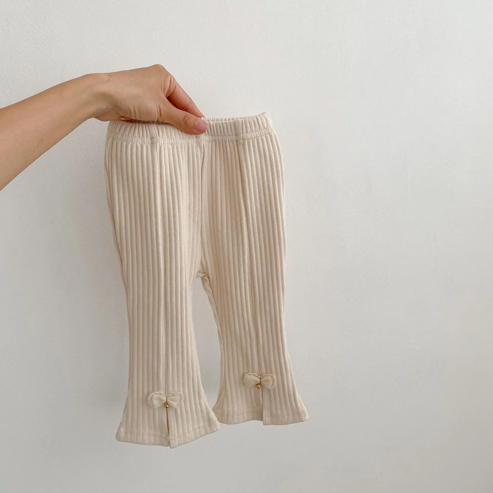 Autumn New Baby Girls Ribbed High Waisted Trousers Cute Infant Bow Flared Pants Toddler Tights Casual Pants Children Leggings
