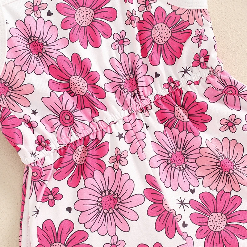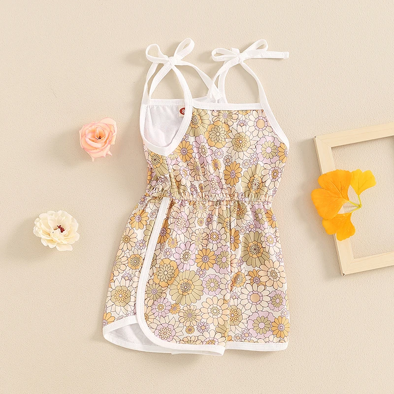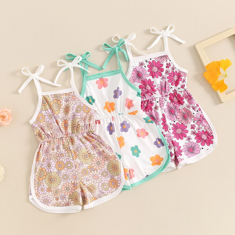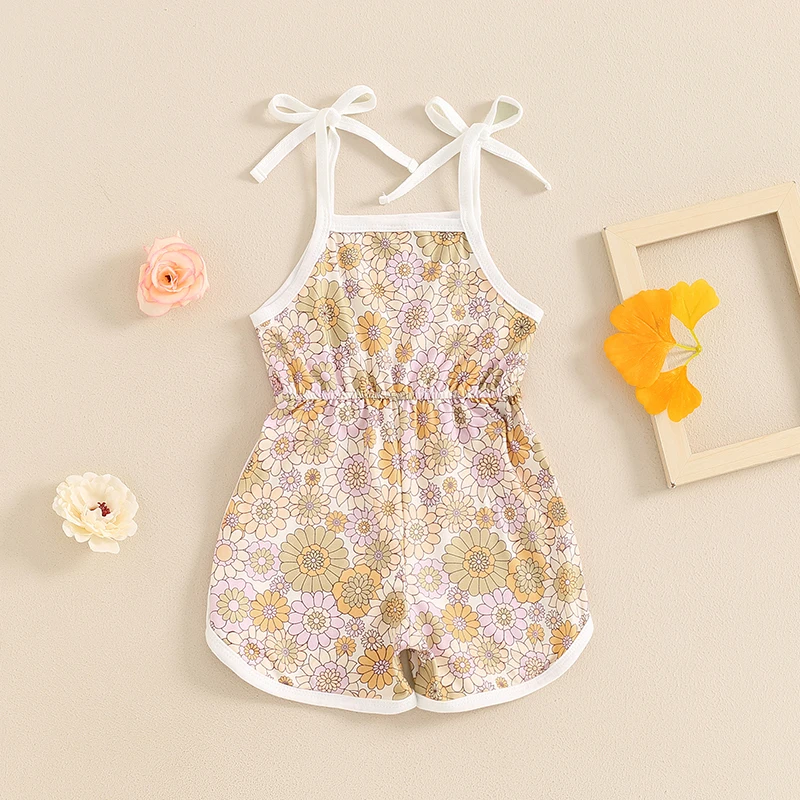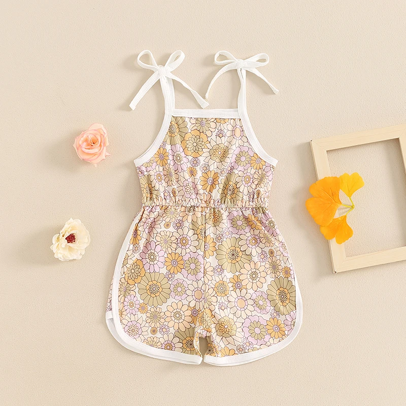 Baby Girl Summer Jumpsuit Sleeveless Tie Strap Elastic Waist Floral Print Romper Toddler Playsuit