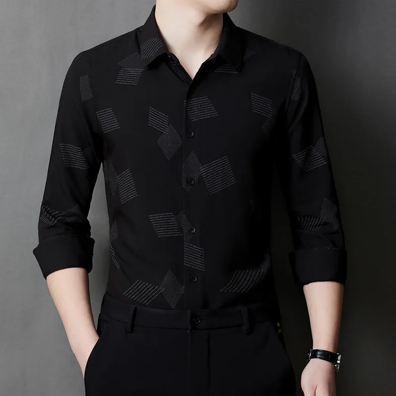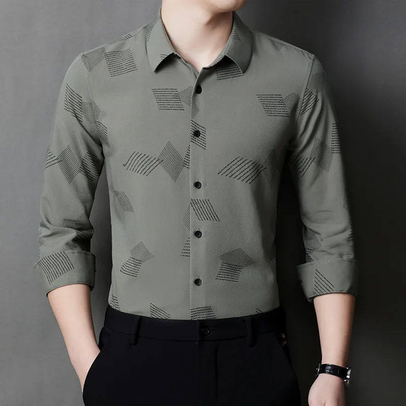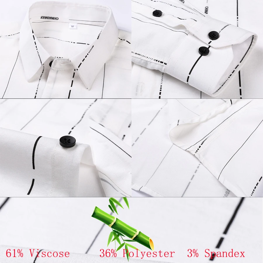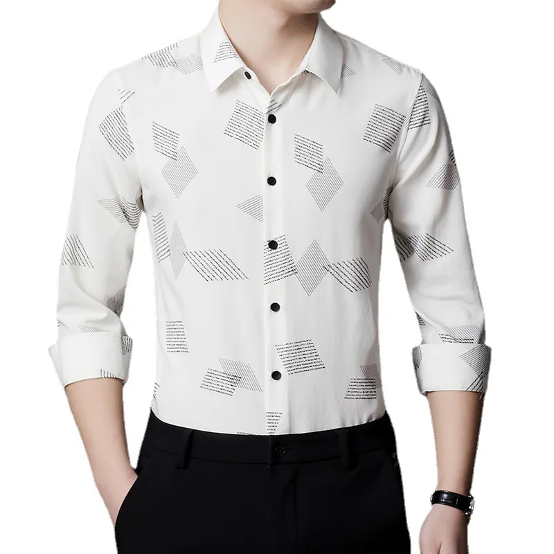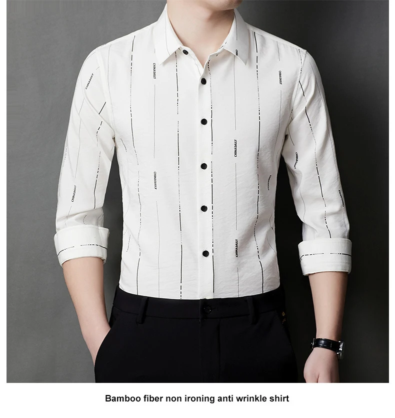 Bamboo Fiber Stretch Shirt Men's Office Business Elegant Non-iron Fashion Printing Long-sleeved Top Casual Simple Shirt for Men
